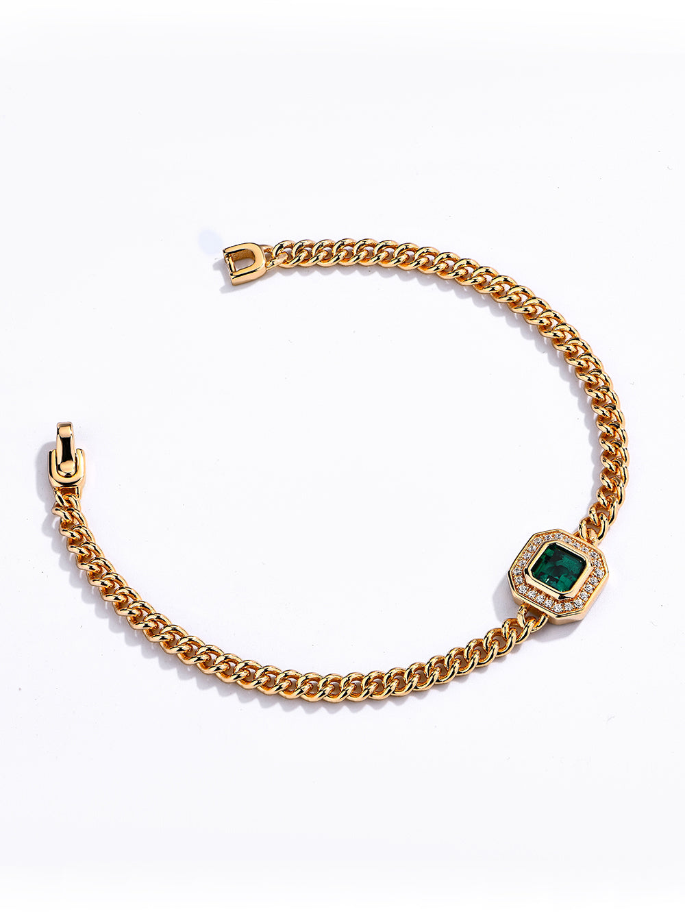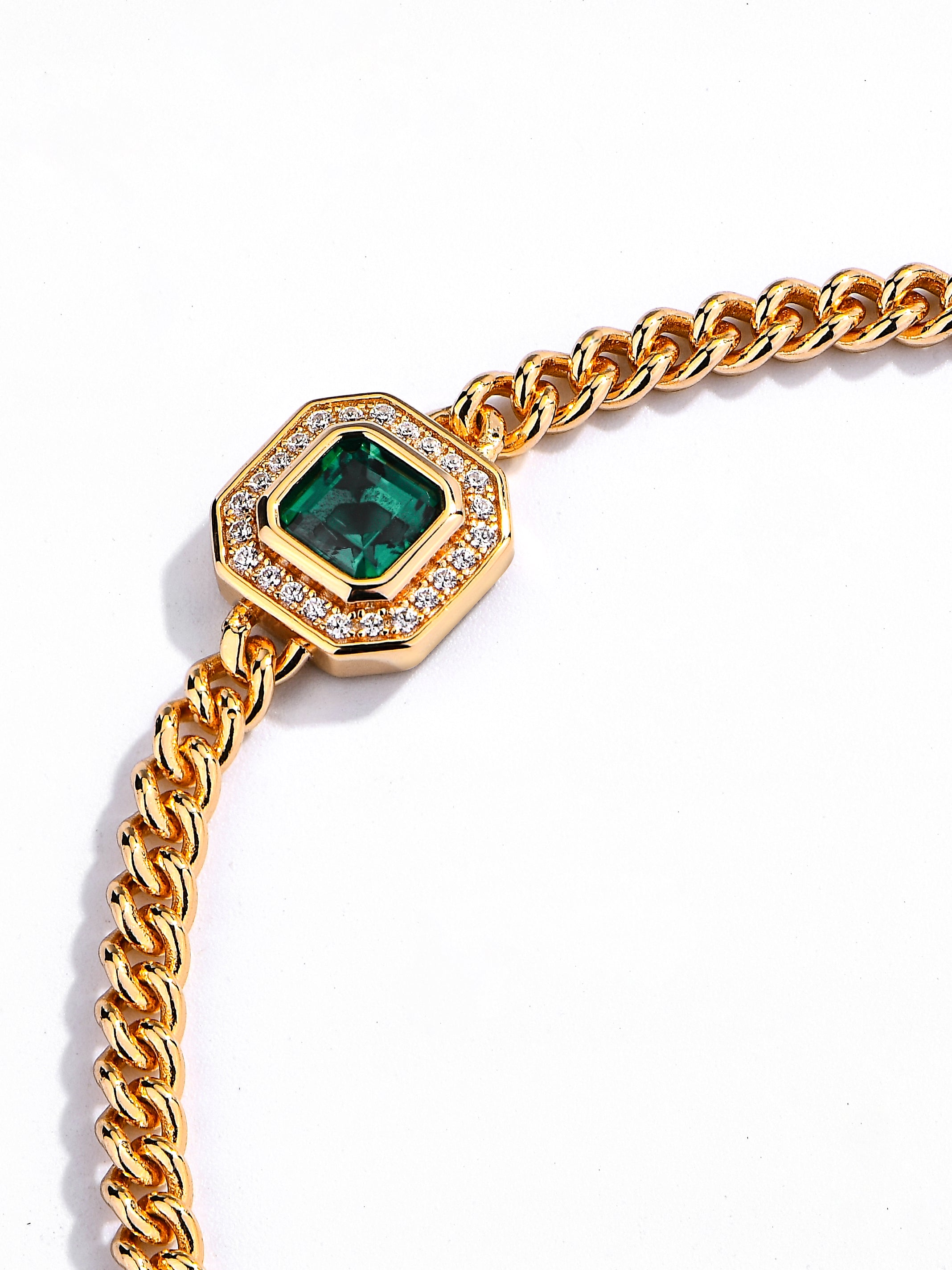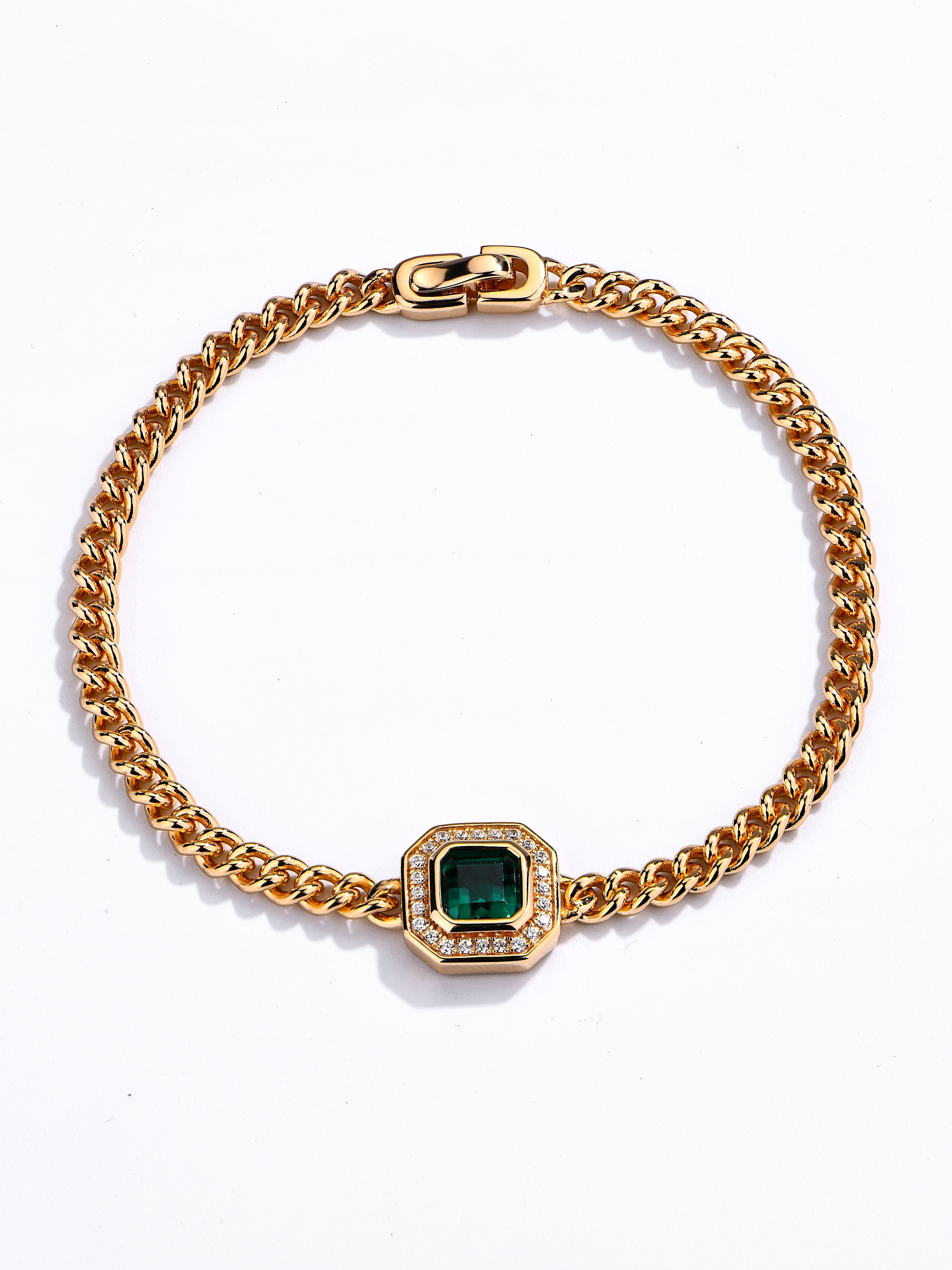 Embrace adventure and add a touch of boldness to your style with atta classic emerald charm bracelet. Sparkling emerald stones and a timeless design make this bracelet perfect for any risk-taking fashion lover. Elevate your look and stand out from the crowd!