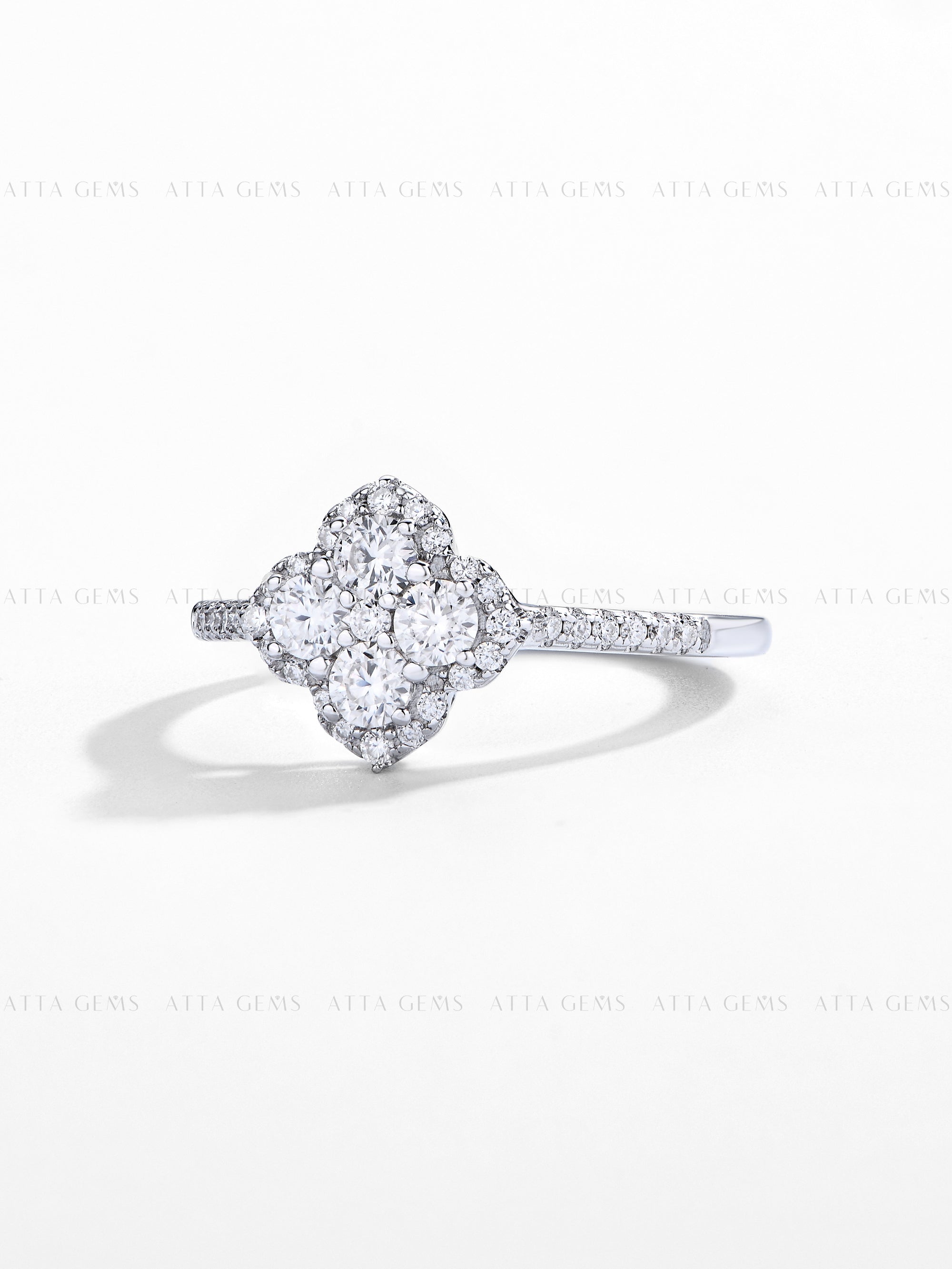 The Silver 4 Leaf Clover Colored Halo Engagement Anniversary Ring is a unique and elegant choice for any special occasion. The clover design symbolizes luck and prosperity, making it the perfect ring to celebrate love and success. The vibrant colored halo adds a touch of glamour, making it a stunning addition to any jewelry collection. #R178