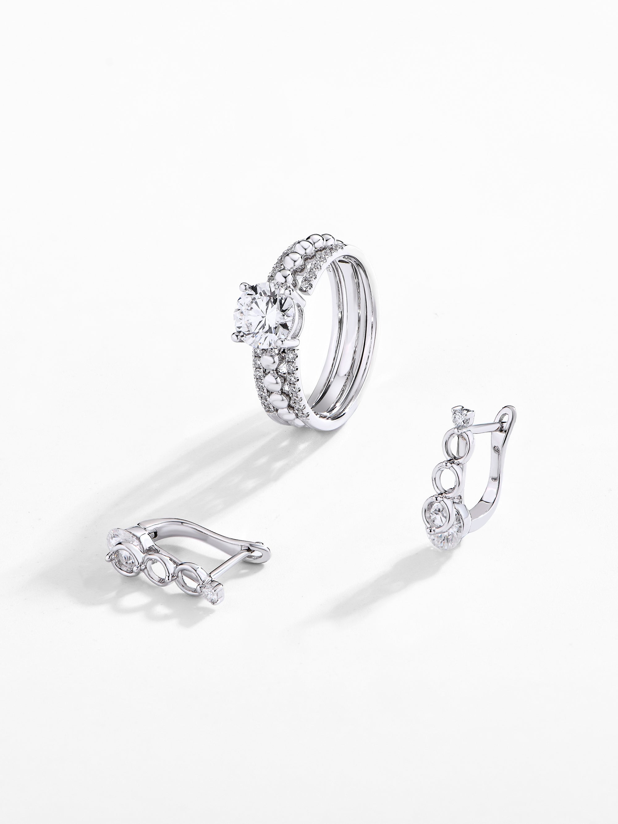 Every piece of jewelry is made with care from sterling silver, rhodiurn-plated metaland moissanite.