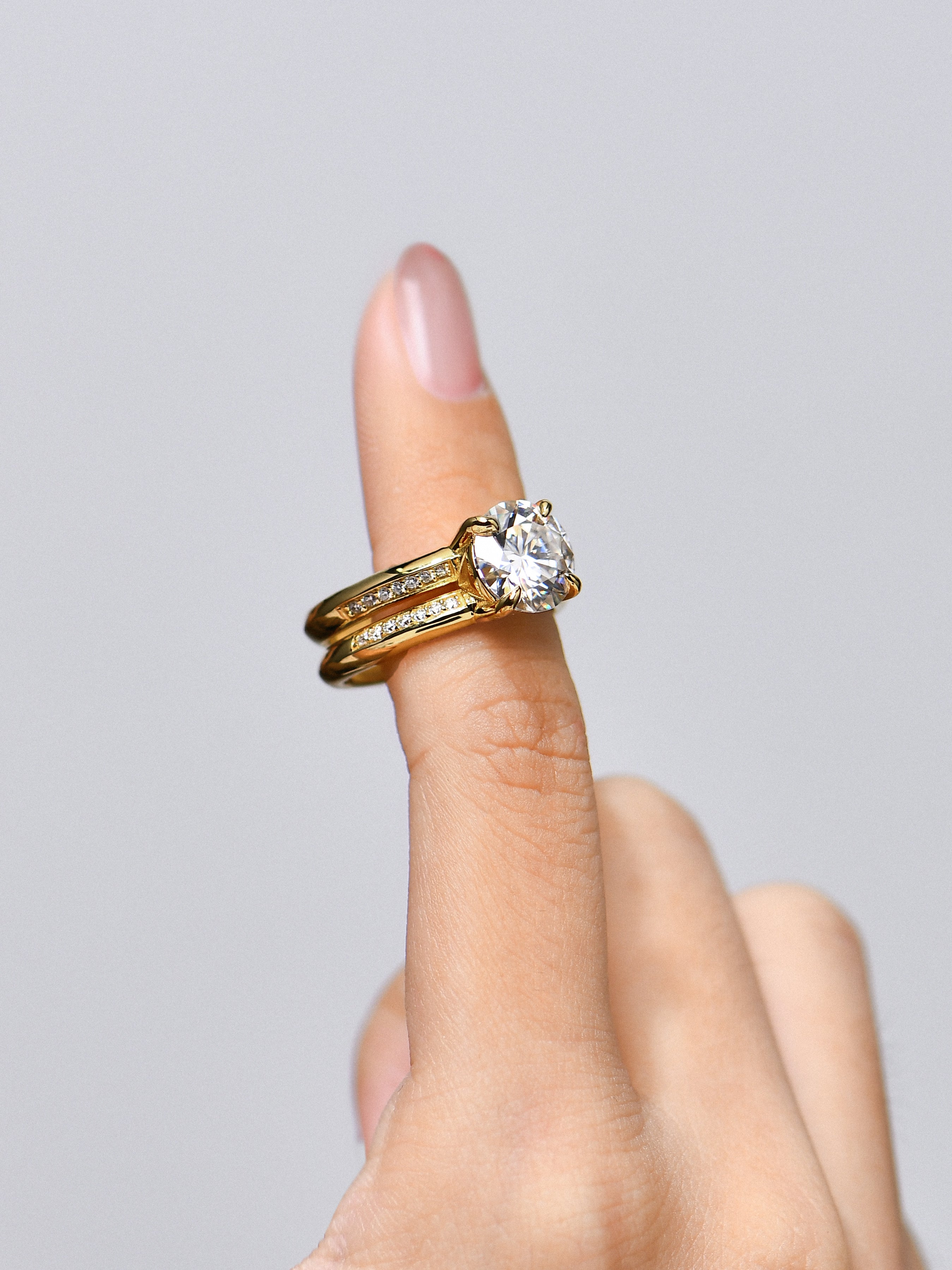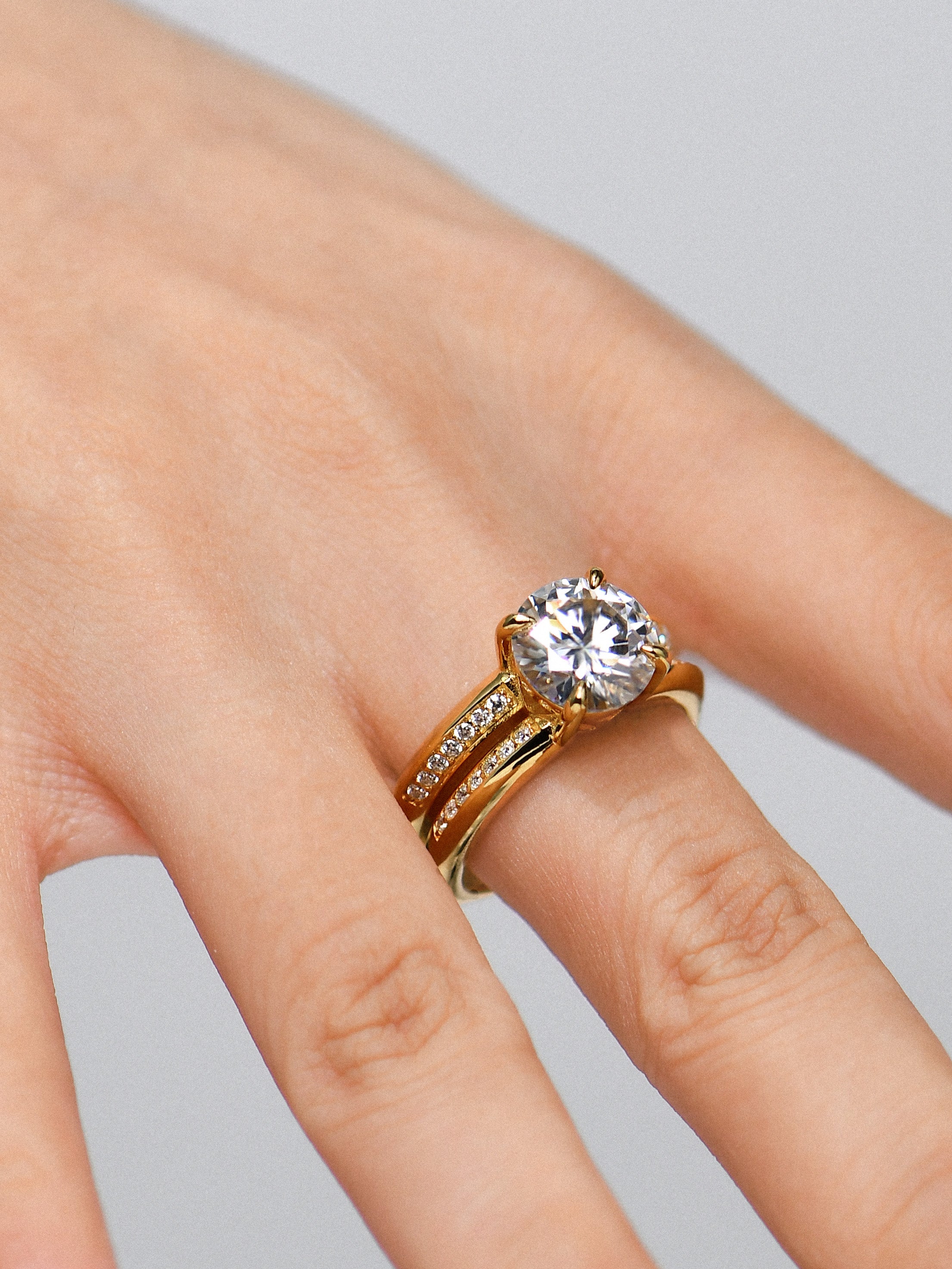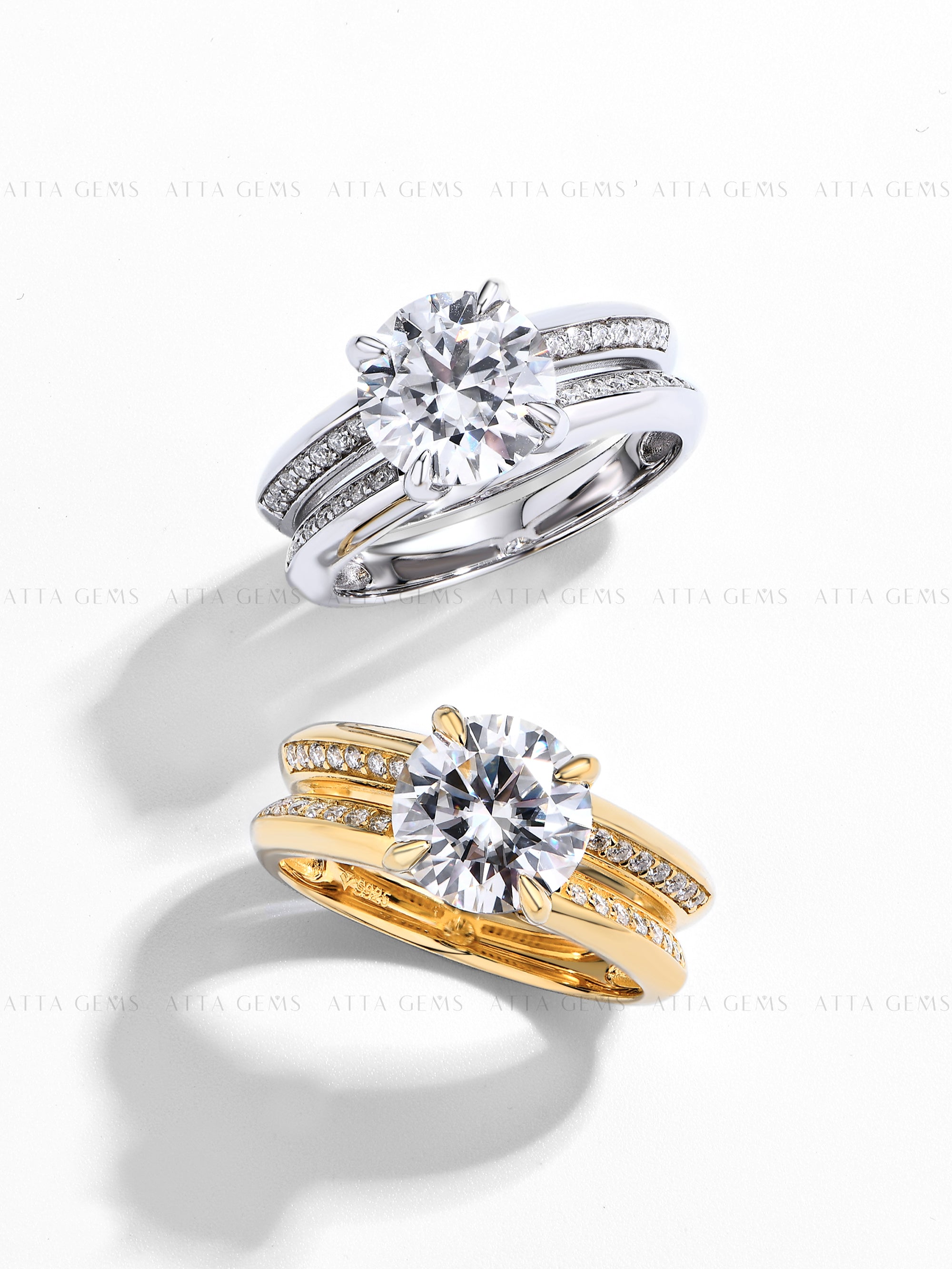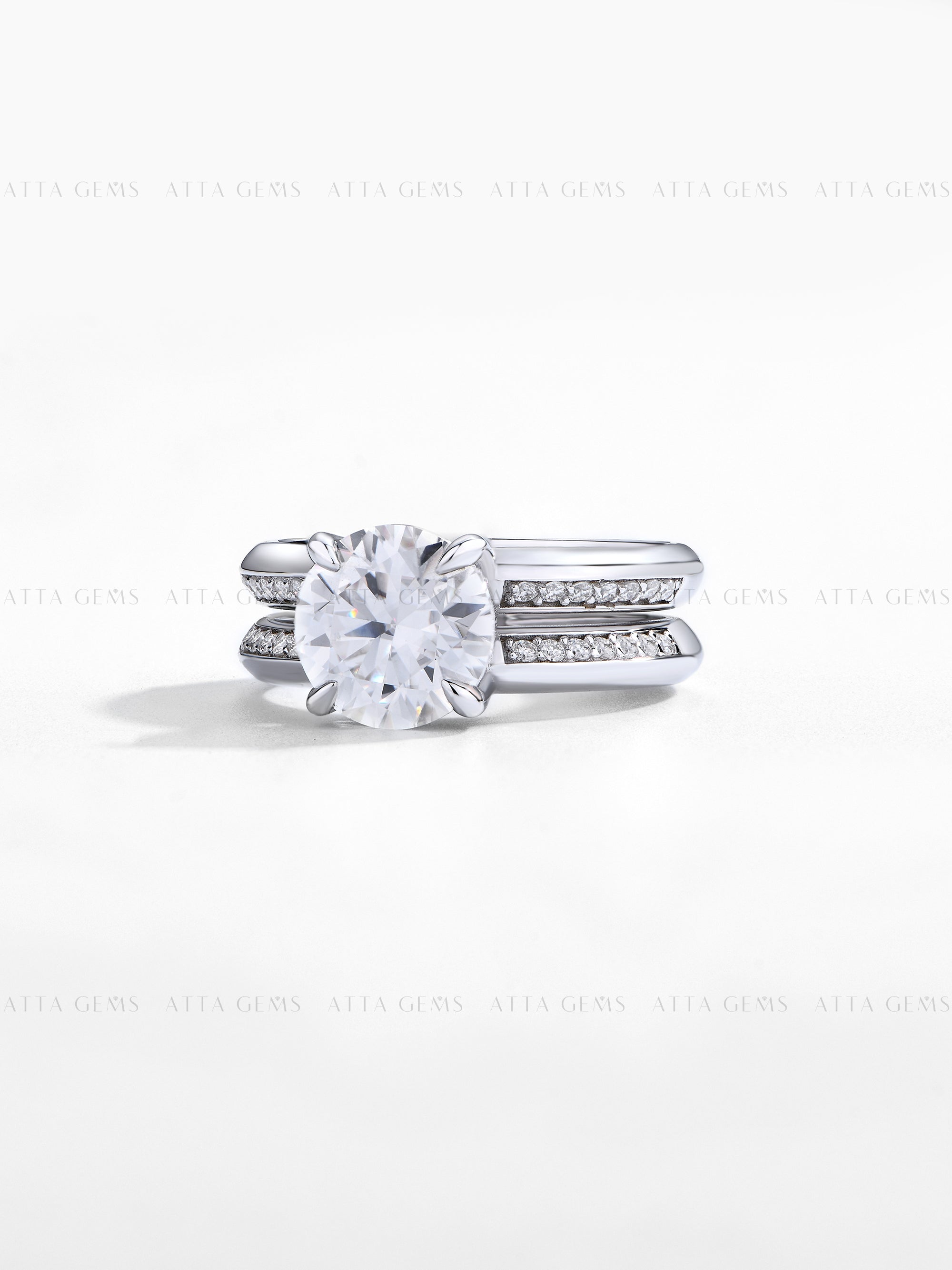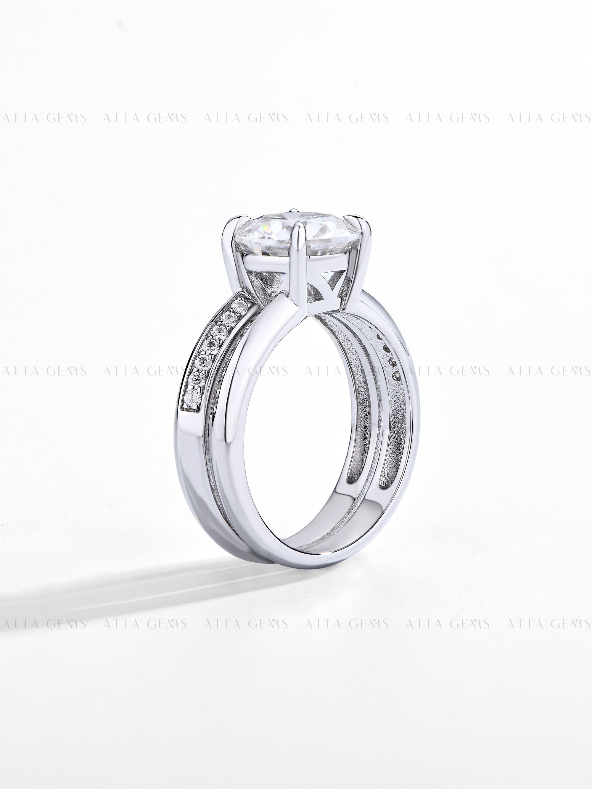 This expertly crafted 3.0 carat round center Moissanite diamond solitaire ring is an effortlessly stunning choice for any engagement or special occasion. Made with the highest quality stone, this ring offers lasting brilliance and beauty, sure to make a statement and stand the test of time. #174