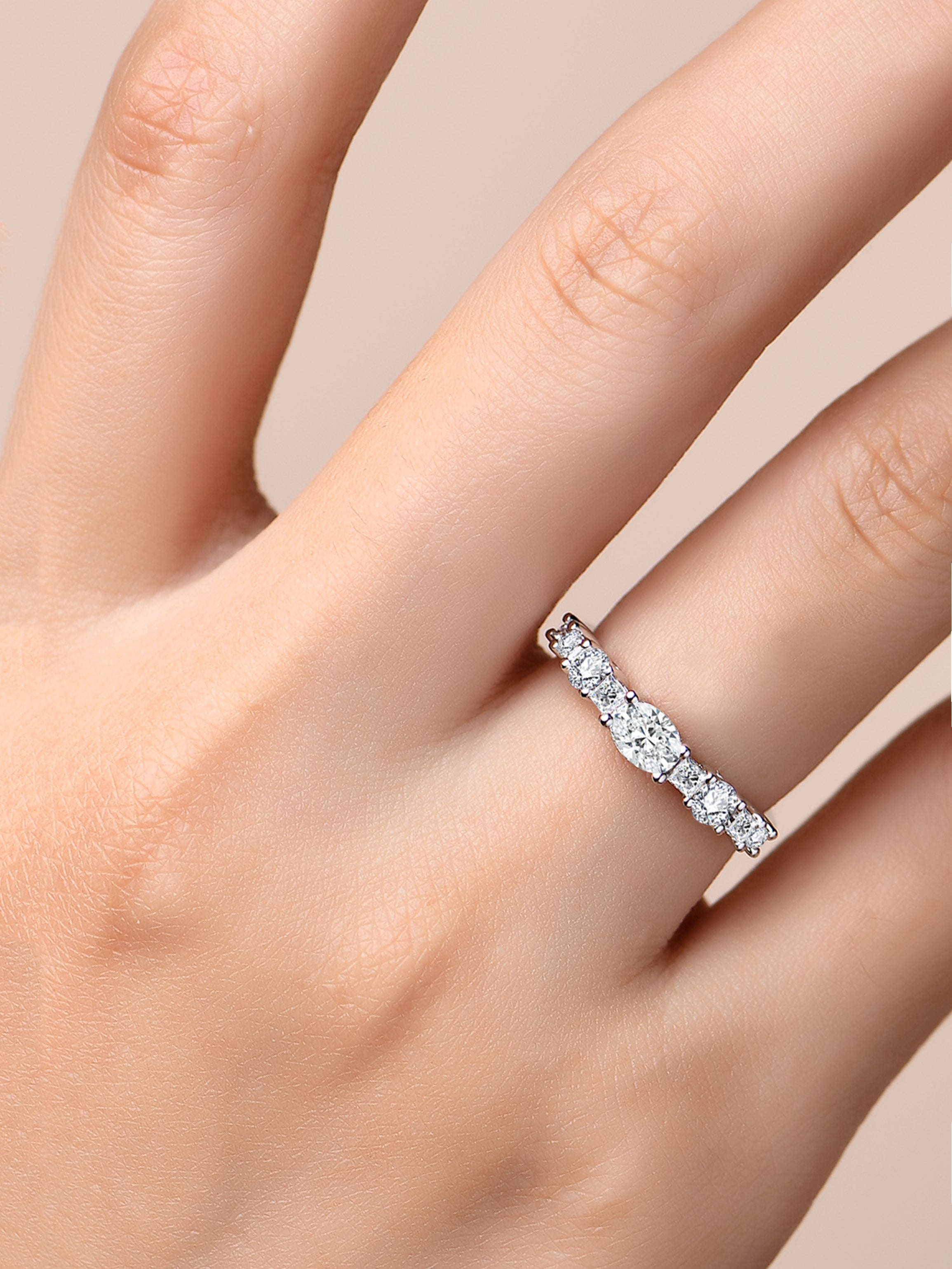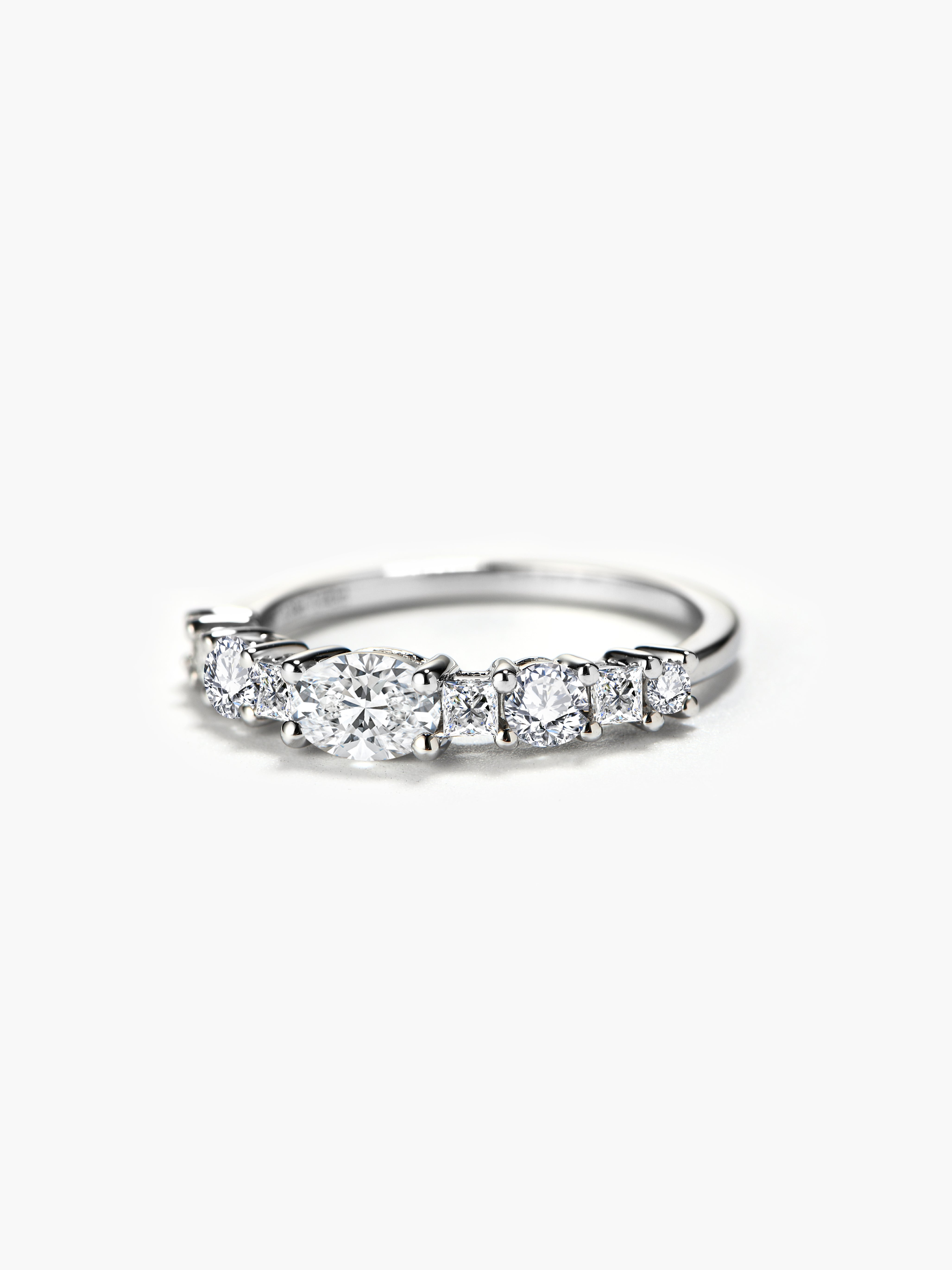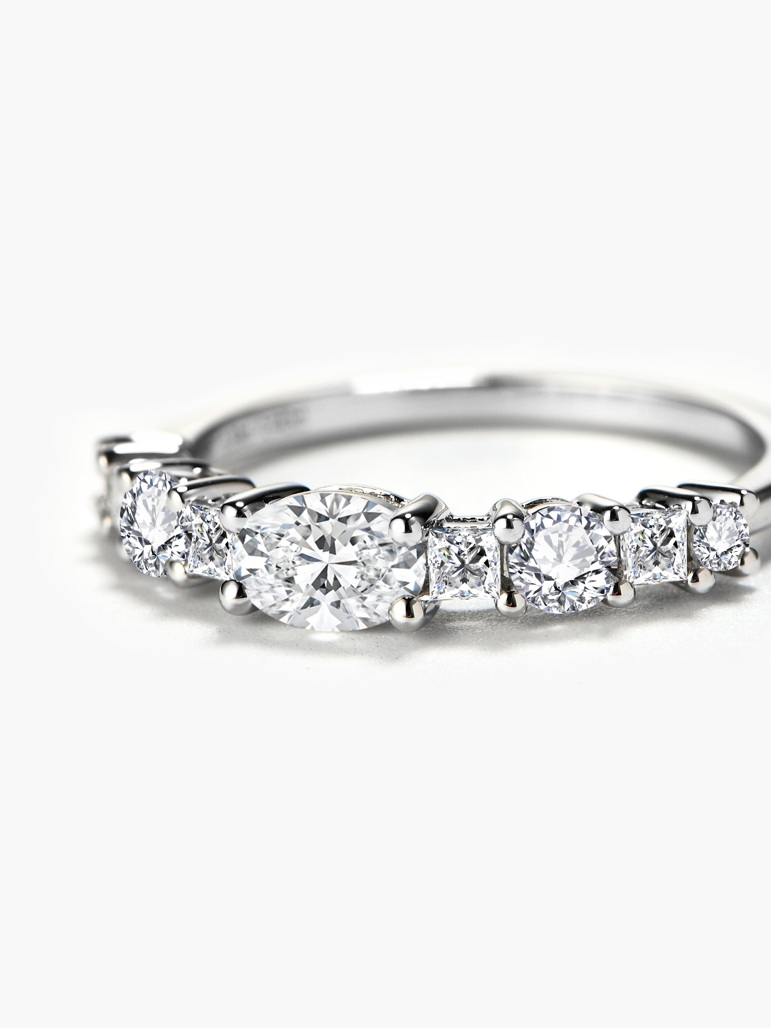 Take a daring leap into forever with atta five moissanite princess cut wedding ring. A symbol of your bold love, this engagement wedding ring features five stunning princess cut diamonds that sparkle with every step.