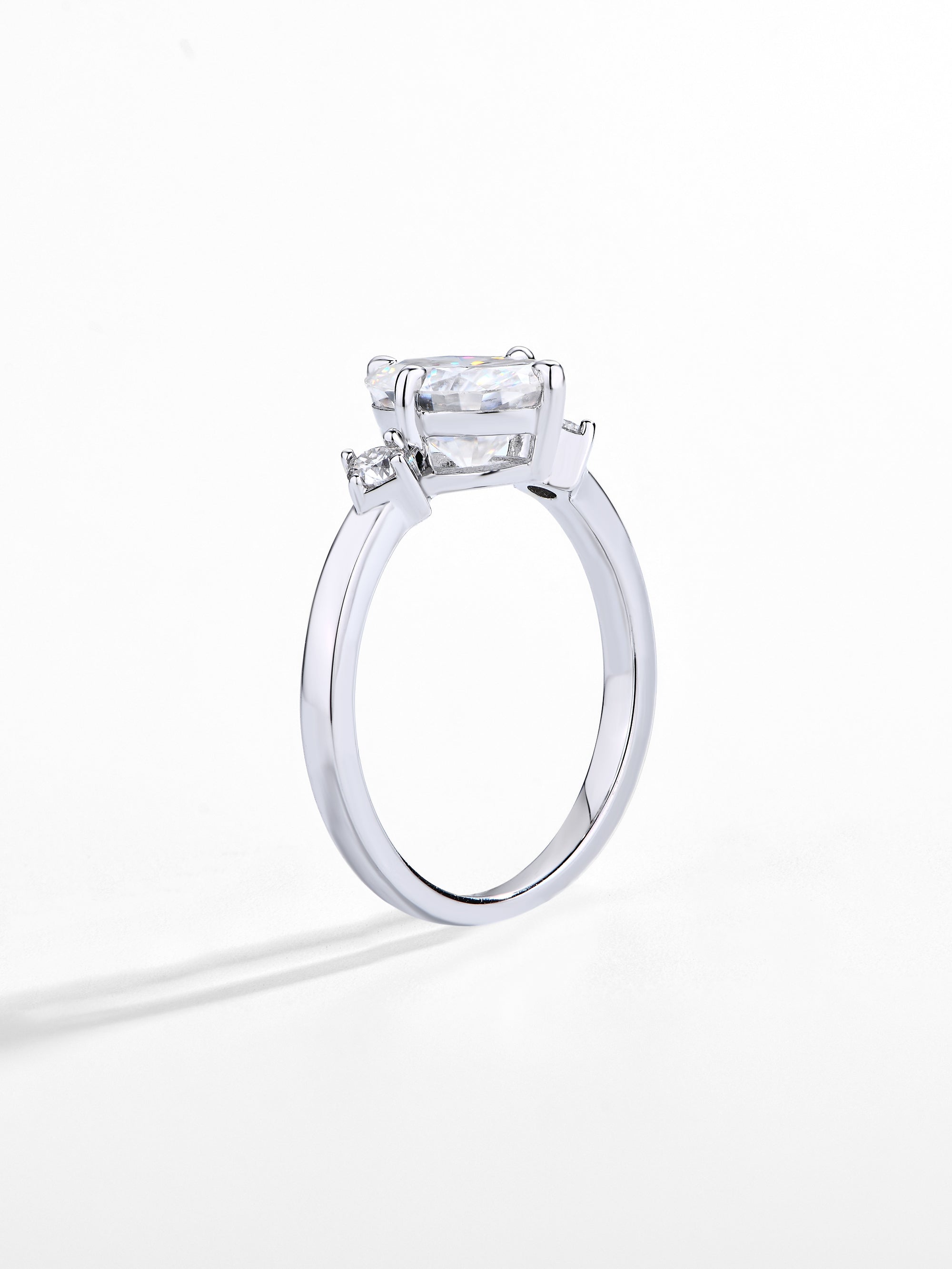 Craftsmanship & Design: Main stone 2ct 9*7mm and 2.5mm 0.06ct side stones. Each stone hand-selected and micro-pavé set by master artisans.