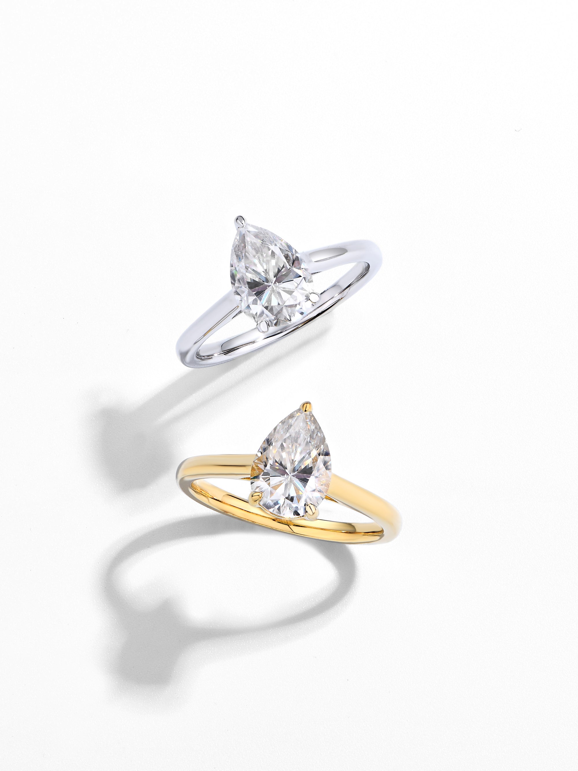 Craftsmanship & Design: Main stone 10*7mm 2ct pear cut with full moissanite. Each moissanite diamond hand-selected and micro-pavé set by master artisans.