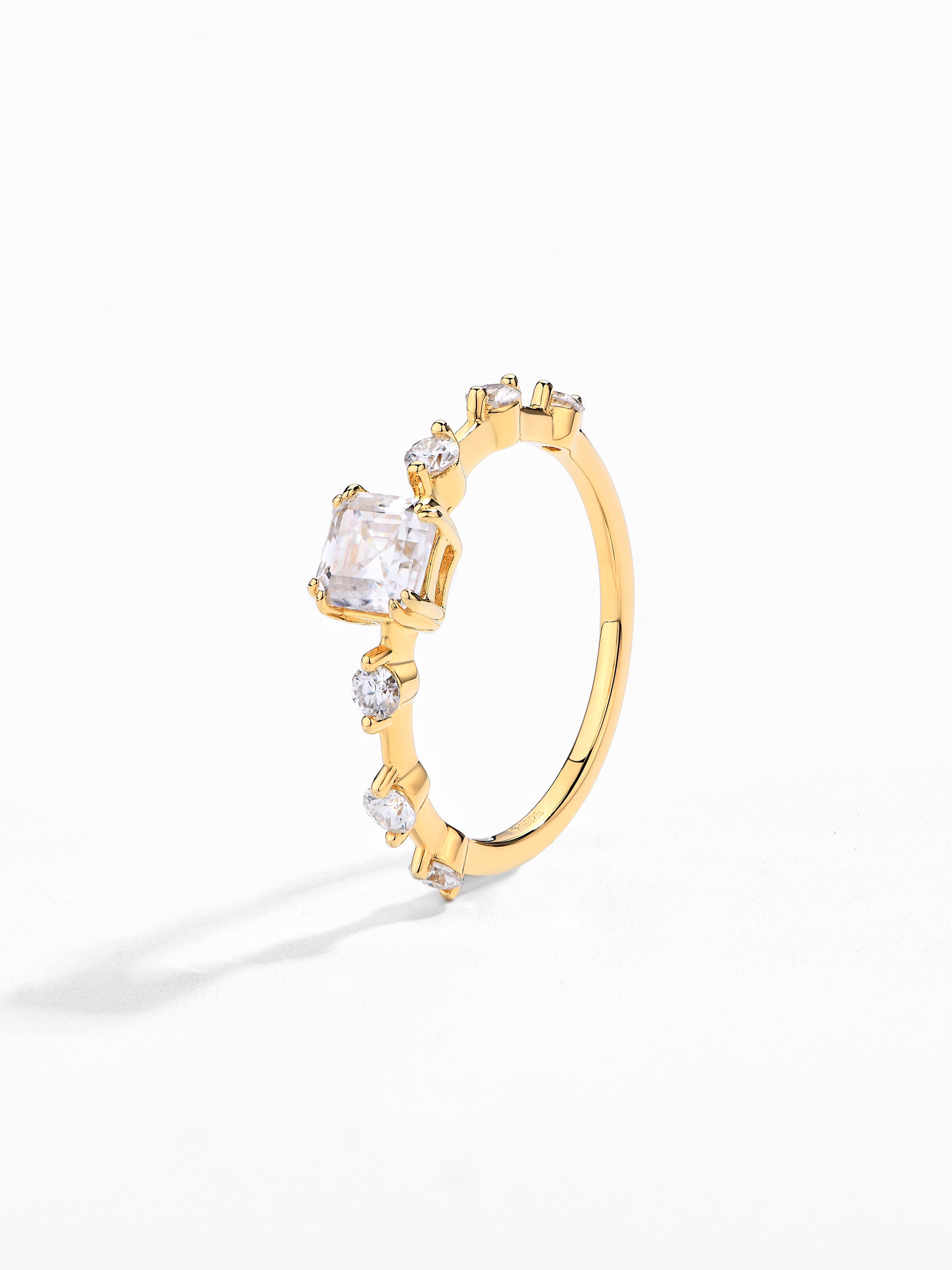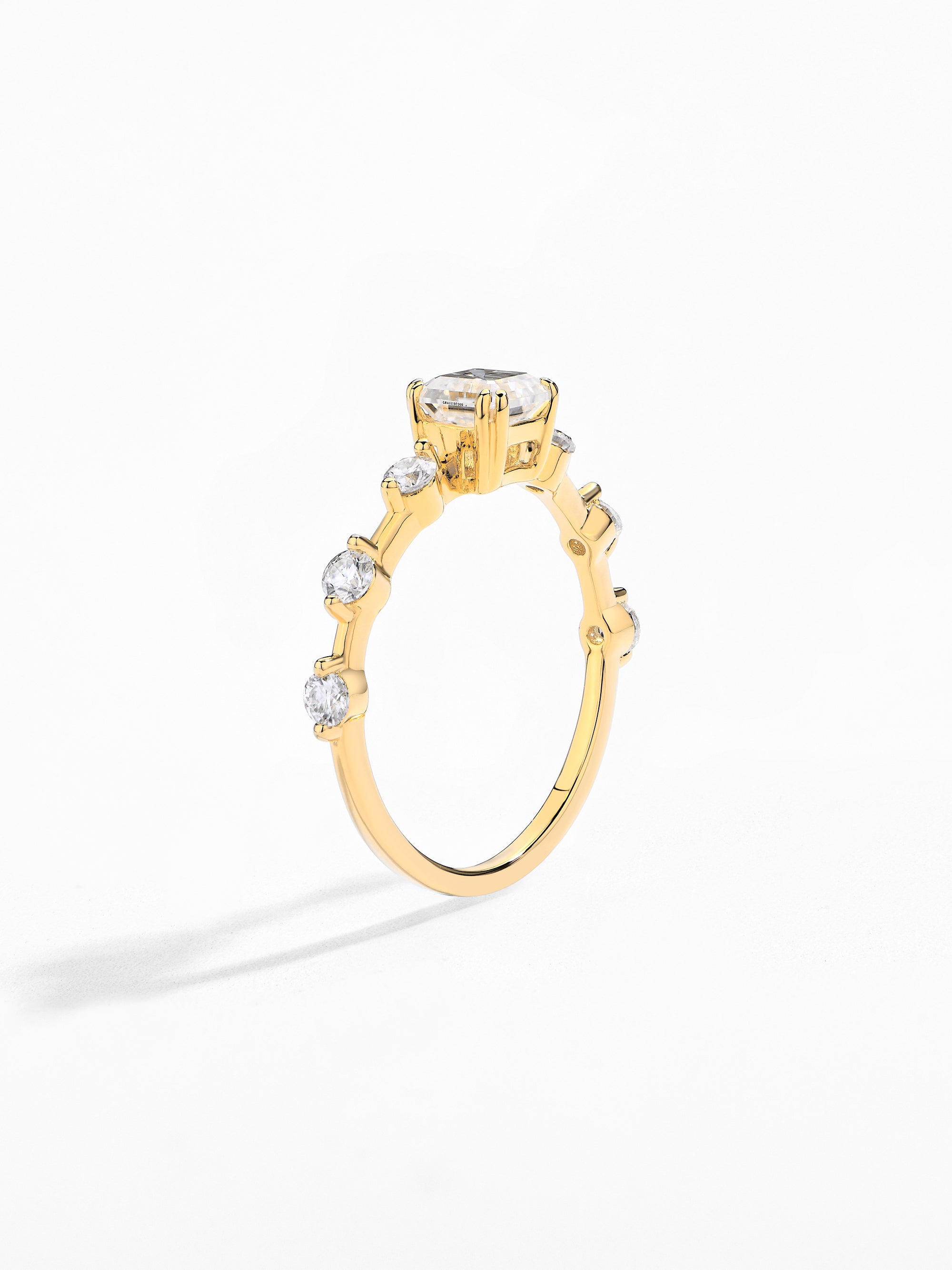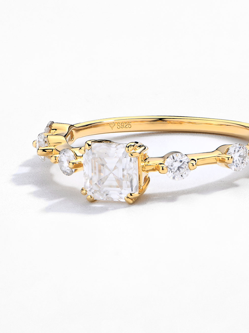 Craftsmanship & Design: Main stone emerald 5*5mm and round 2.4mm with full moissanite diamonds. Each moissanite stone hand-selected and micro-pavé set by master artisans.