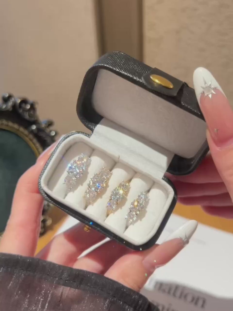 ● Setting: Classic prong-setting, the main stone is 1ct moissanite and the 0.5ct 2pcs side stone. Total 3ct.
