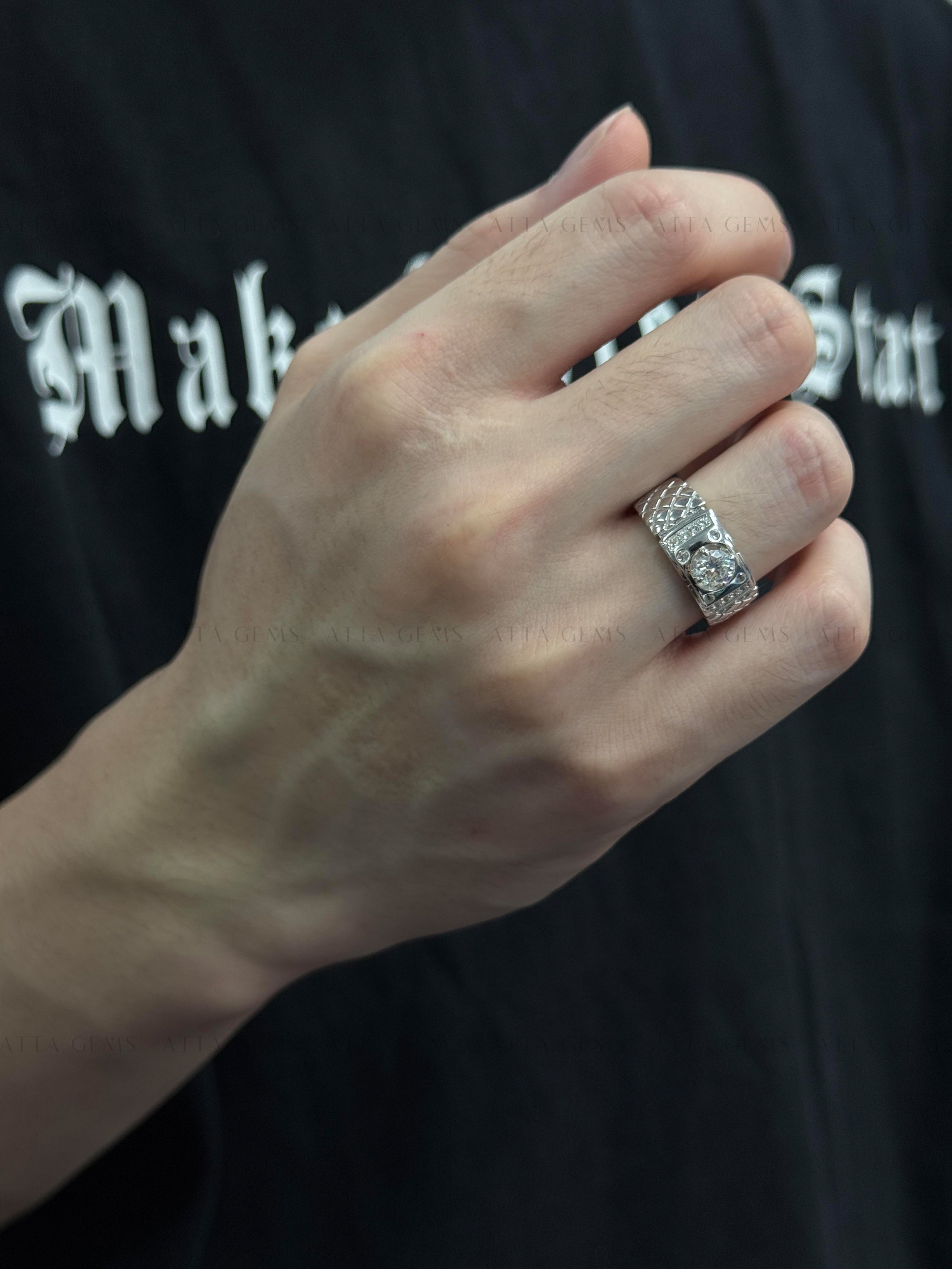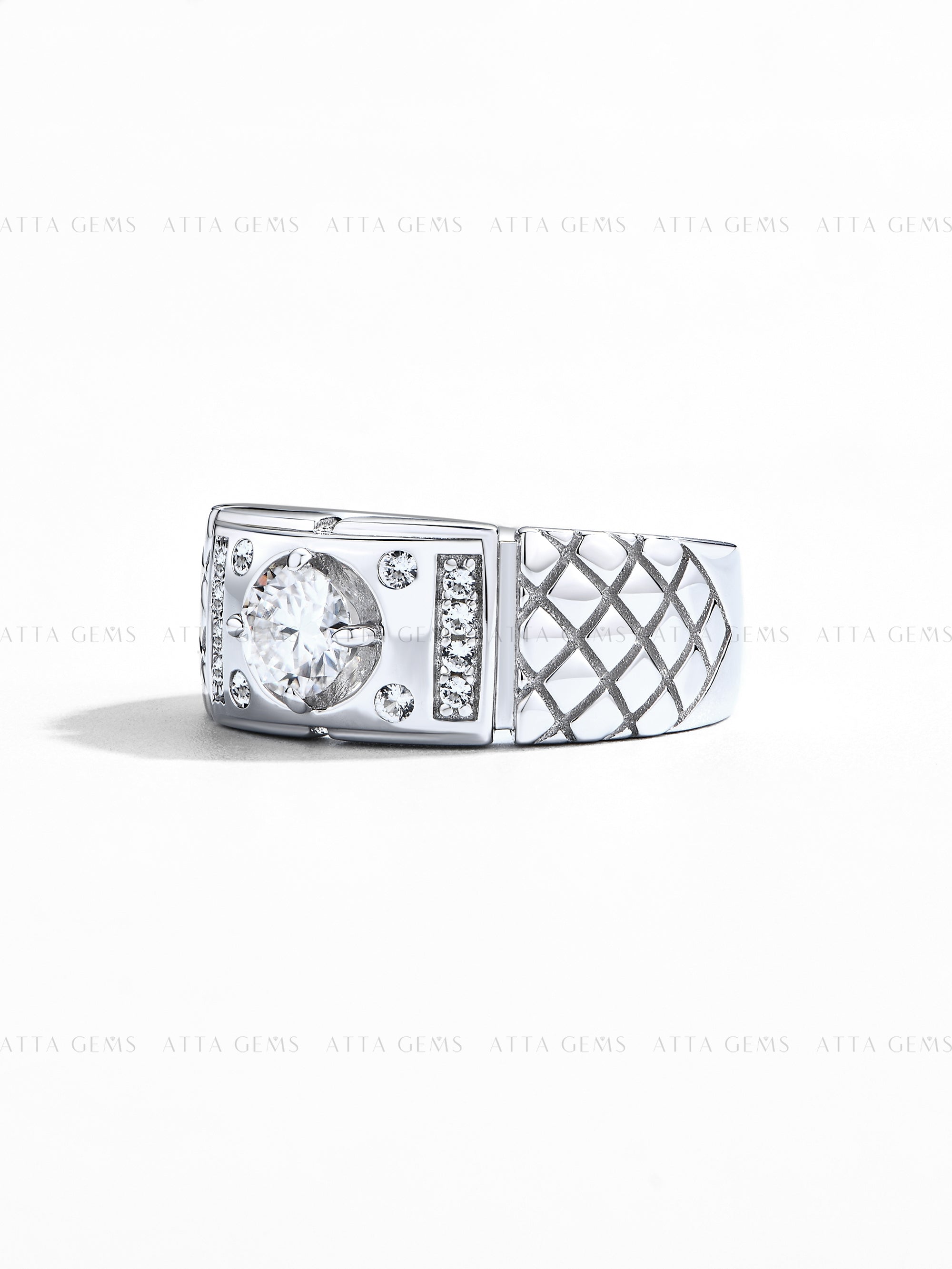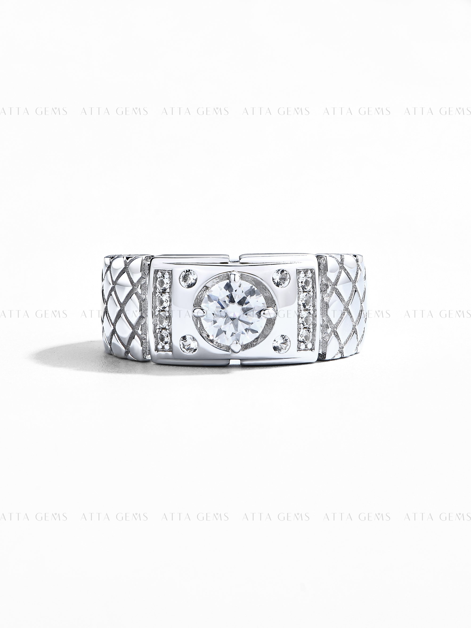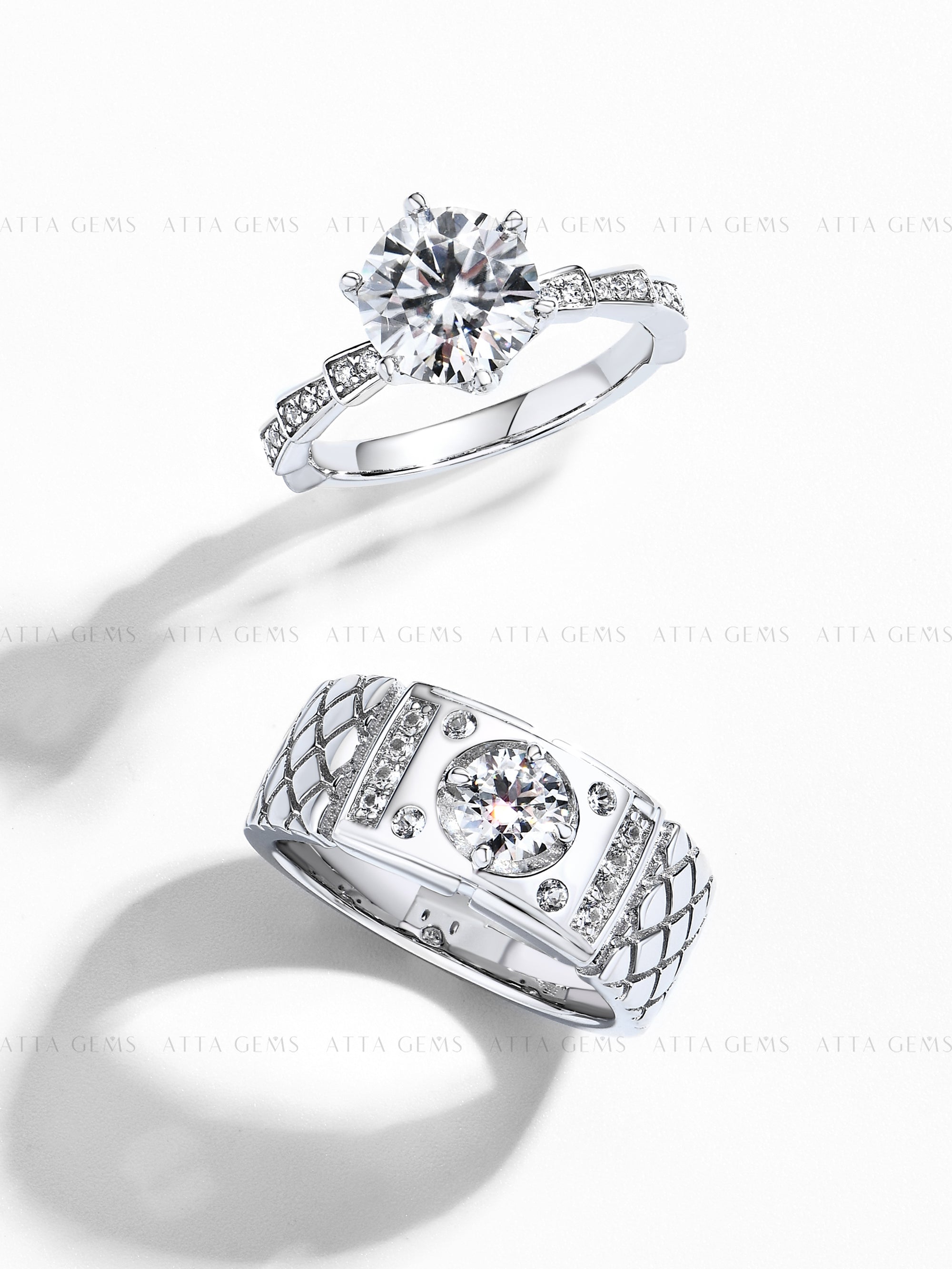 Craftsmanship & Design: Main stone of women ring is moissanite round 8.0mm 2ct. And the main stone of men ring is moissanite round 5mm 0.5ct. Each stone hand-selected and micro-pavé set by master artisans.