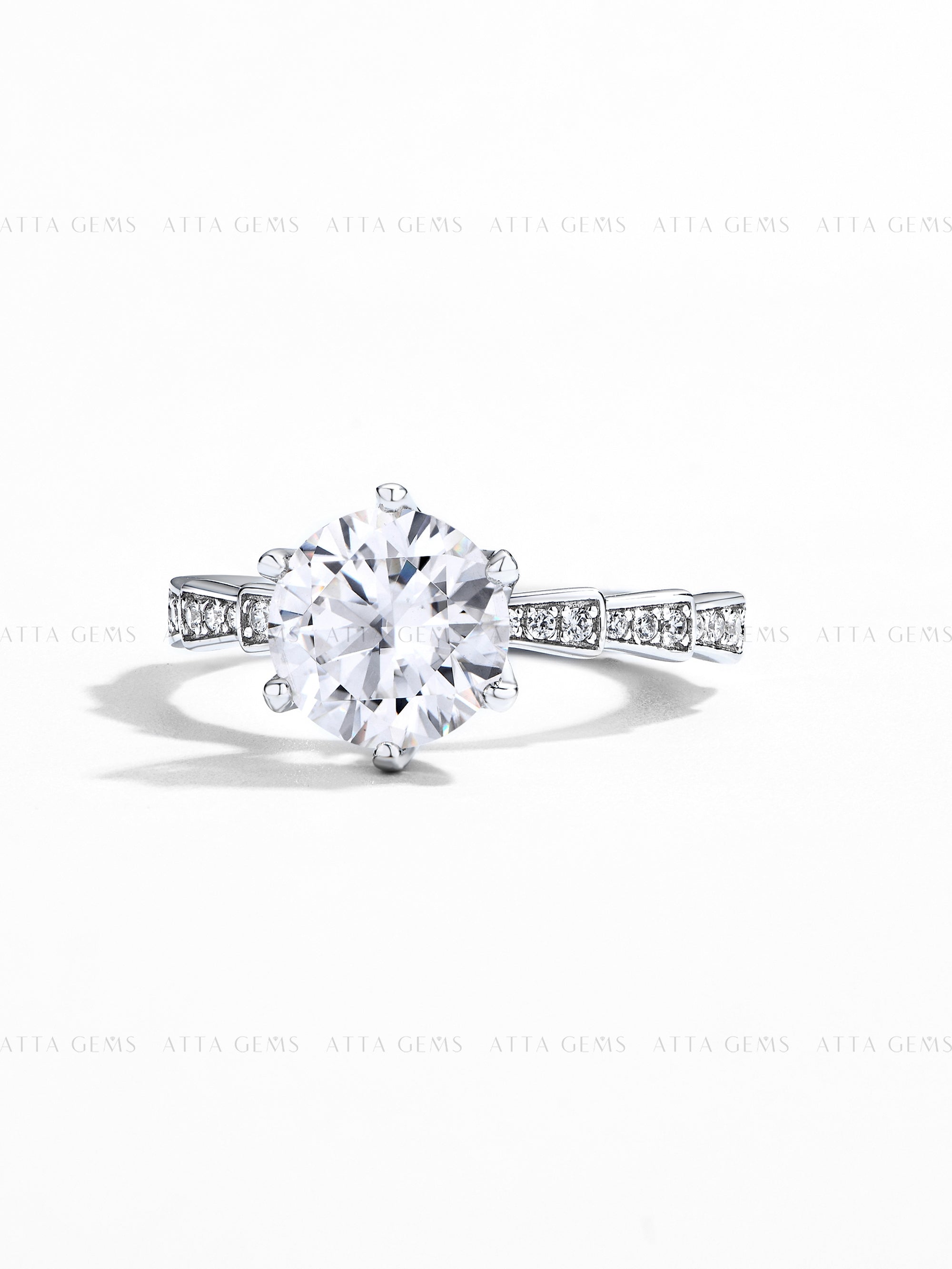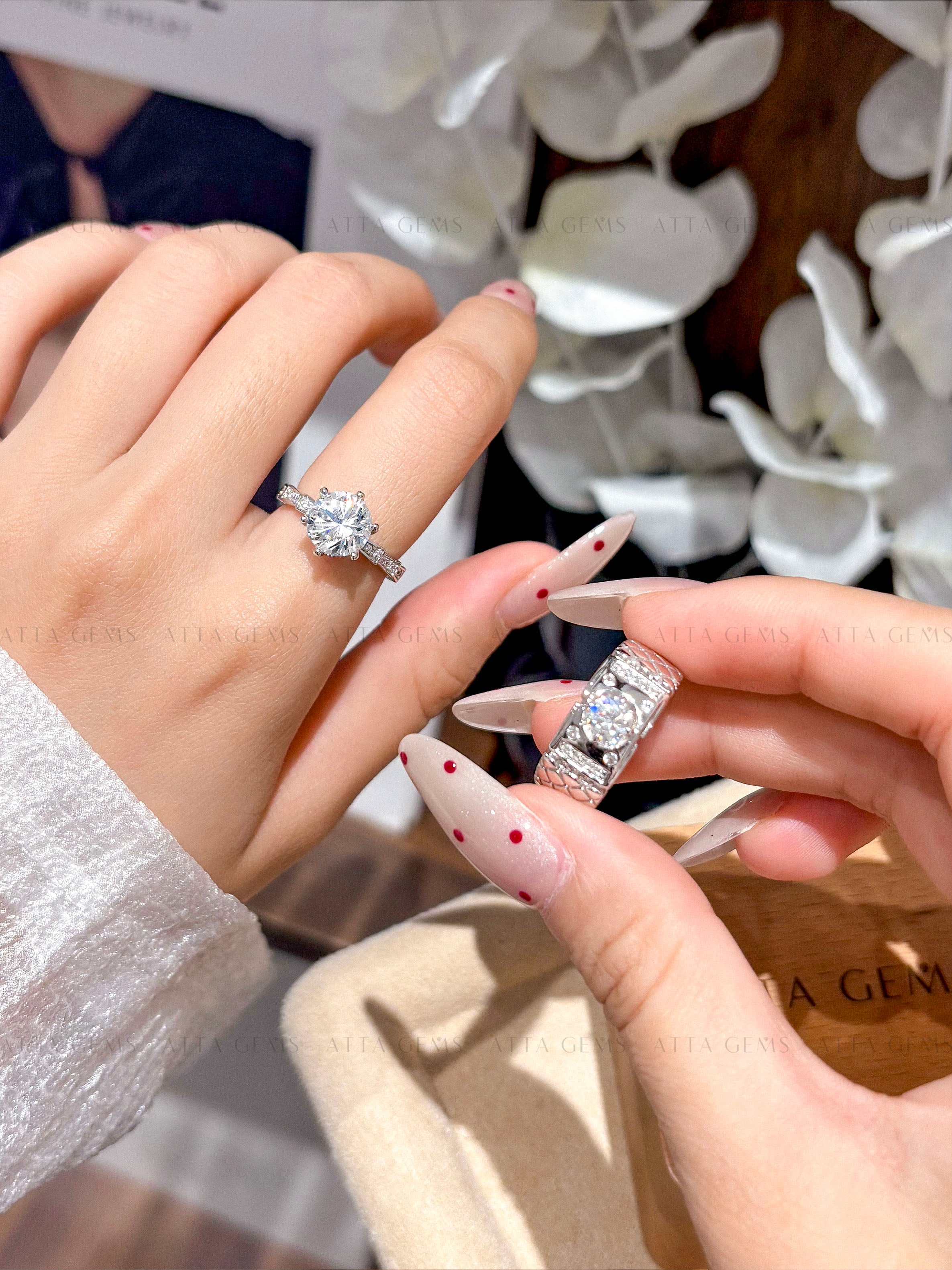 Timeless elegance with this 2.0 ct round brilliant moissanite engagement ring set, designed for couple. Its exceptional sparkle and durability make it the perfect symbol of your commitment. Experience the radiant beauty of moissanite that outshines ordinary stones, offering a stunning presence for any special occasion or everyday wear.