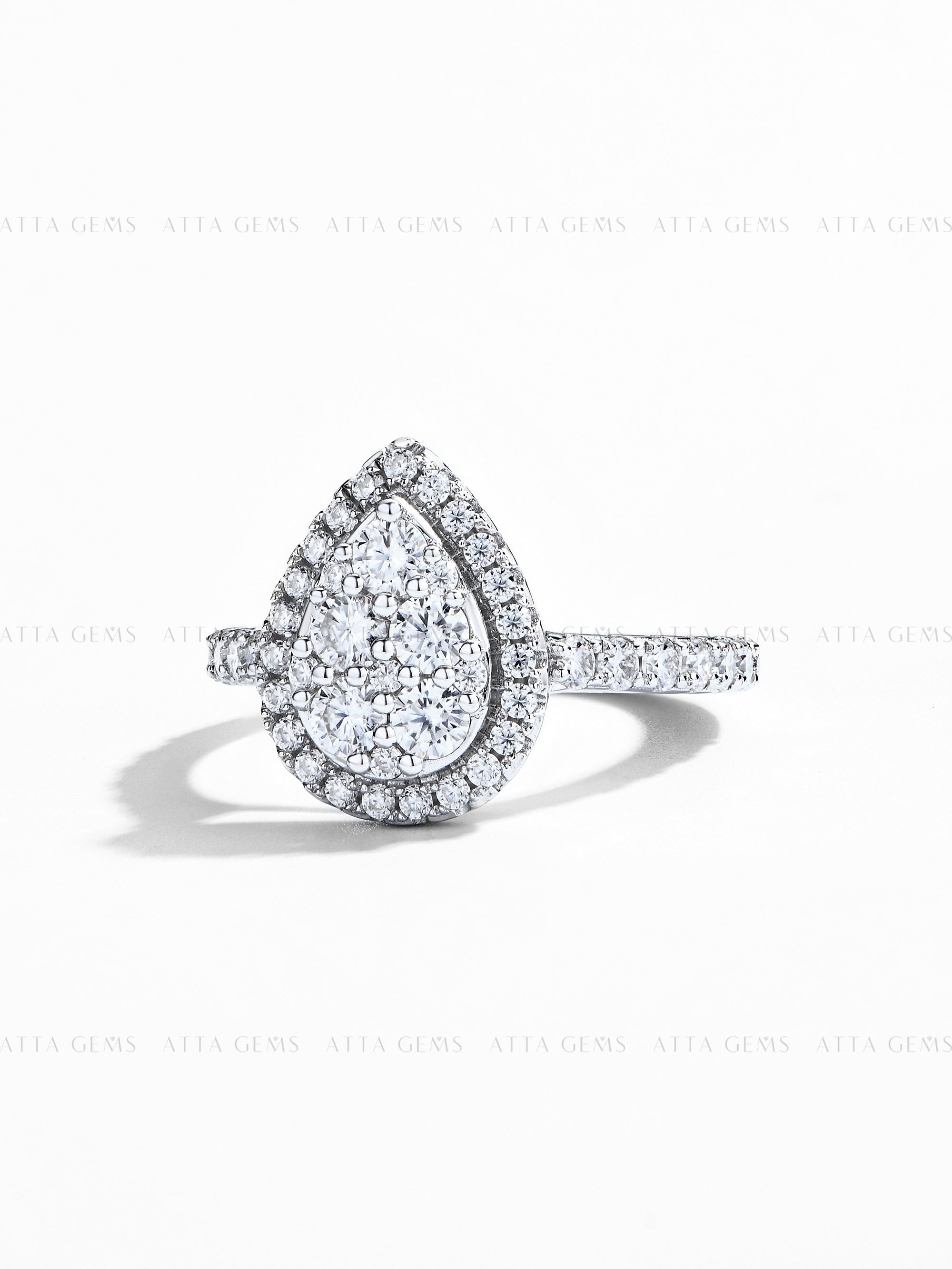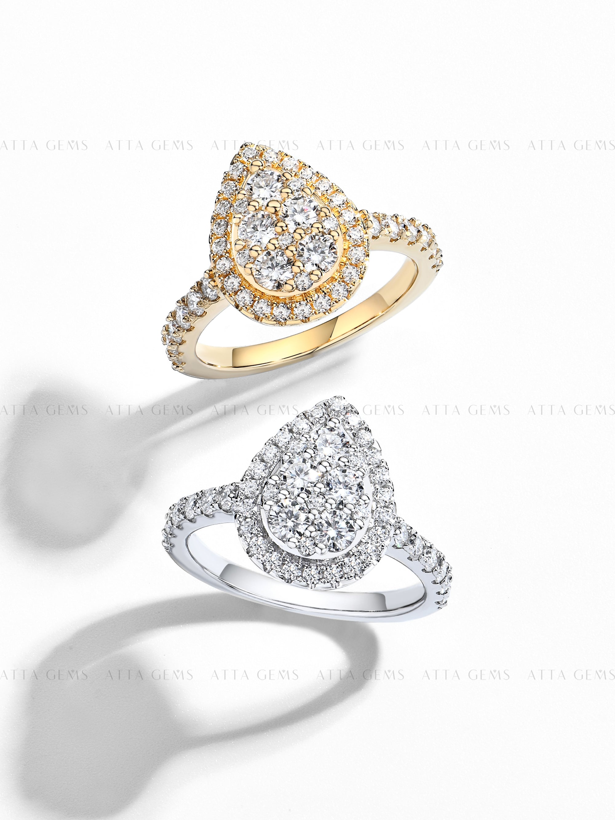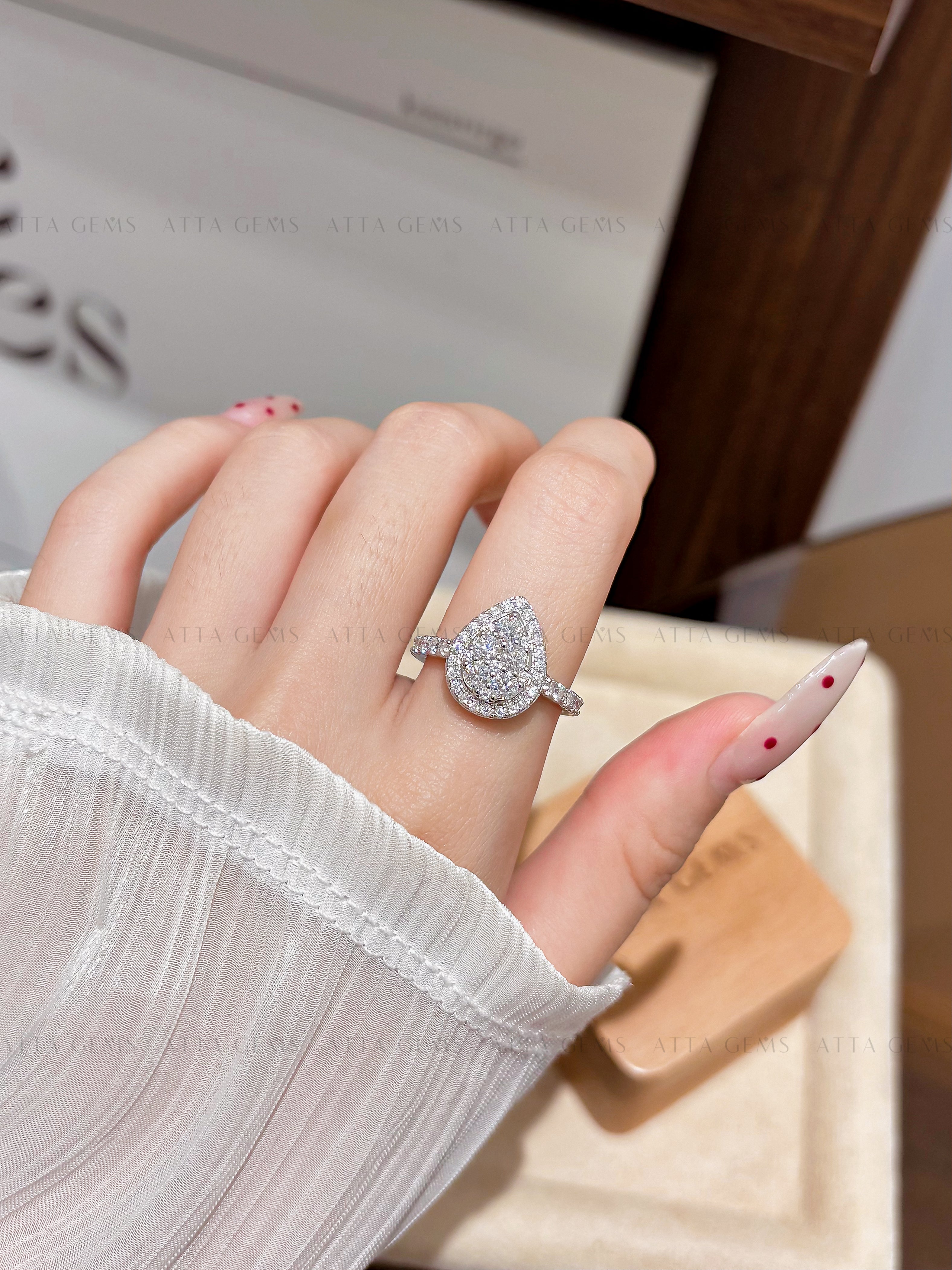 Celebrate your love with Atta engagement ring, designed to capture attention with its elegant pear-shaped centerpiece. This ring offers timeless beauty and a unique silhouette that complements any hand.  Perfect for marking unforgettable moments, it embodies commitment and grace, making it a meaningful choice for your engagement.  #R256