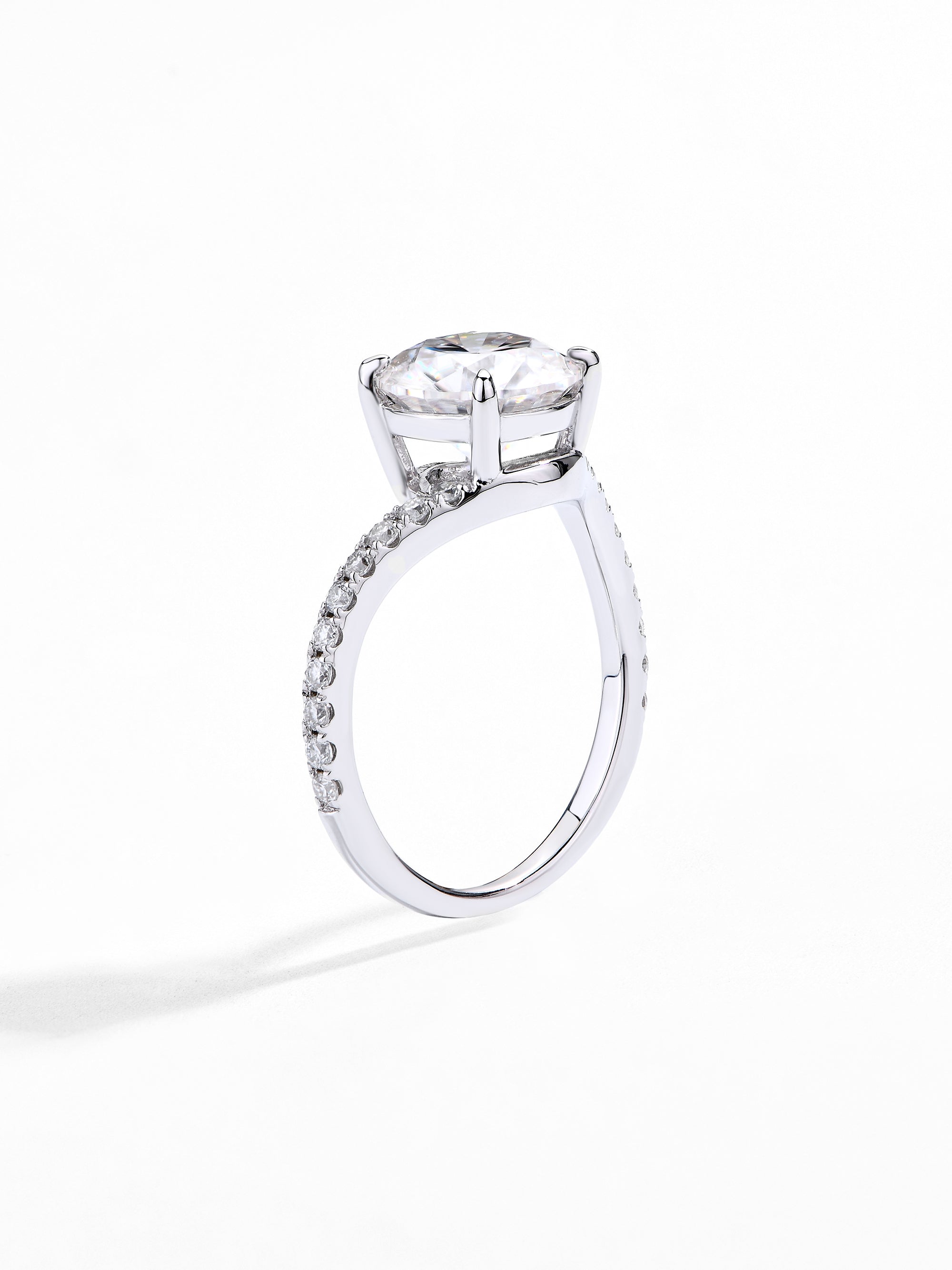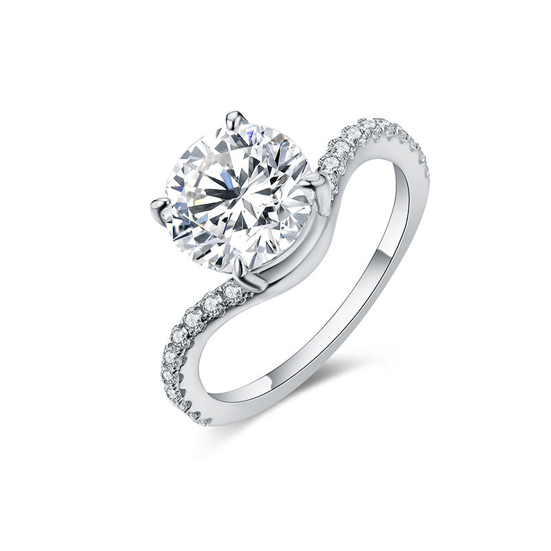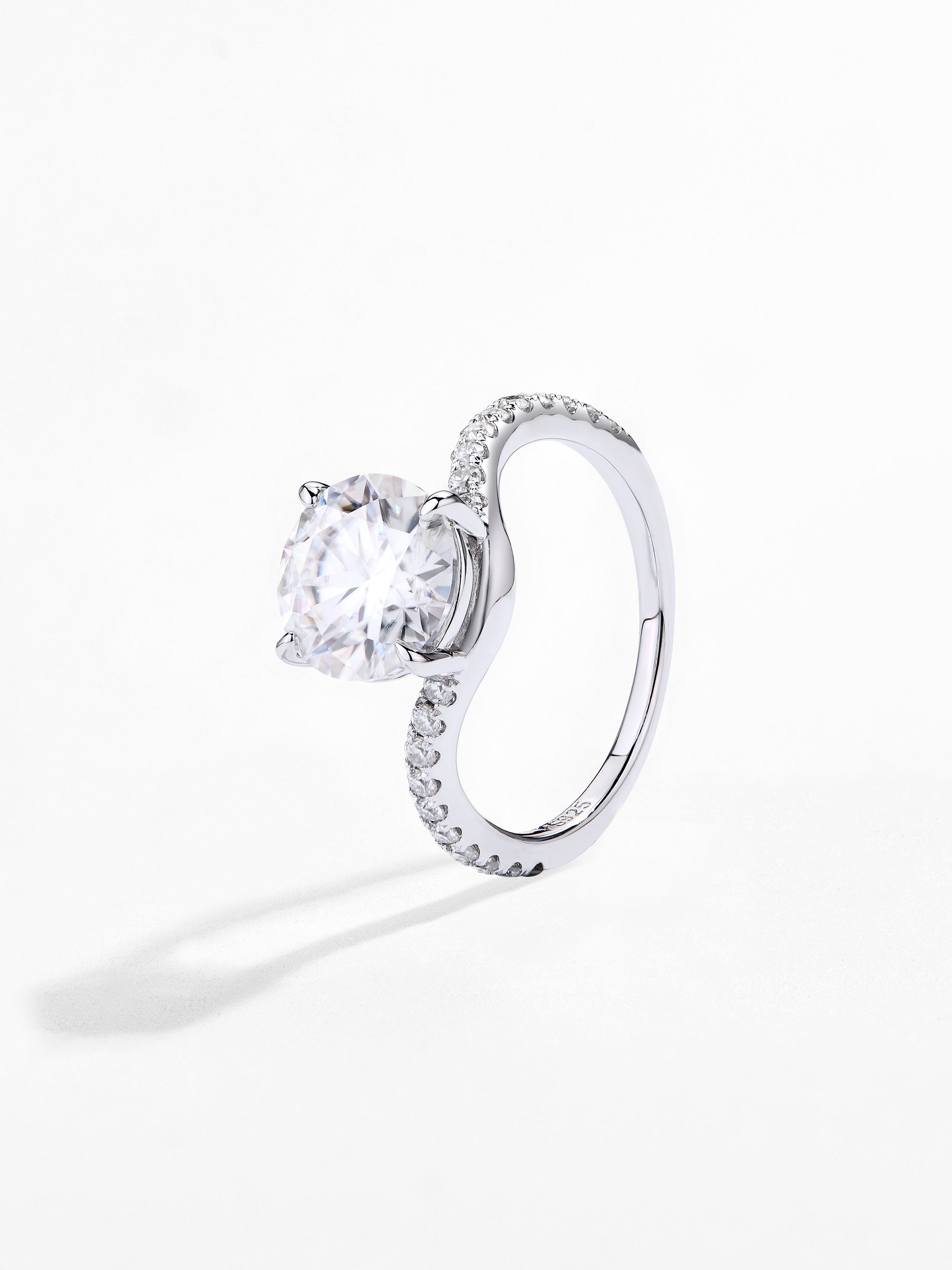 AttaGems new design S925 curve-designed engagement ring. This isn't just a ring; it's a statement! Meet our 2025 showstopper: the 3ct round cut curve moissanite diamond ring. With its 4-prong setting, this beauty is designed to catch every ray of light and turn heads everywhere you go. #R055