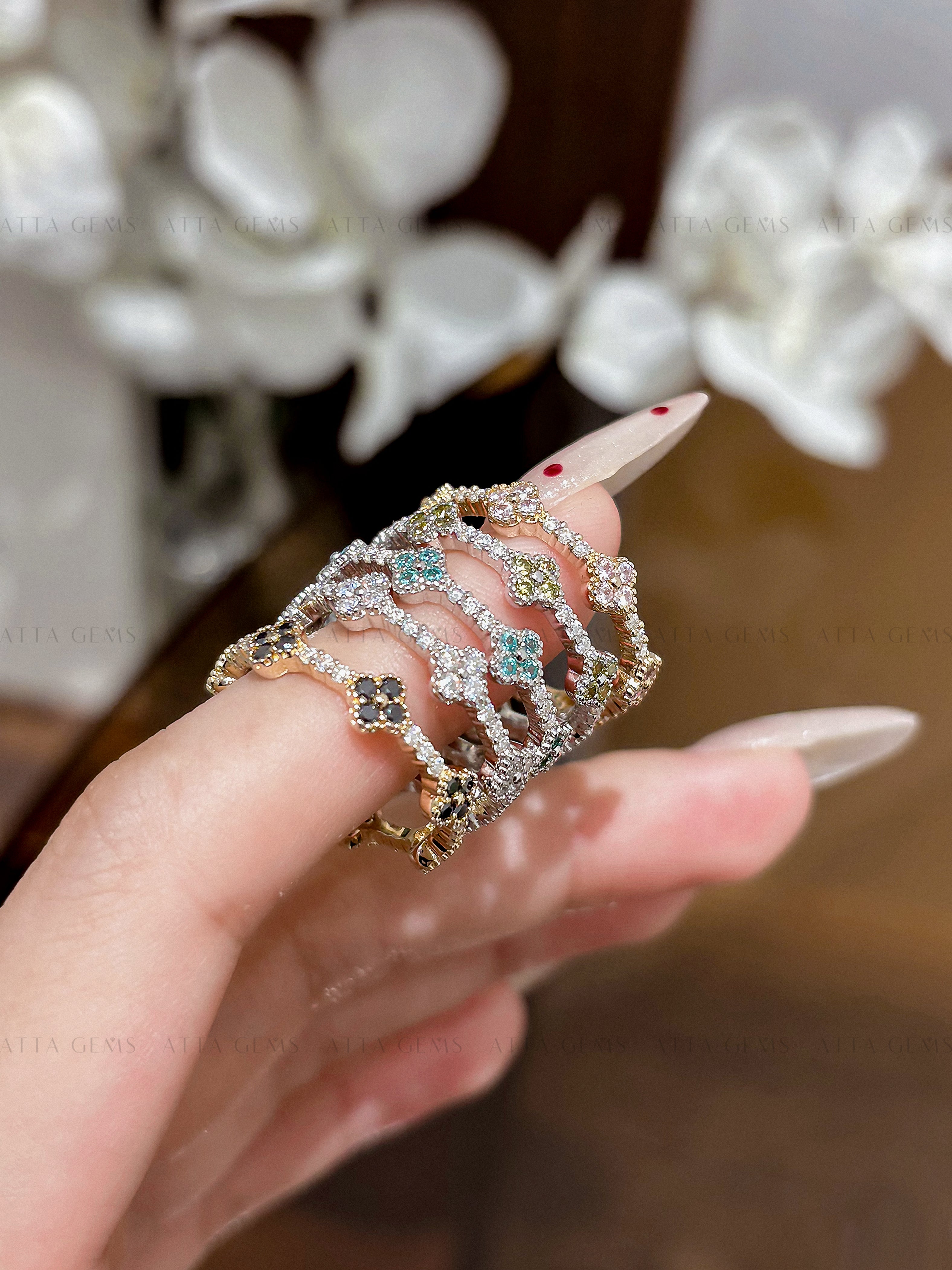 Craftsmanship & Design: Peridot stone/ White moissanite/ Black moissanite/ Pink zircon/ Paraiba stone. Each stone hand-selected and micro-pavé set by master artisans.