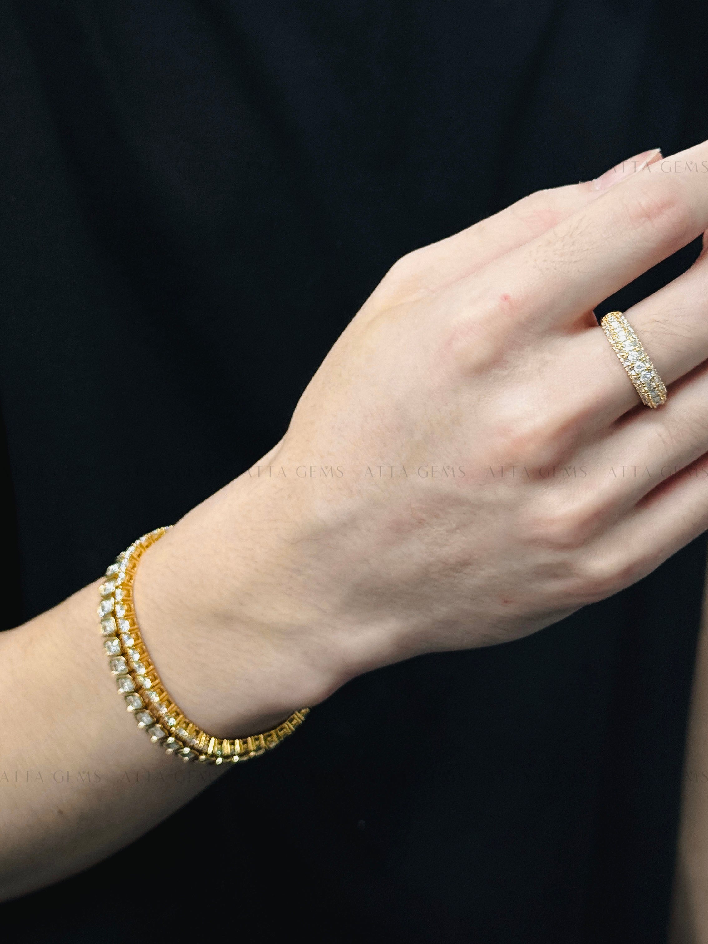 Craftsmanship & Design: Half eternity design. Main stone 1.8mm-2.2mm with full moissanite, total 1.7ct. Each stone hand-selected and micro-pavé set by master artisans.
