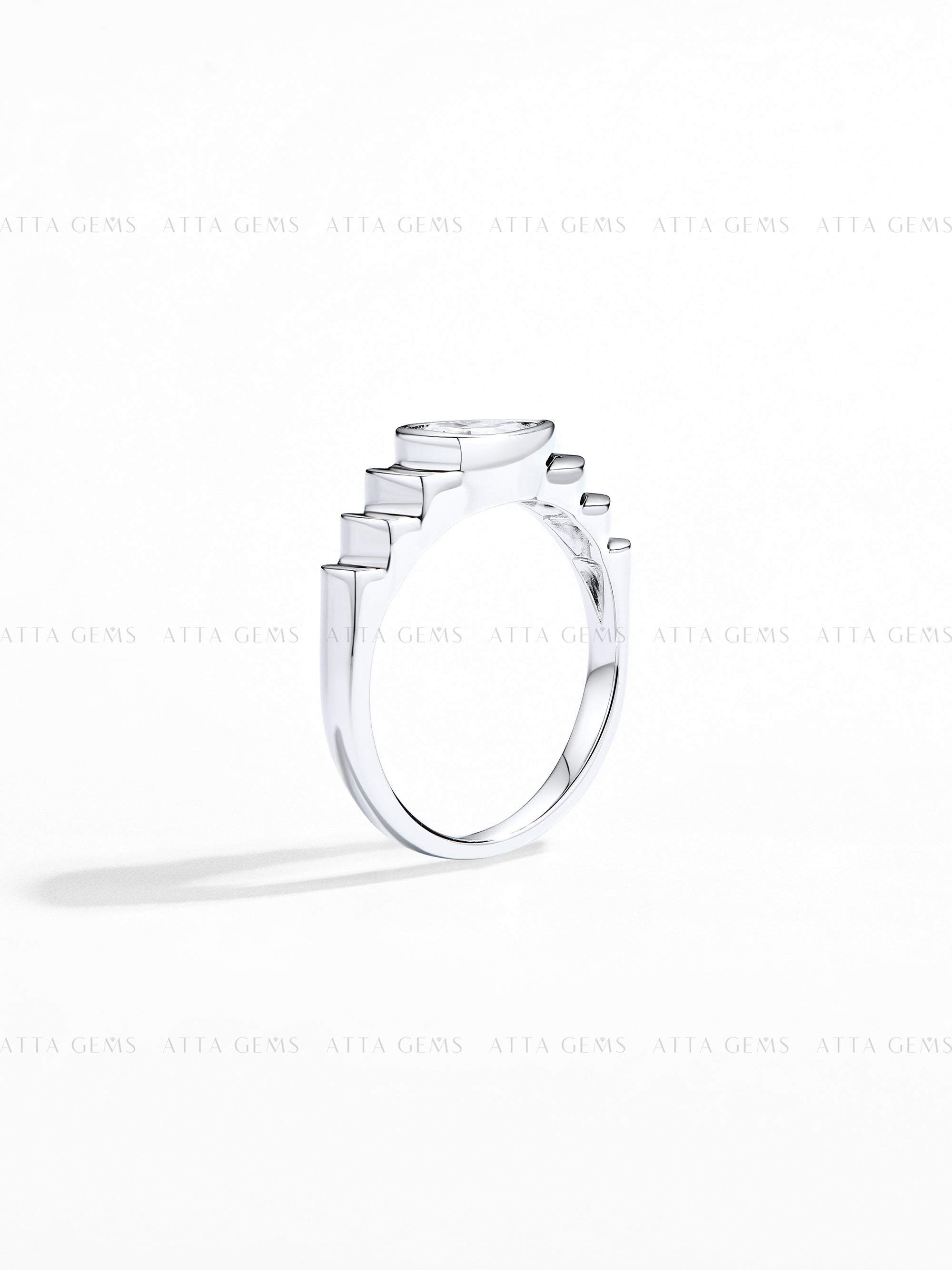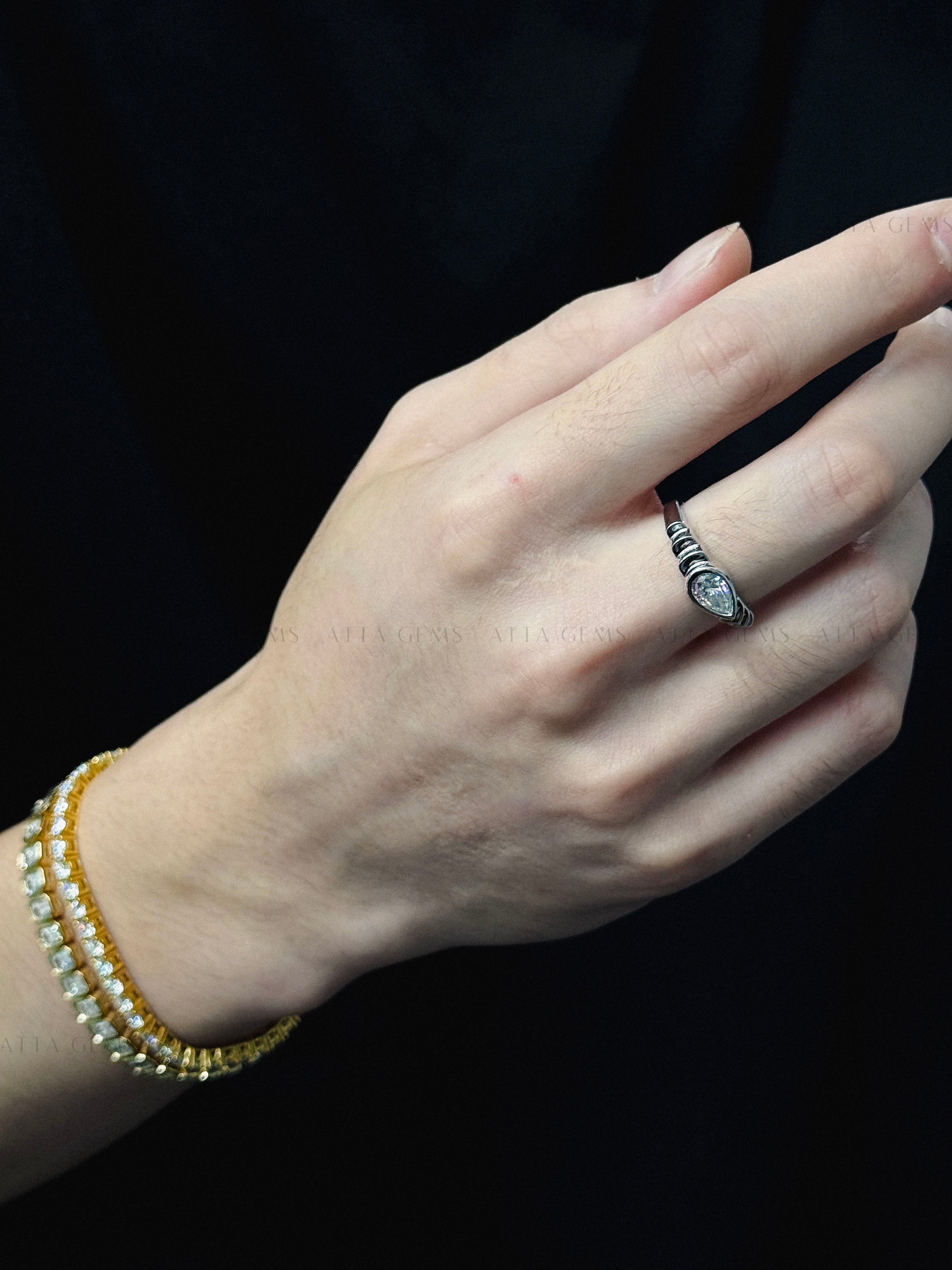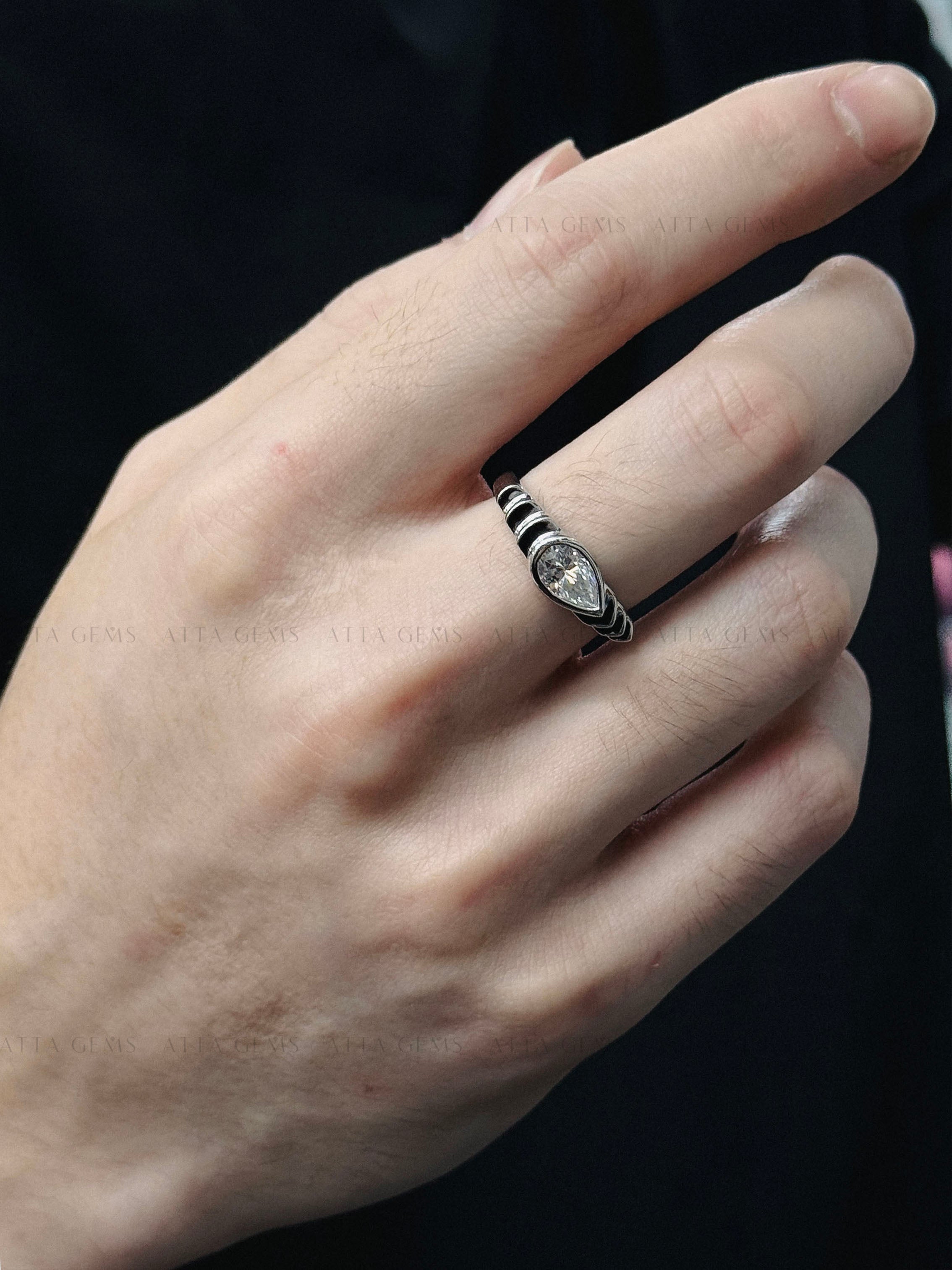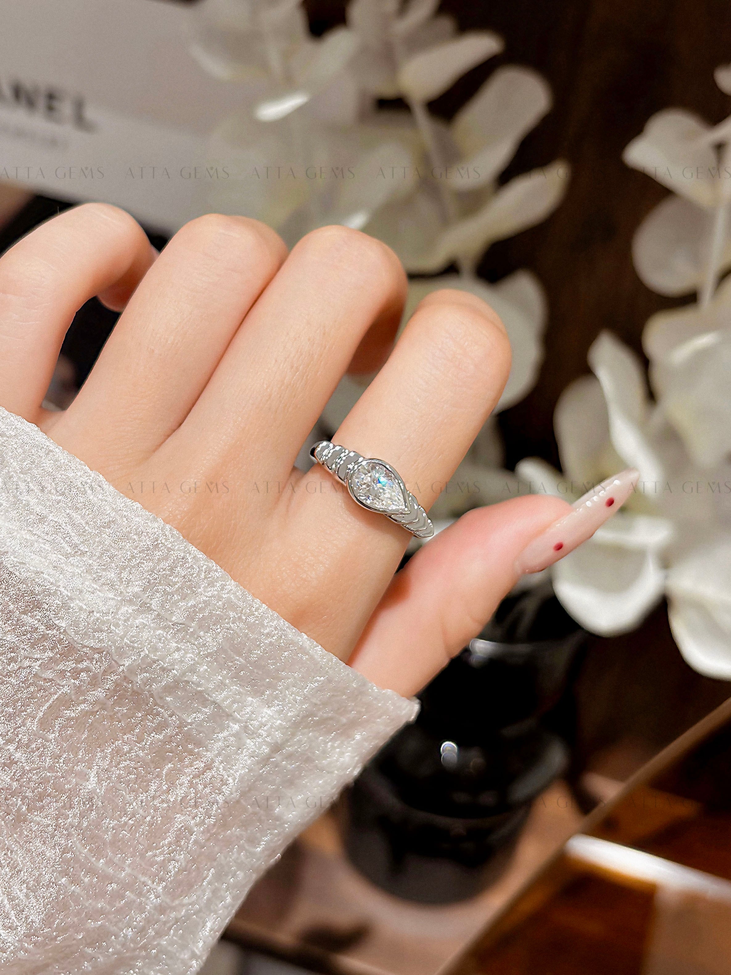 Elevate your elegance with this Pear Bezel Moissanite Ring featuring a stunning 8x5mm, 1-carat moissanite stone. The bezel setting offers sleek protection while enhancing the gem’s brilliant sparkle, perfect for daily wear or special occasions. Experience the timeless beauty and exceptional durability of moissanite in a modern design that effortlessly complements any style. #R289