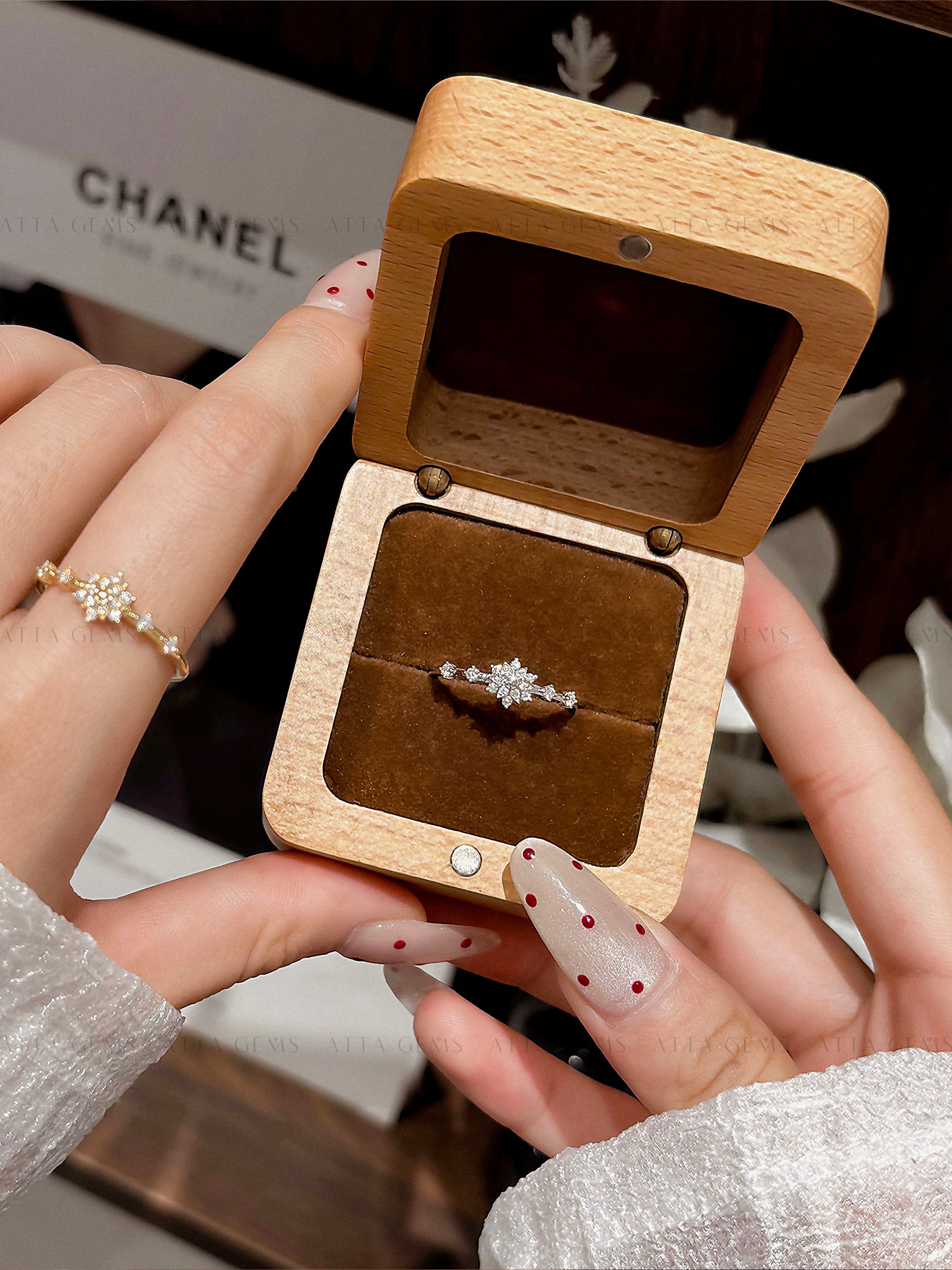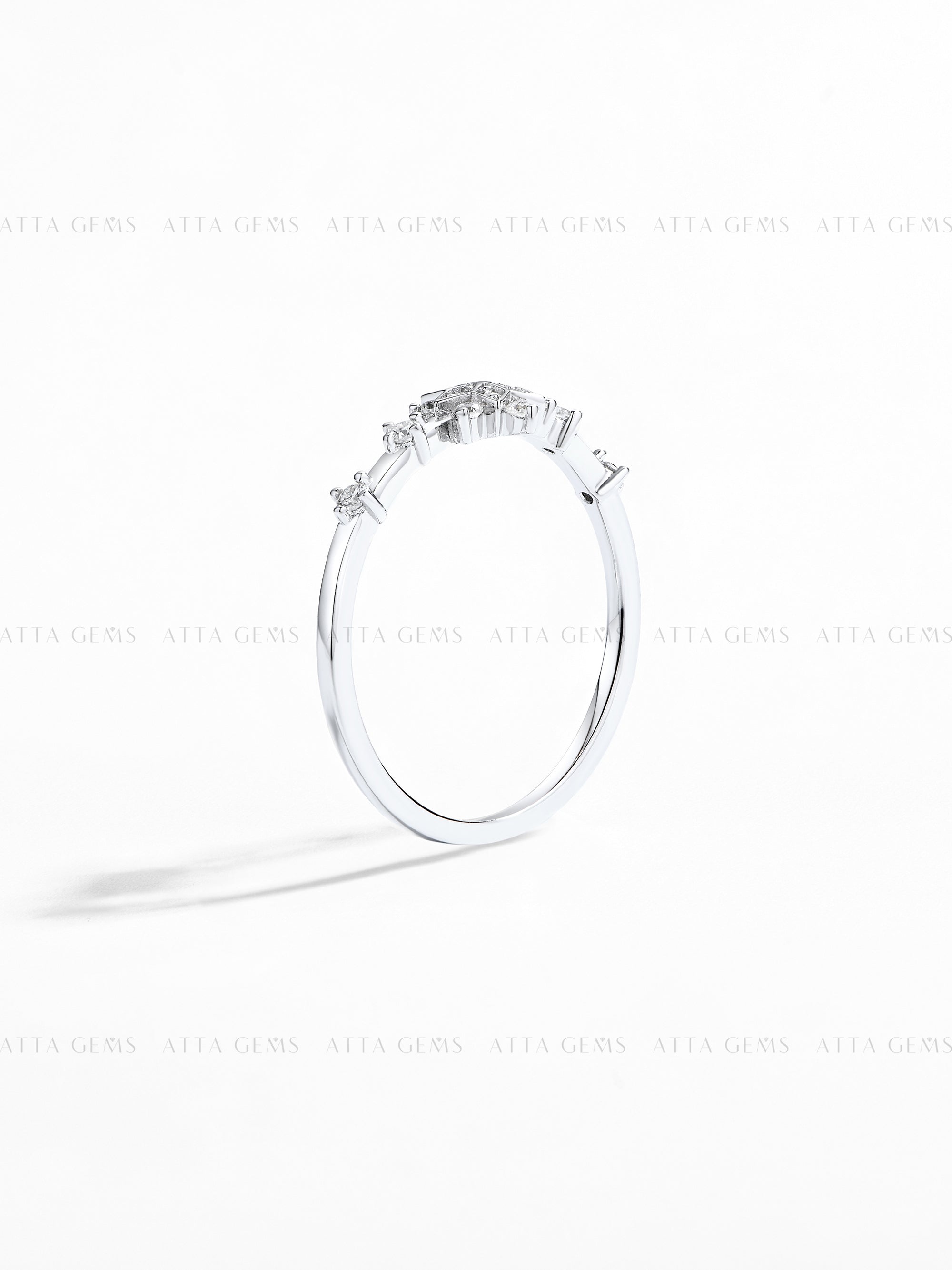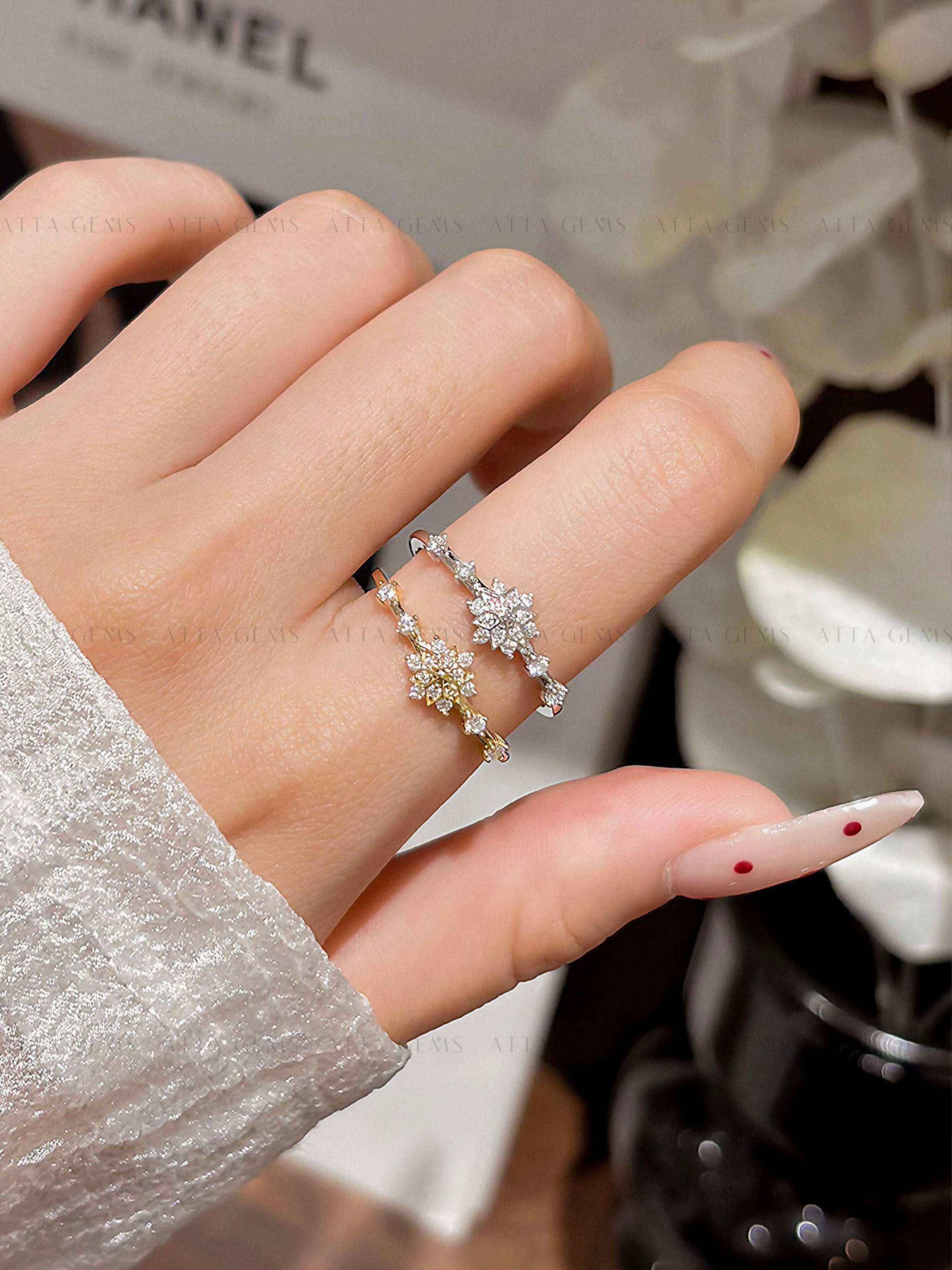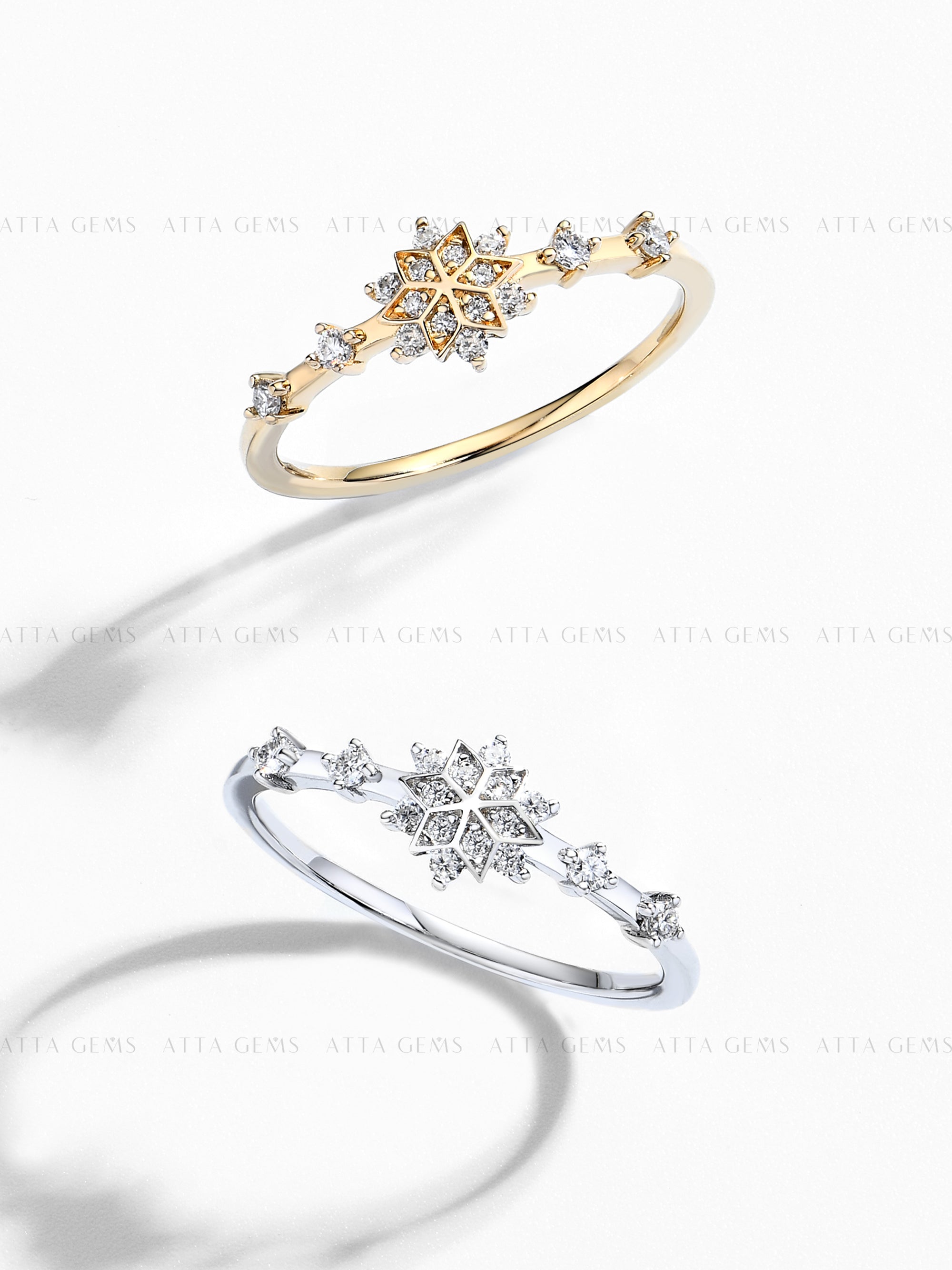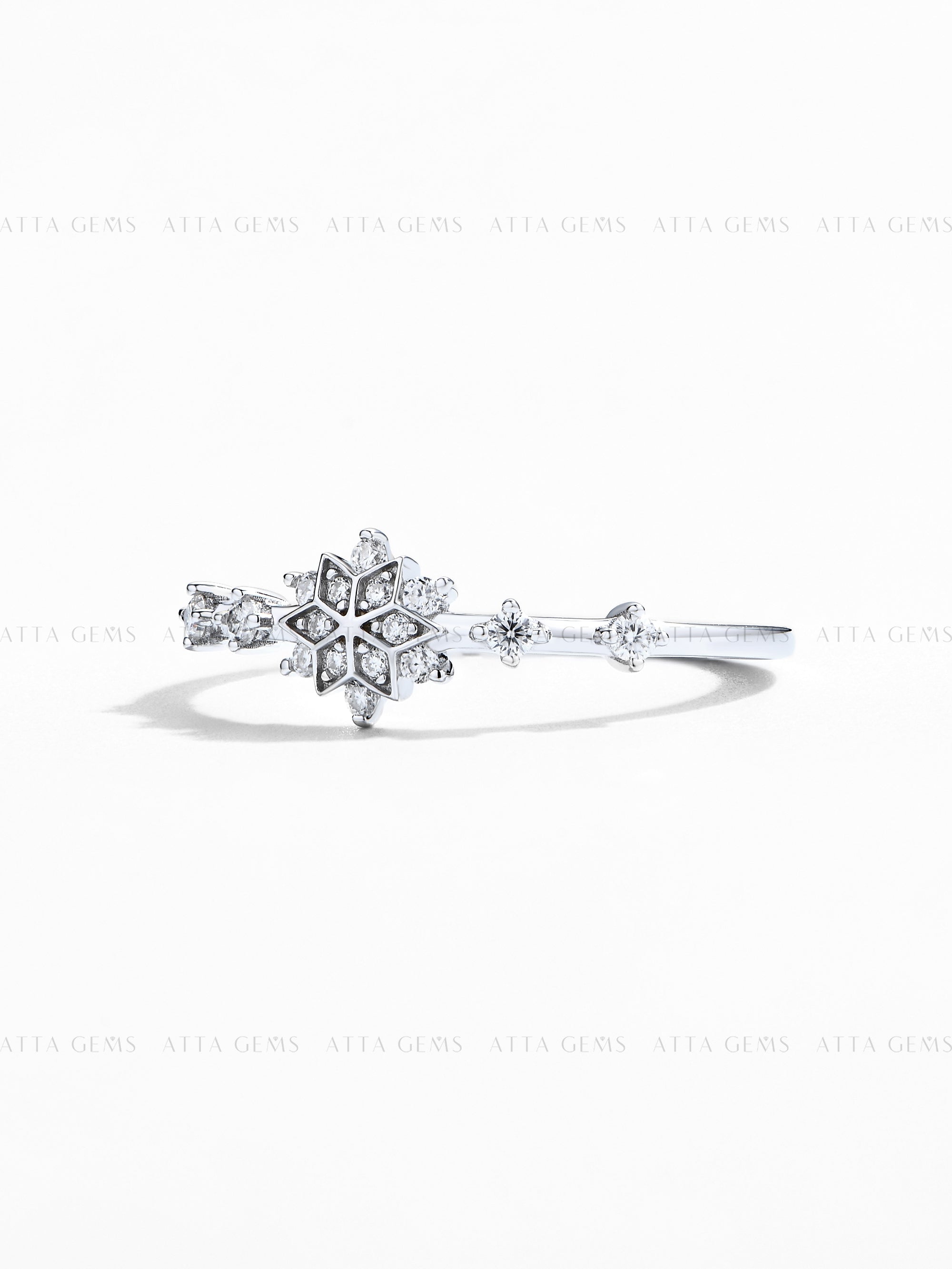 Elevate your special moments with atta snowflake shape DVVS1 moissanite engagement rings. Featuring a dazzling DVVS1 clarity moissanite, these rings showcase exceptional sparkle and brilliance. Designed to resemble a delicate snowflake, this elegant piece symbolizes uniqueness and enduring love.  Perfect for weddings or as a meaningful gift, it combines beauty and quality for a timeless expression of commitment. #R206