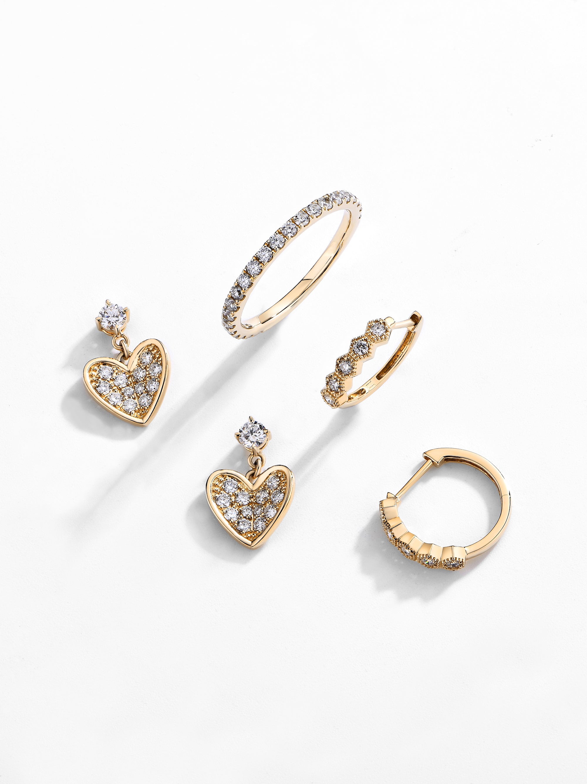 This elegant 18K jewelry set includes a lab-grown diamond ring and earrings, making it both luxurious and environmentally-friendly. With the high-quality 18K gold and sparkling diamonds, this set is perfect for any special occasion. Enjoy the beauty and sustainability of lab-grown diamonds with this stunning set.