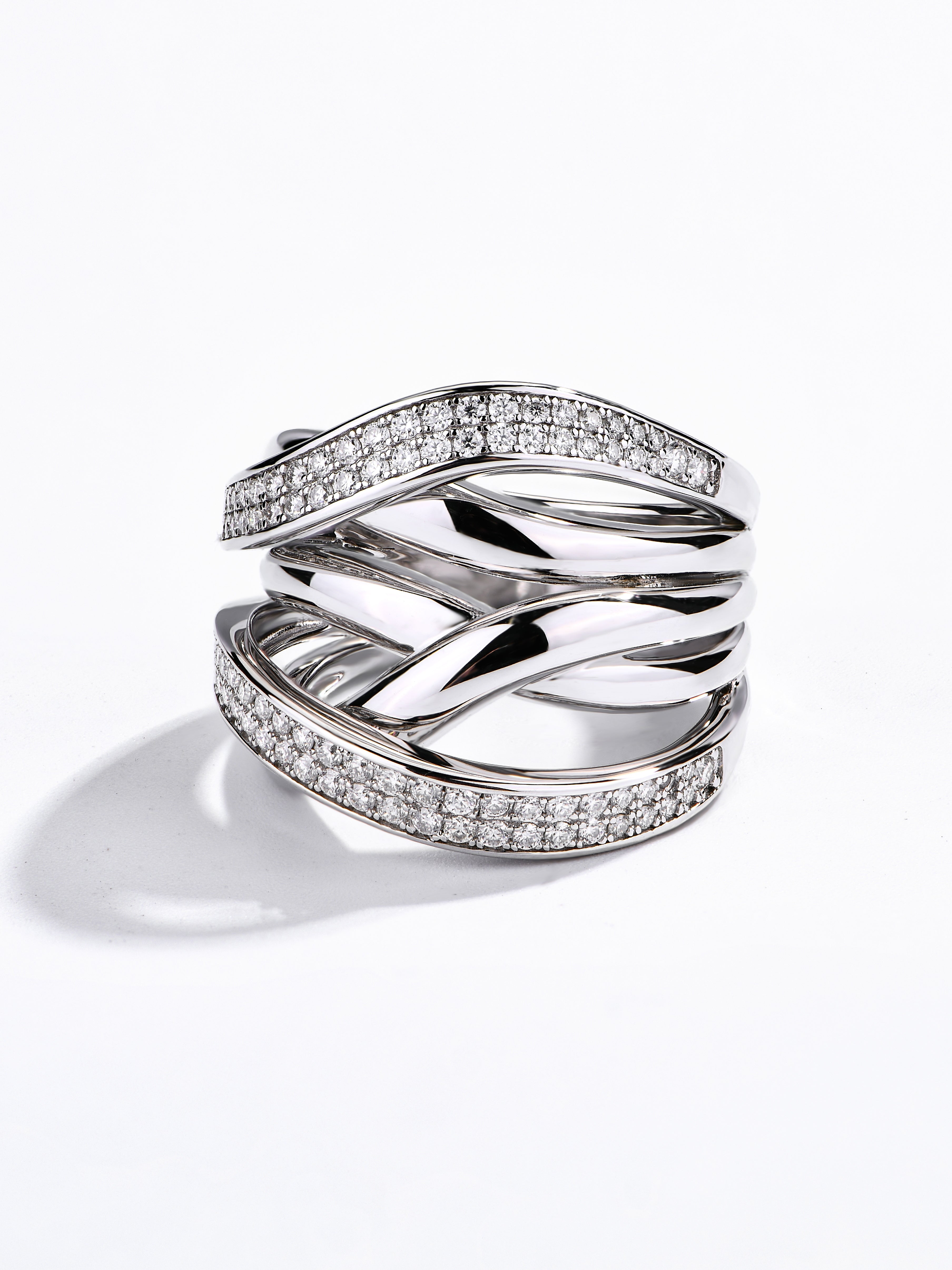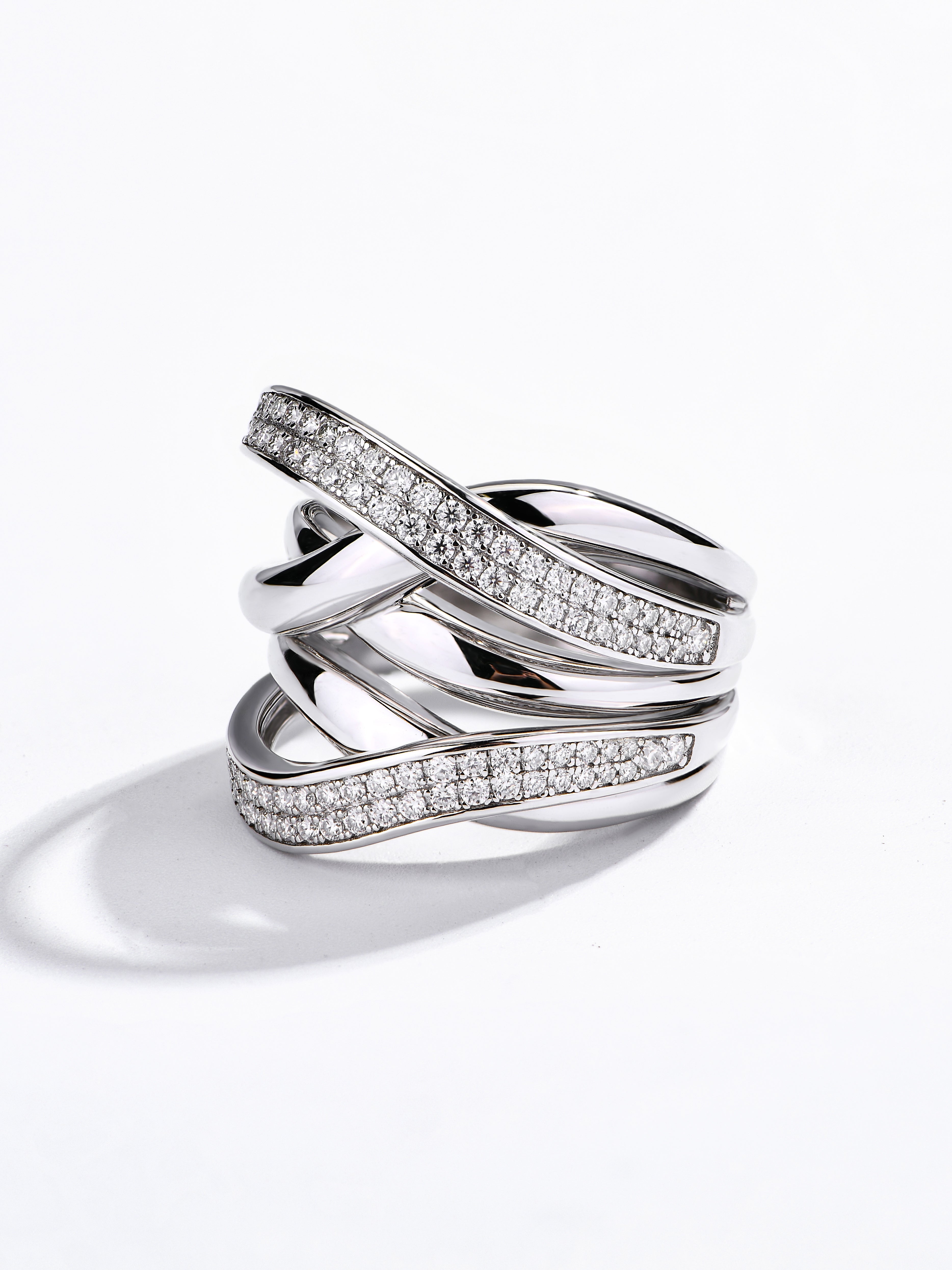Unlock elegance with atta modern entwined hinged box authentic ring, featuring a dazzling moisannite diamond. Show your unique style with this modern twist on a classic design. Perfect for engagement fine jewelry gift.