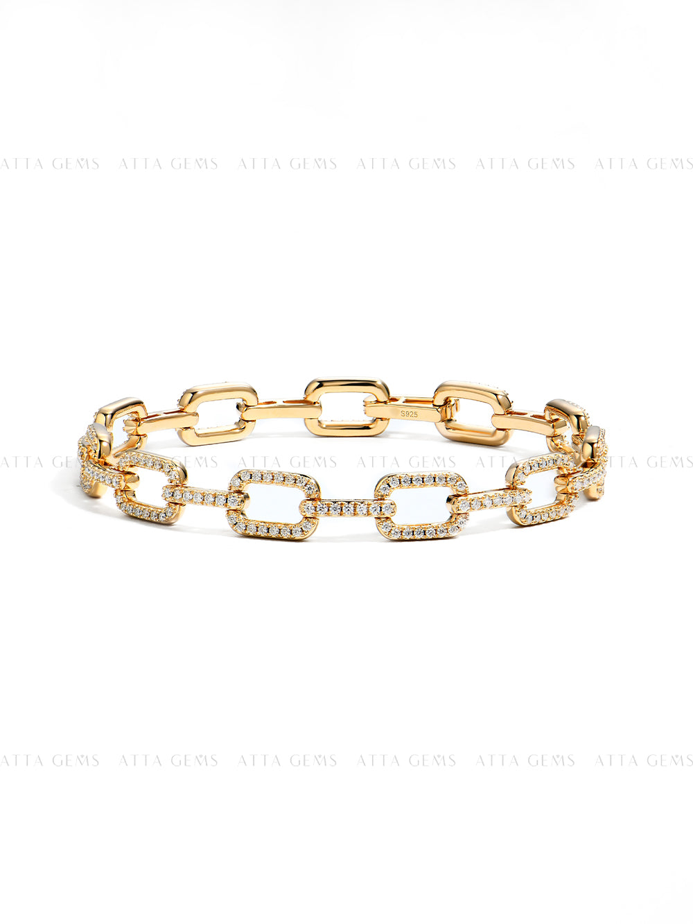 Paperclip Moissanite Link Bracelet merges edgy modernity with subtle luxury. Its sleek paperclip silhouette is accented by brilliant moissanite, balancing bold design and delicate sparkle. Ethically crafted, it elevates casual fits and evening looks alike, becoming your go-to for effortless, refined everyday glamour.