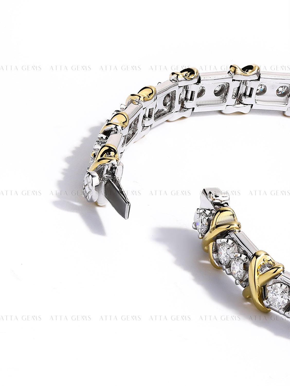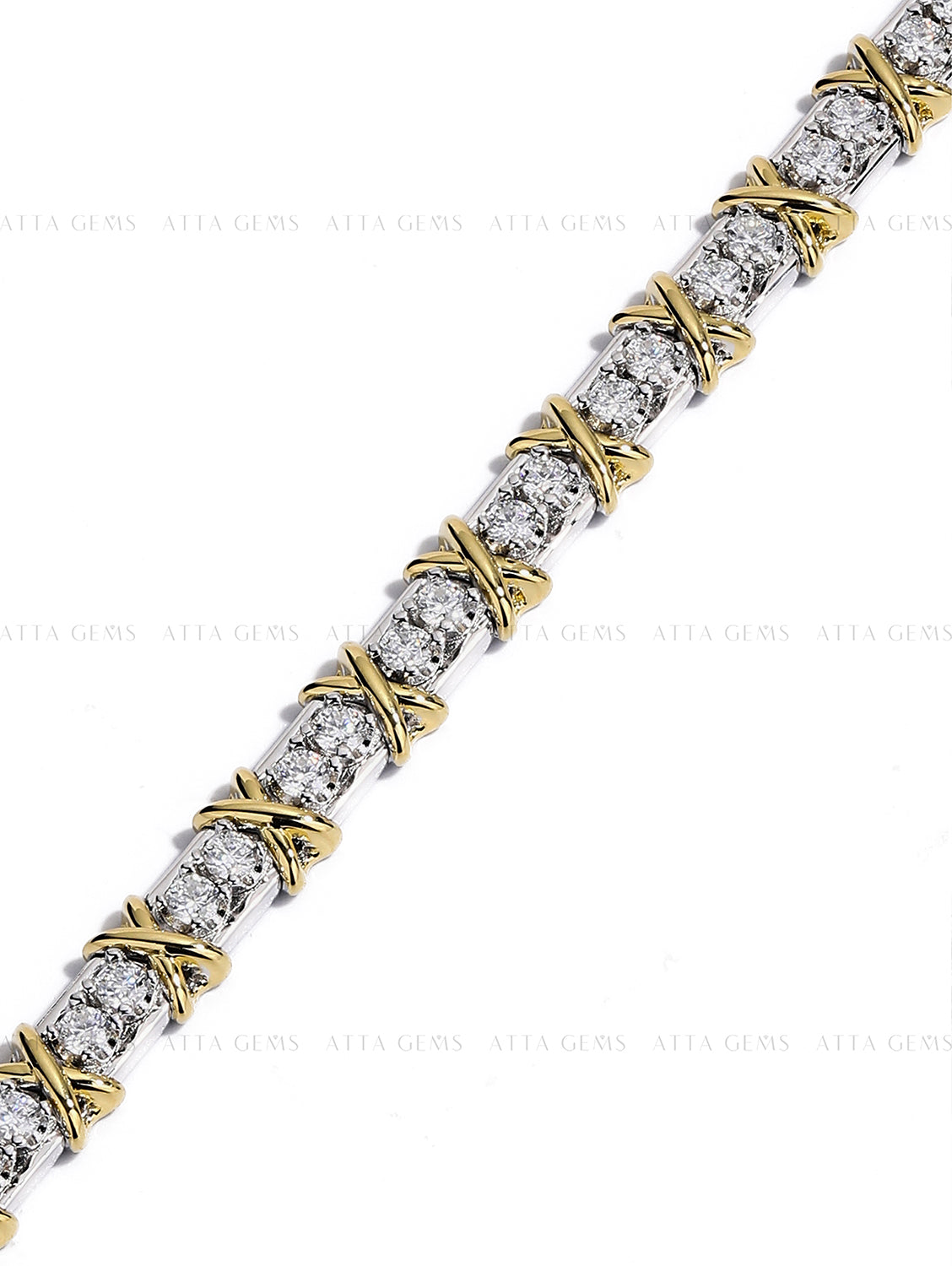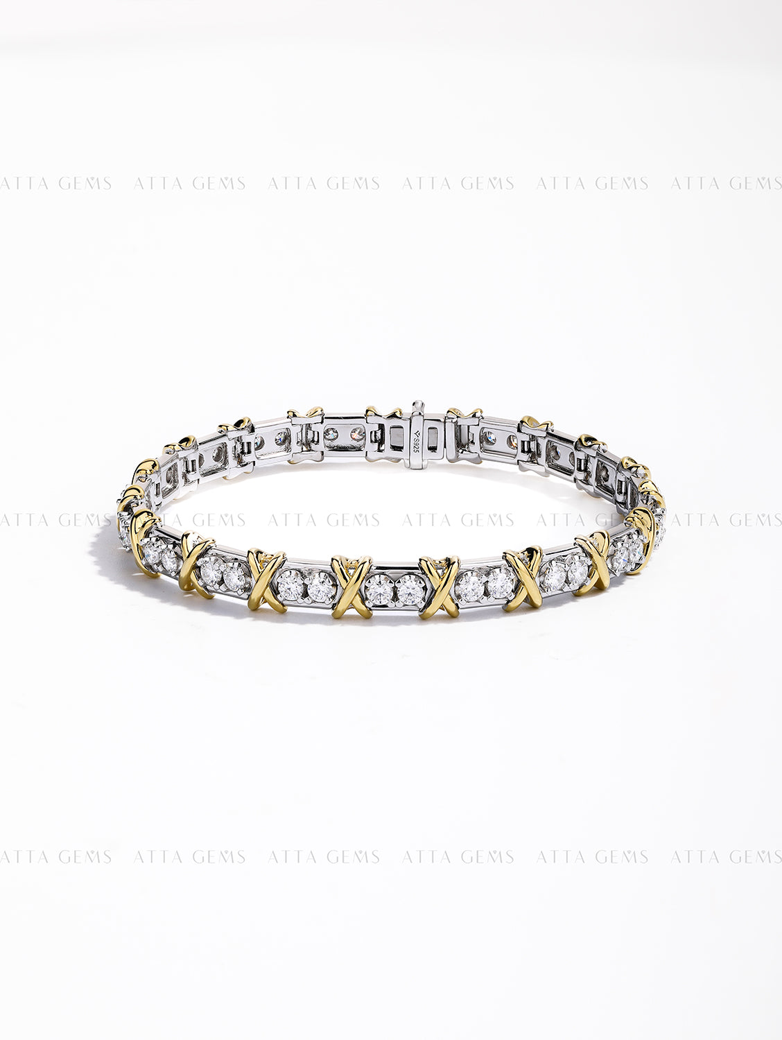 Elevate your style with the Two-tone X Cross Tennis Bracelet, a harmonious blend of elegance and modern design. The contrasting tones highlight the delicate cross pattern, making it a versatile piece for both daily wear and special occasions. Crafted for comfort and durability, this bracelet offers a graceful touch that complements any outfit effortlessly.