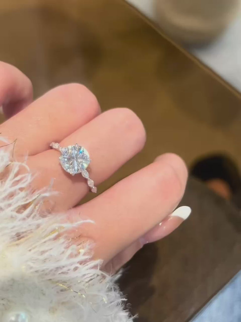 Craftsmanship & Design: Main stone round cut 9mm 3ct and side stone marquise 4*2mm with full moissanite. Each moissanite diamond hand-selected and micro-pavé set by master artisans.