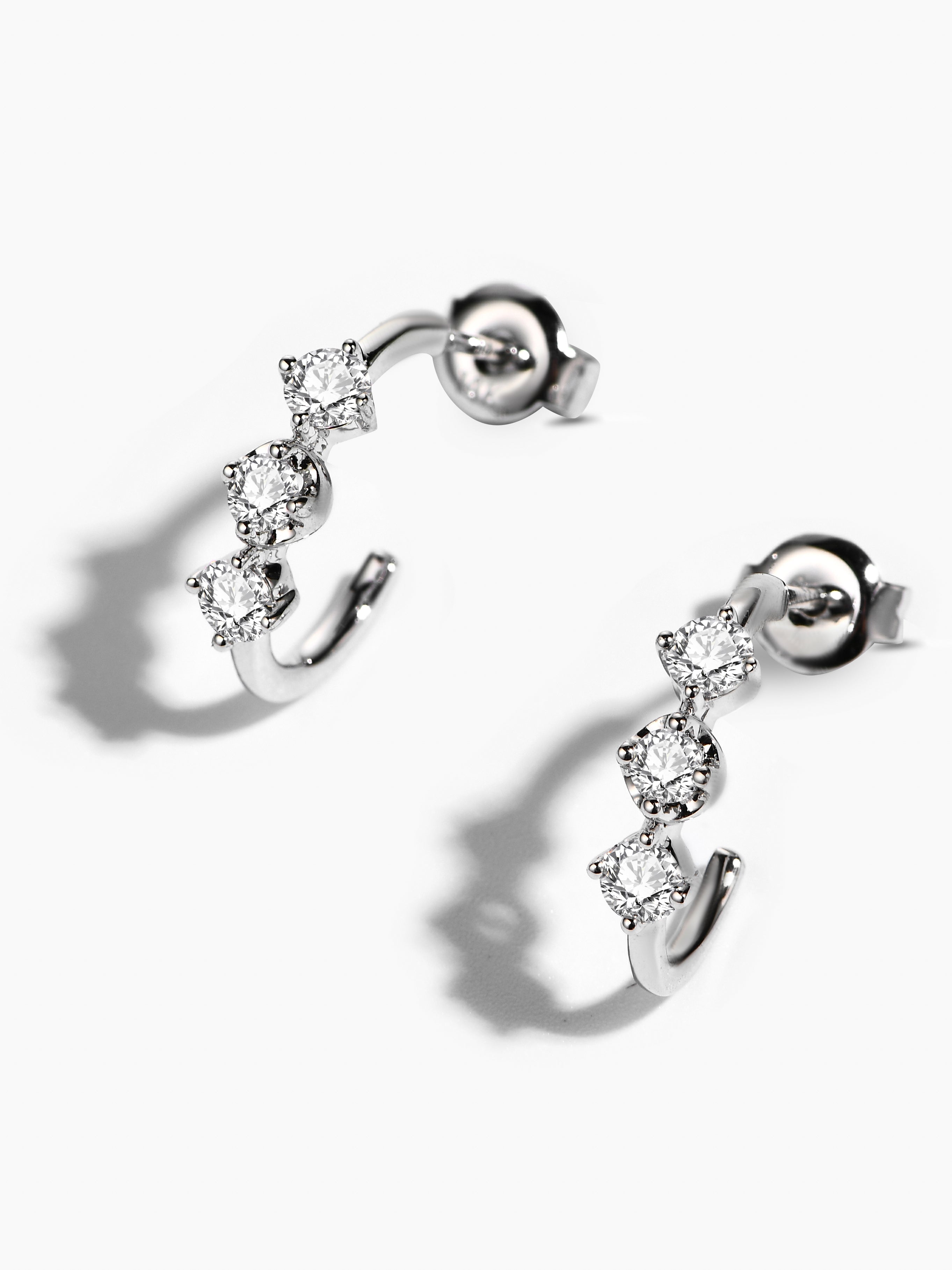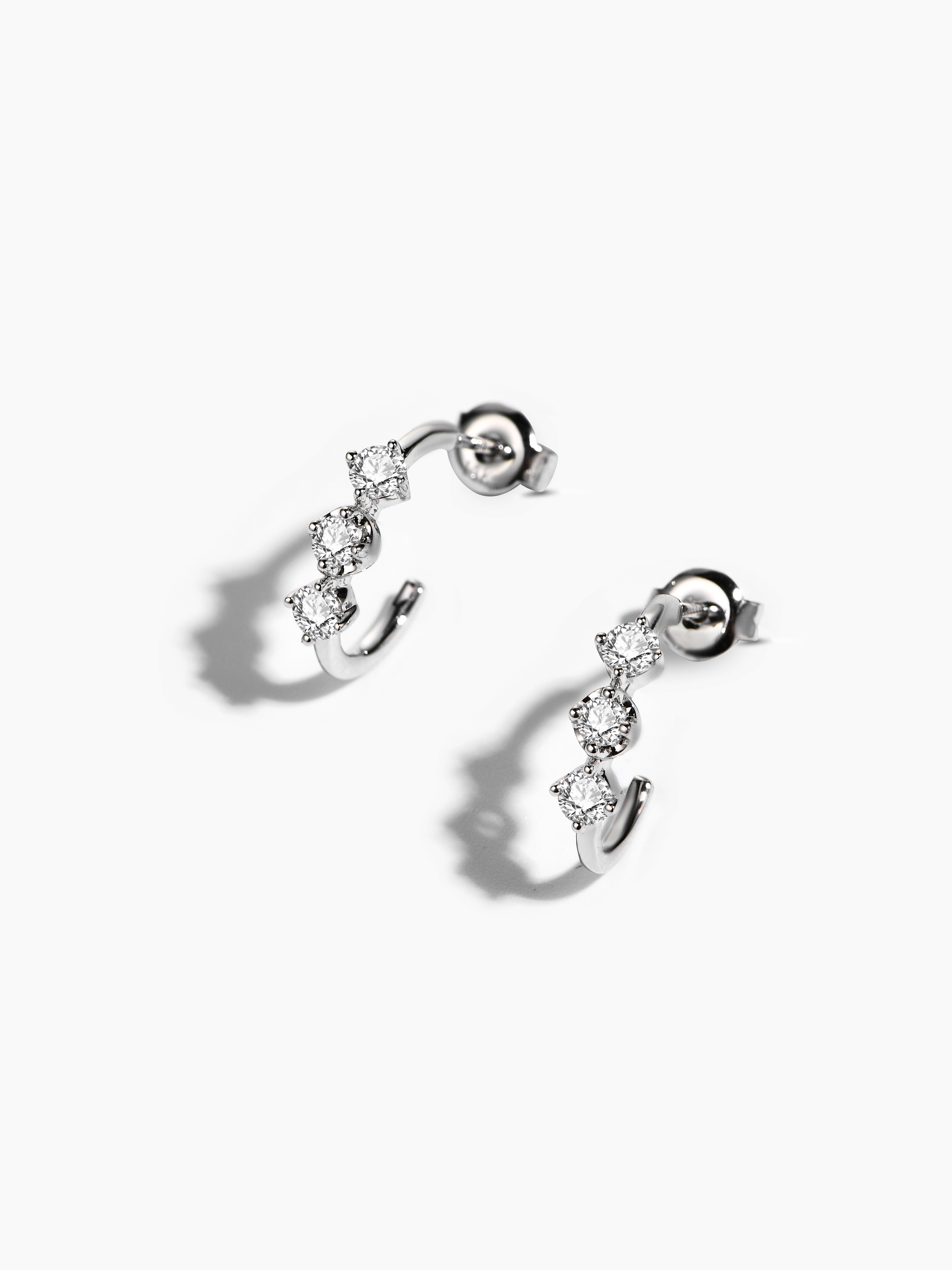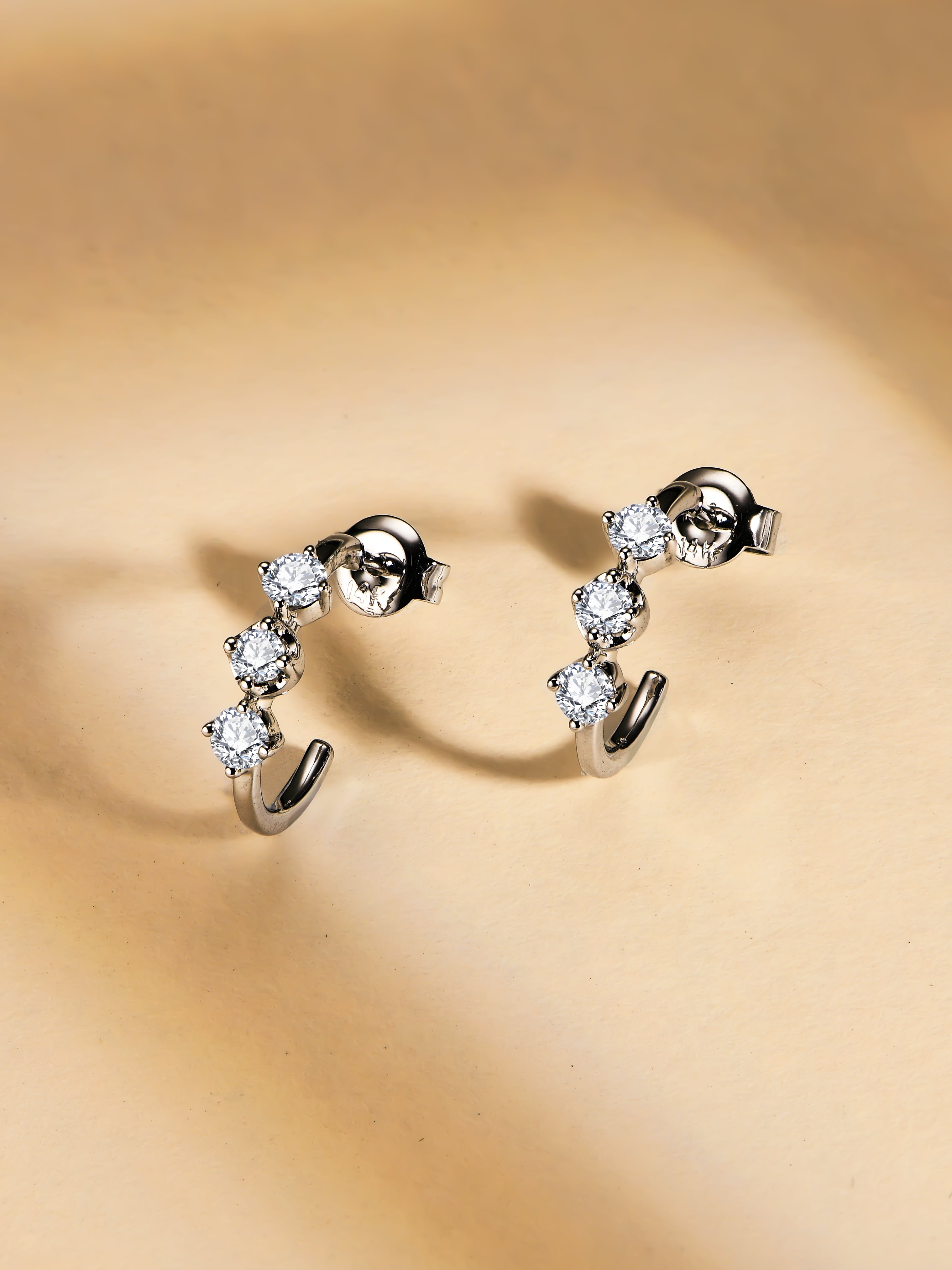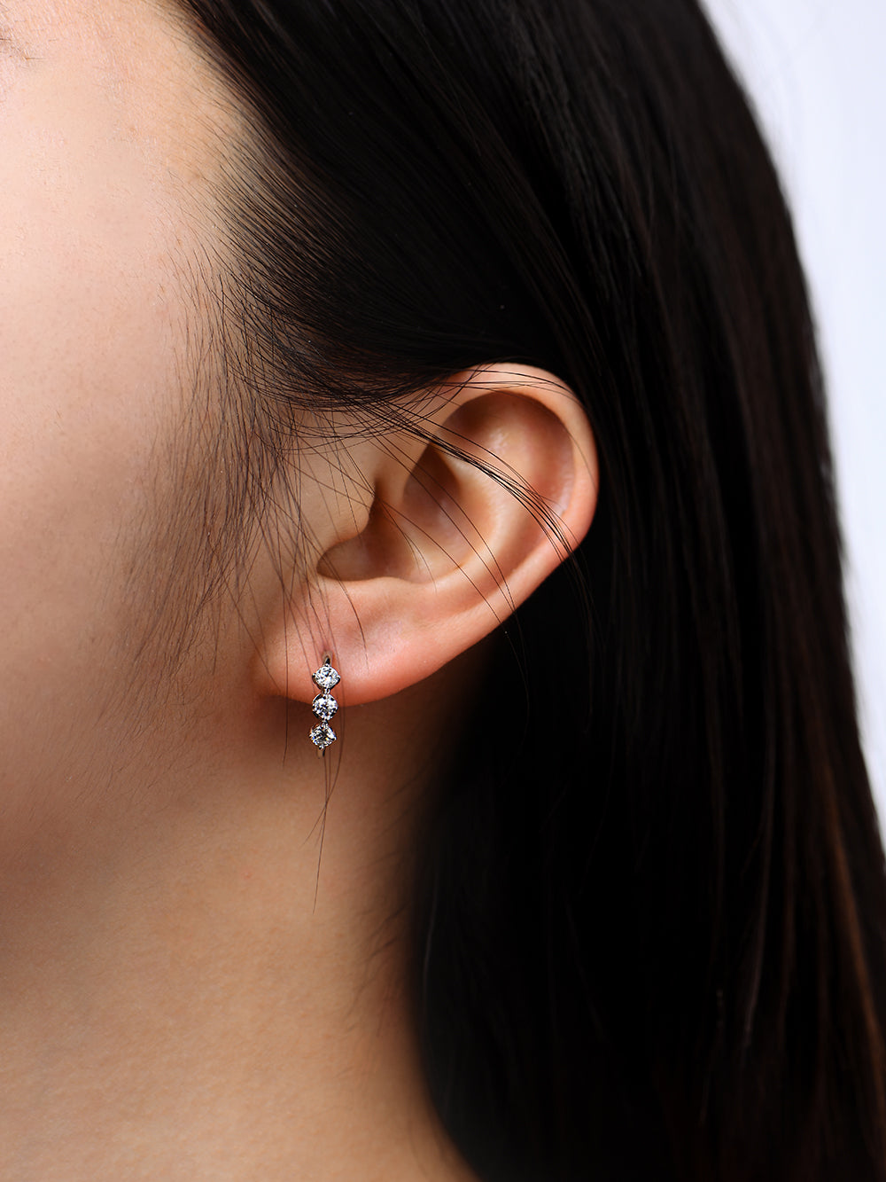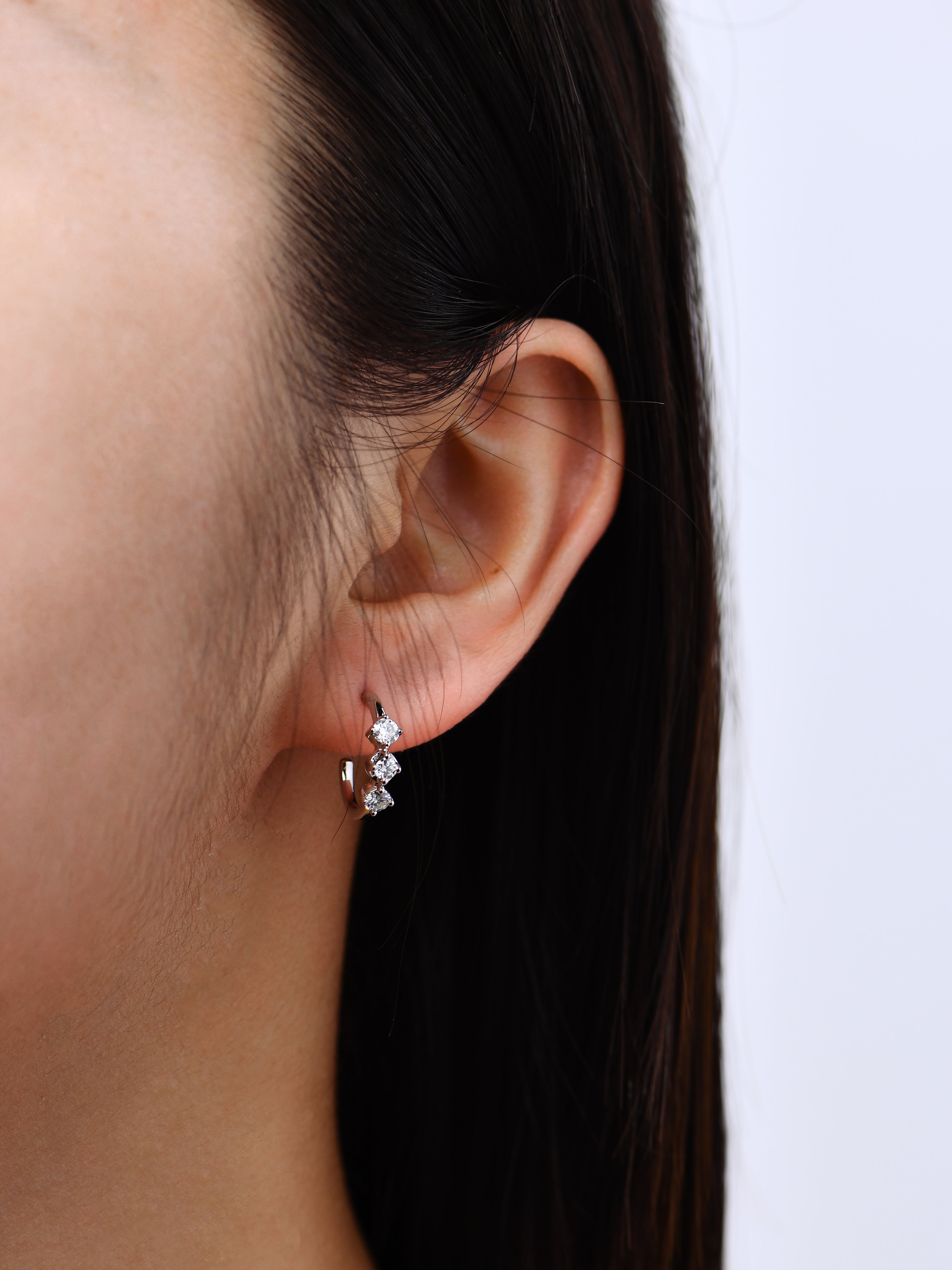 These elegant earrings feature a trio of stunning moissanite stones, designed to add a touch of sophistication to any outfit. Crafted with care and precision, these earrings are the perfect accessory for any occasion.