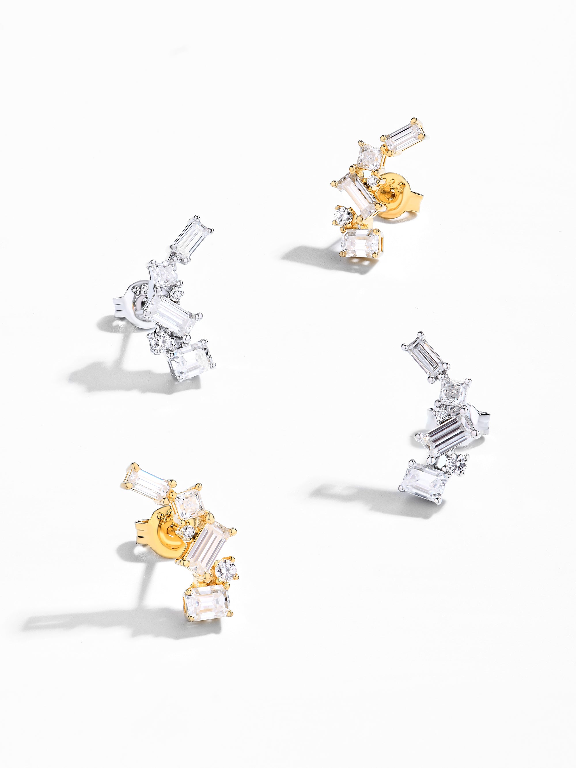 Craftsmanship & Design: Main stone round/emerald/baguette cut with full moissanite. Each moissanite stone hand-selected and micro-pavé set by master artisans.