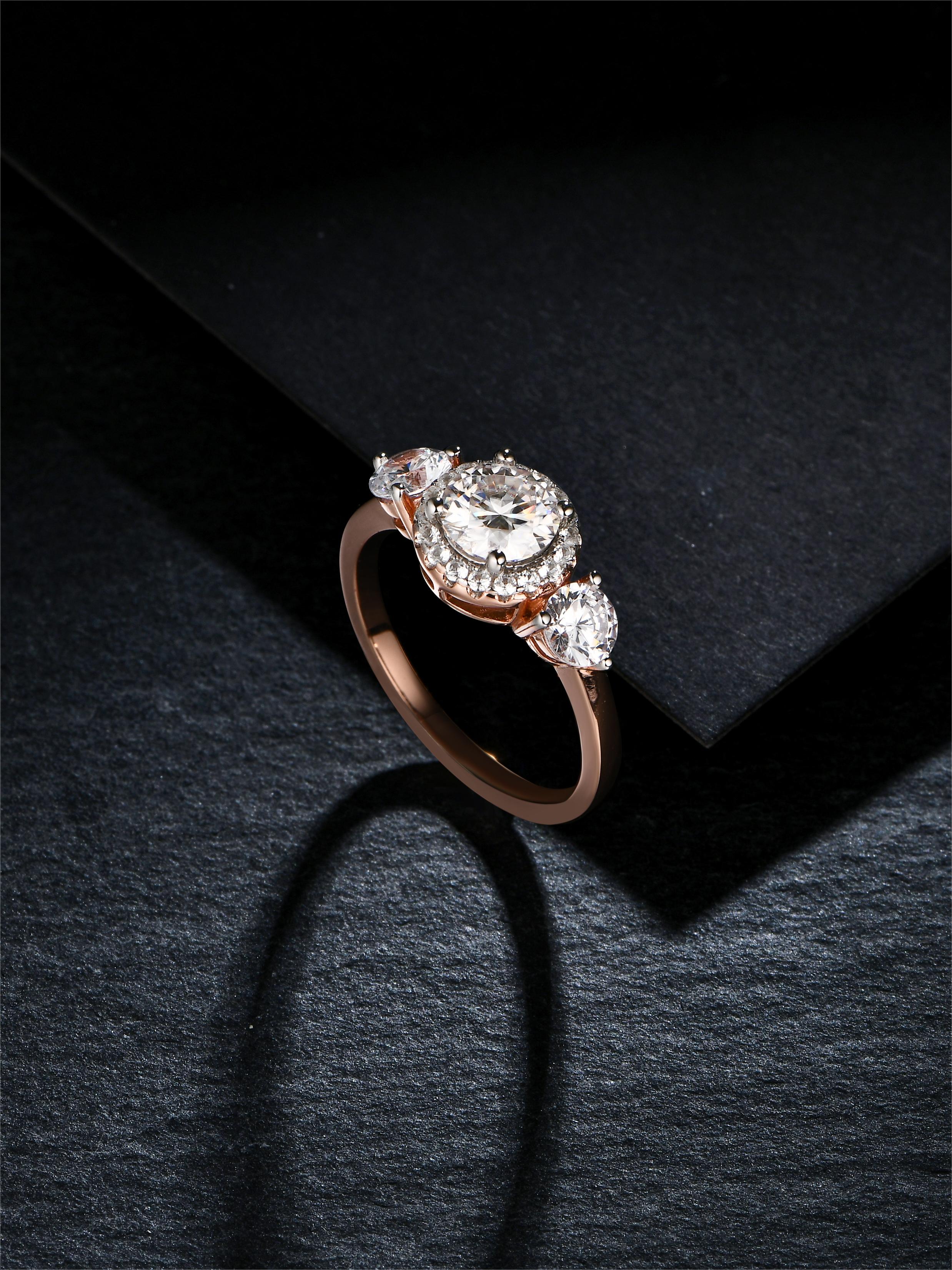 Craftsmanship & Design: Main stone round cut 6.5mm 1ct moissanite diamond and side stone with cz and white corundom. Each stone hand-selected and micro-pavé set by master artisans.