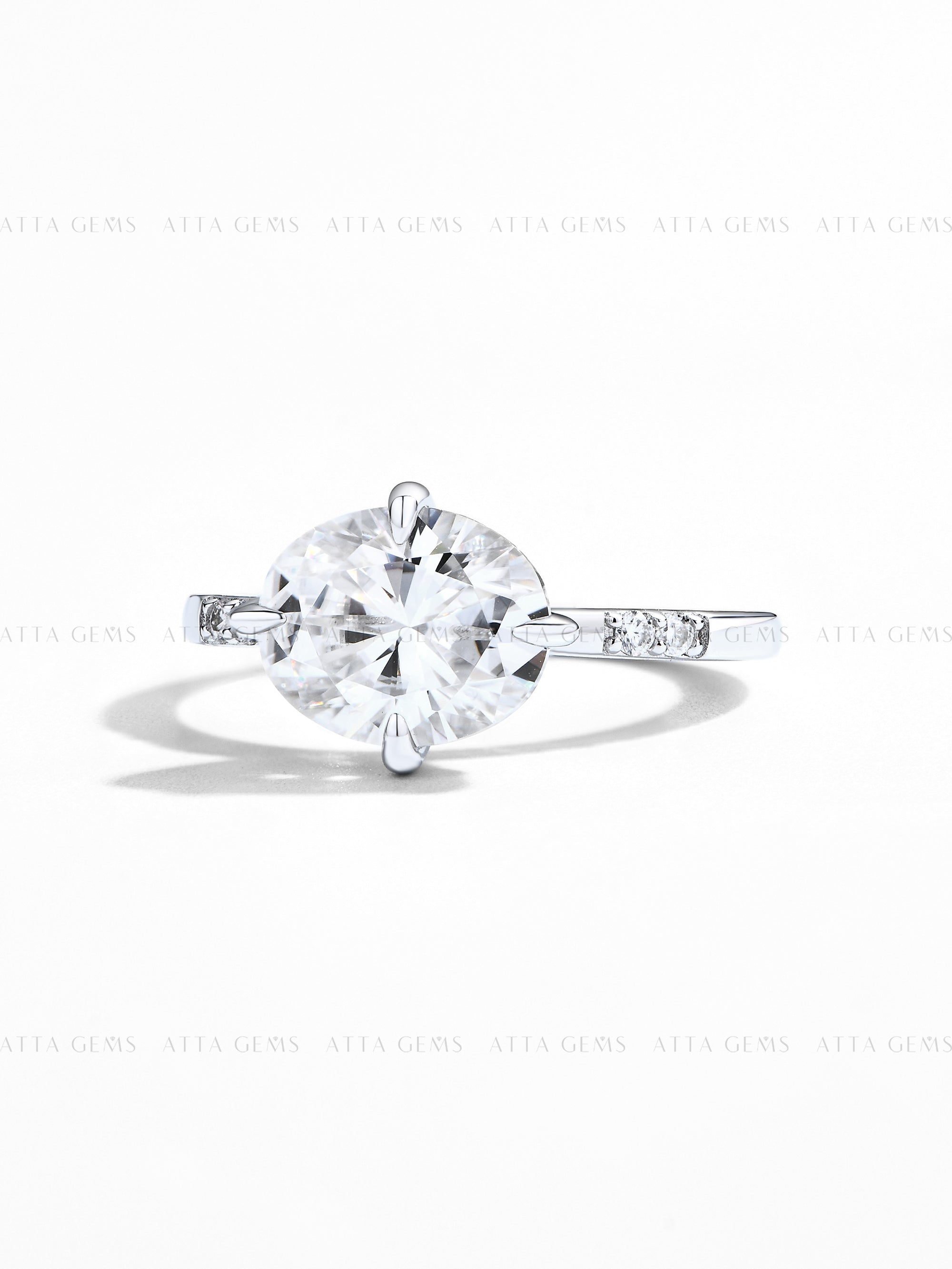 Craftsmanship & Design: Main stone oval cut 10*8mm 4ct and side stone 1.5mm with full moissanite diamonds. Each stone hand-selected and micro-pavé set by master artisans.