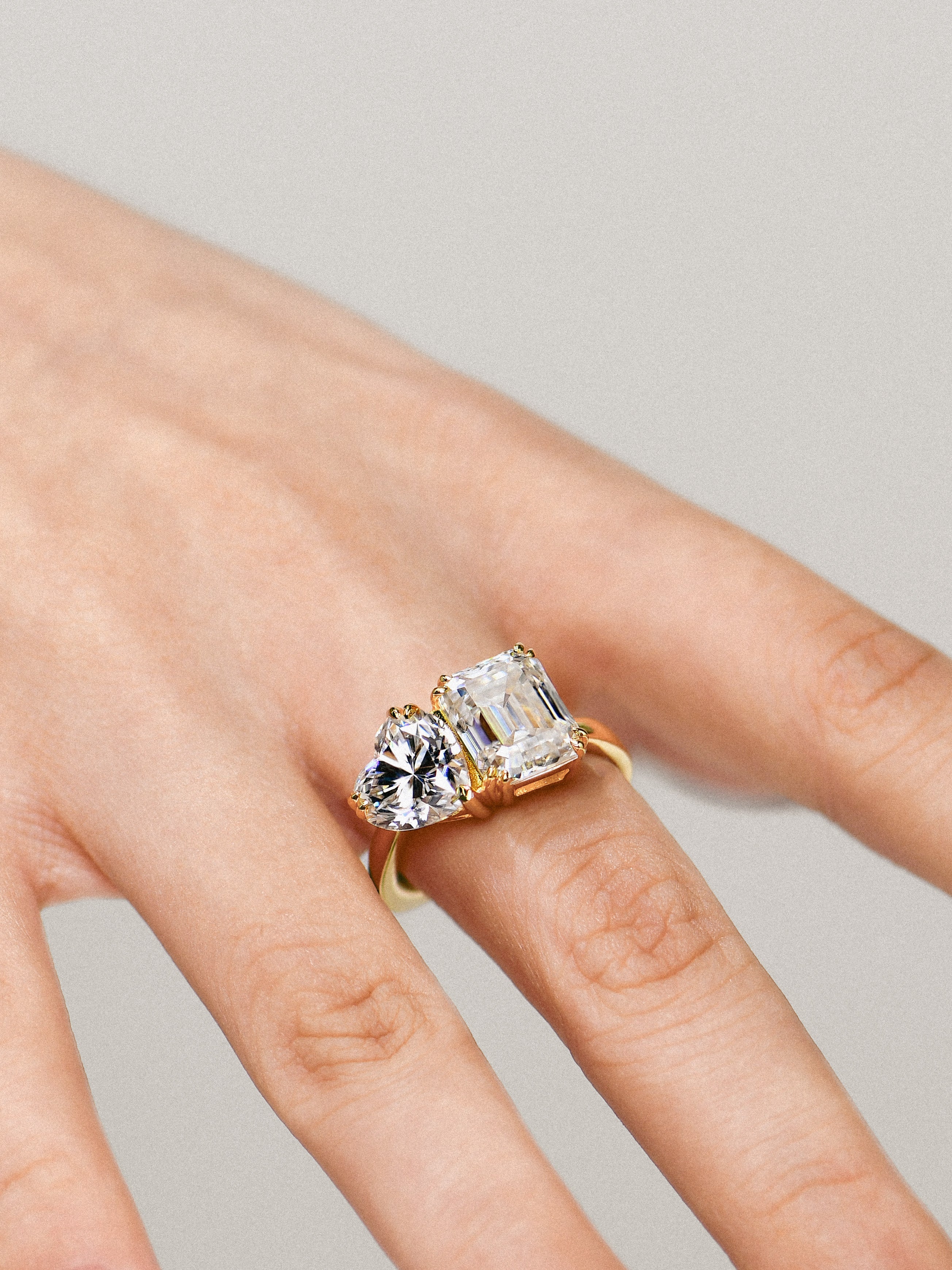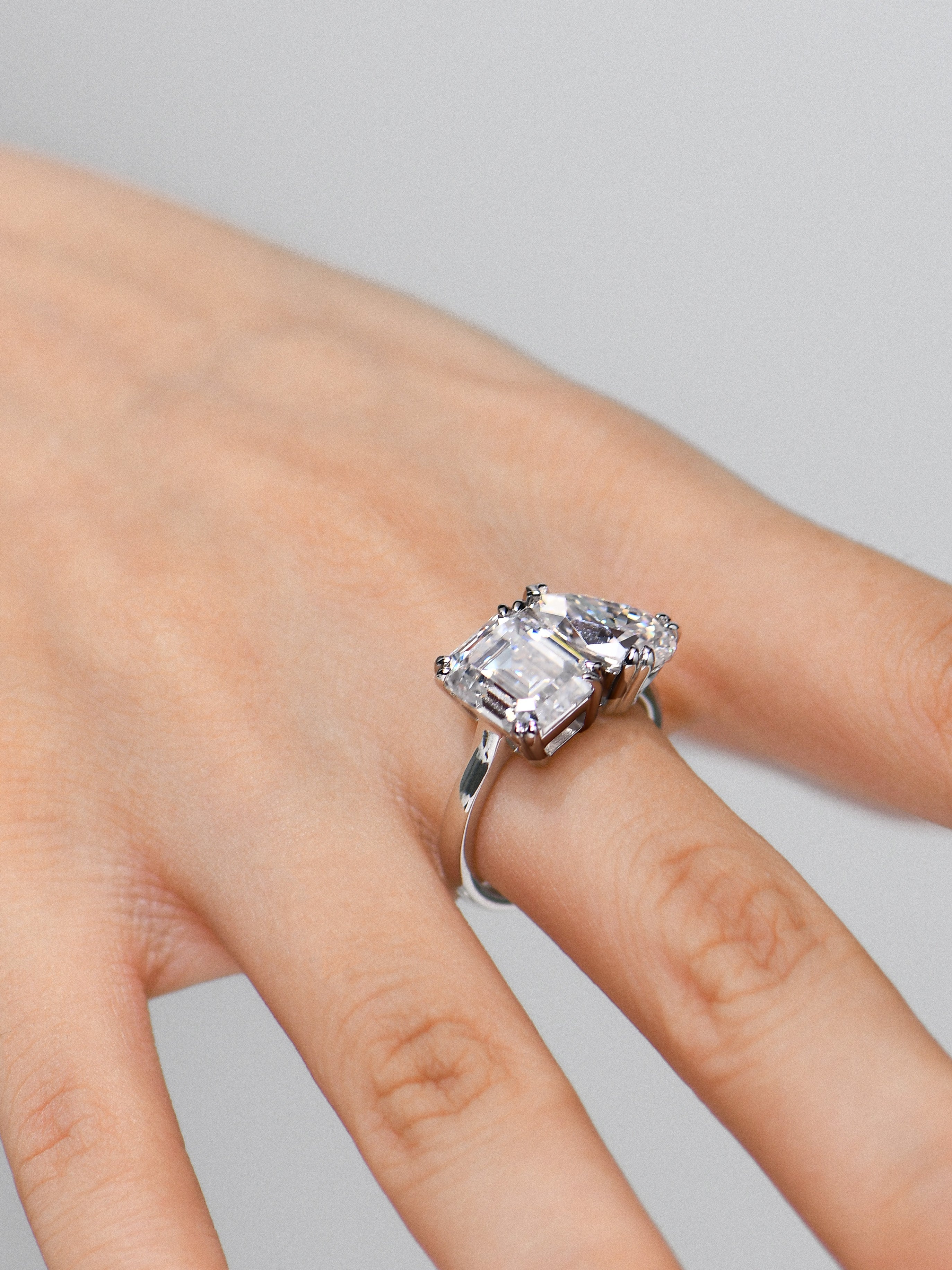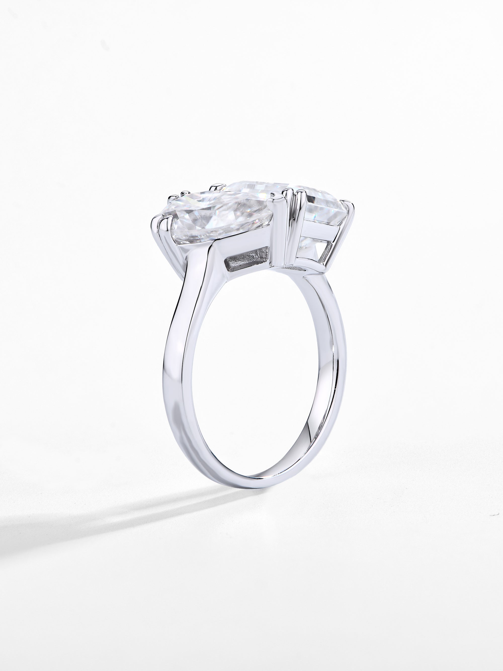 Craftsmanship & Design: Toi-et Moi design. Main stone pear 11*7mm(3ct)and emerald 10*8mm(4ct)with full moissanite, total 7ct. Each stone hand-selected and micro-pavé set by master artisans.
