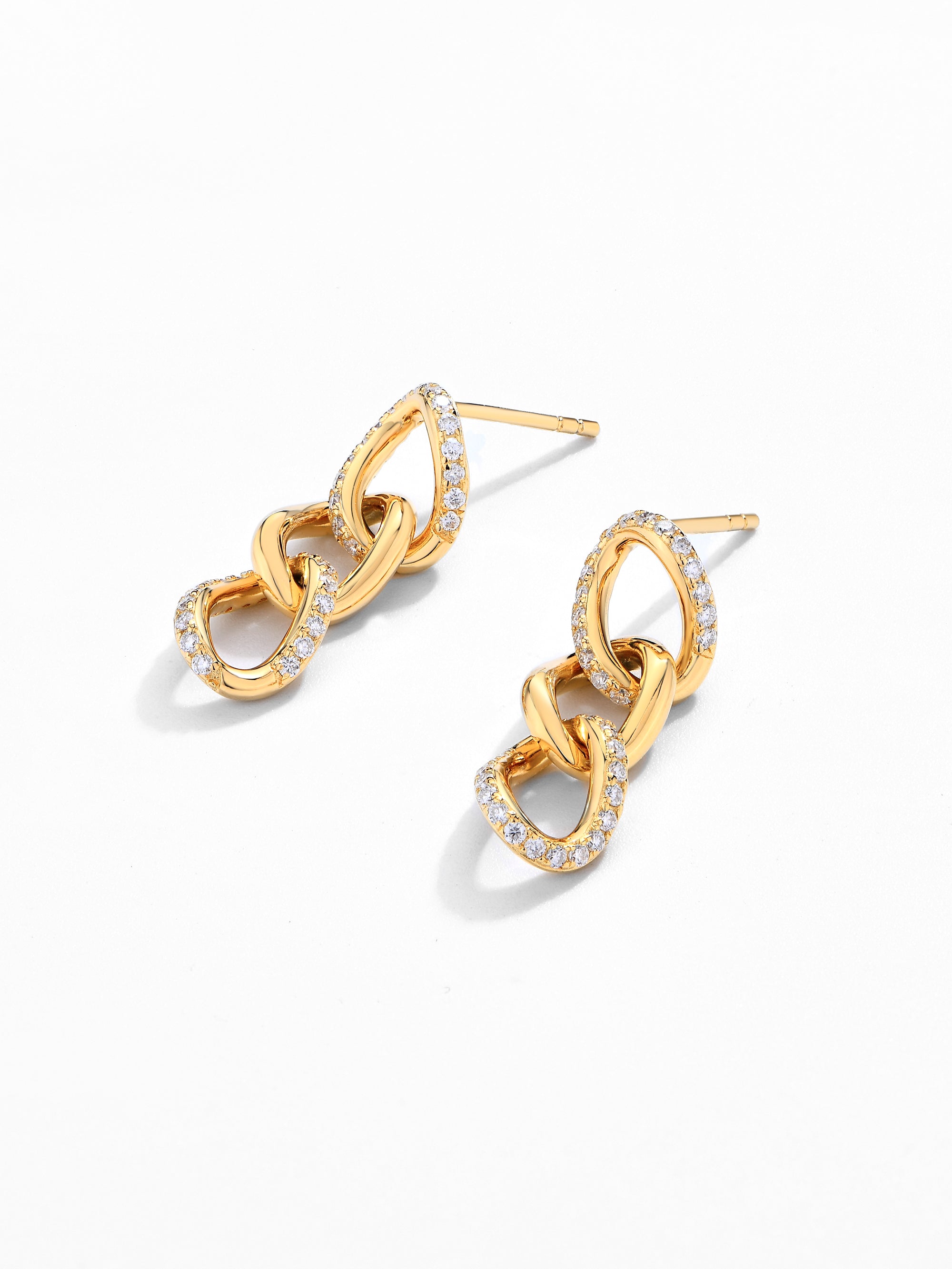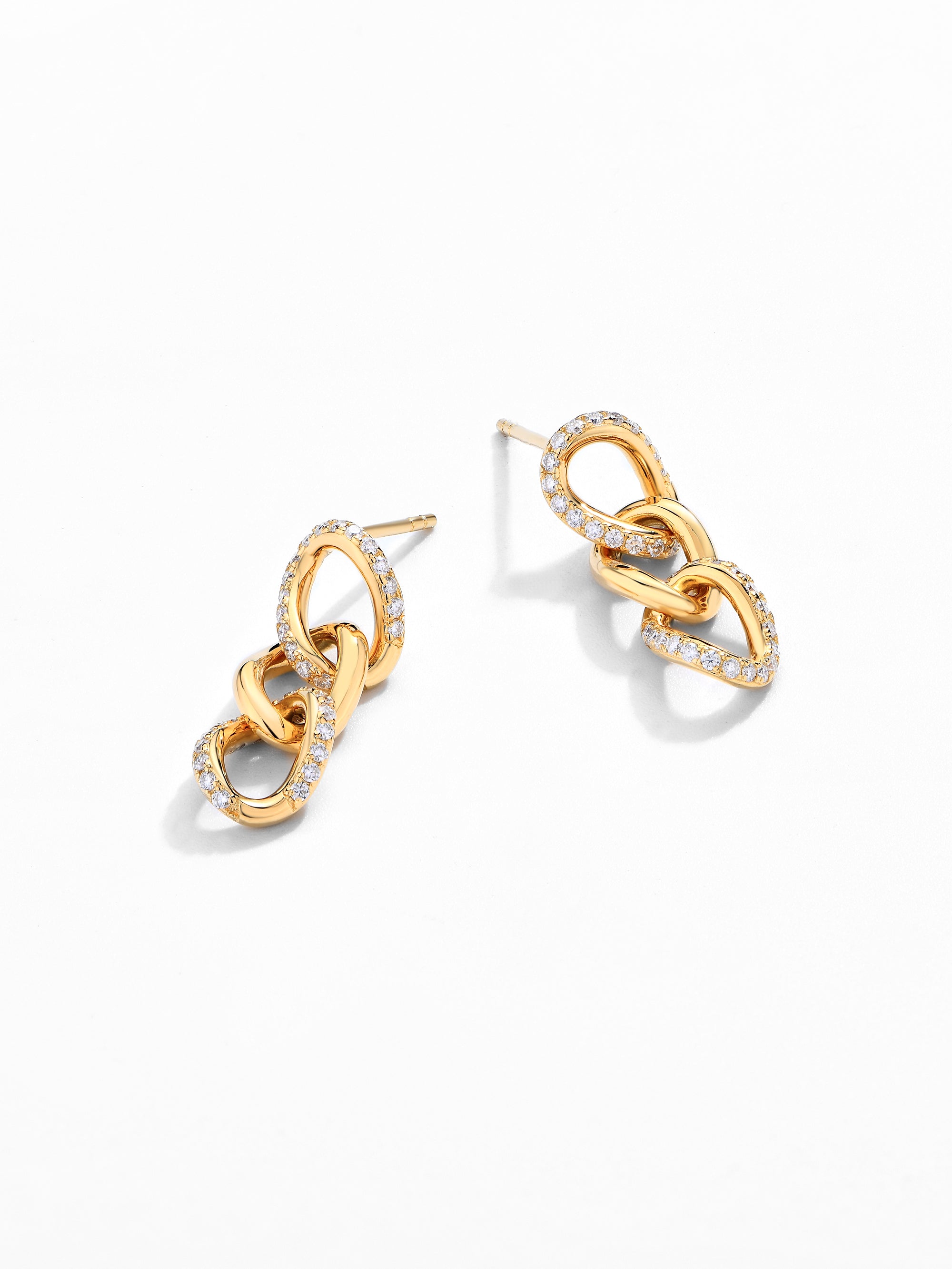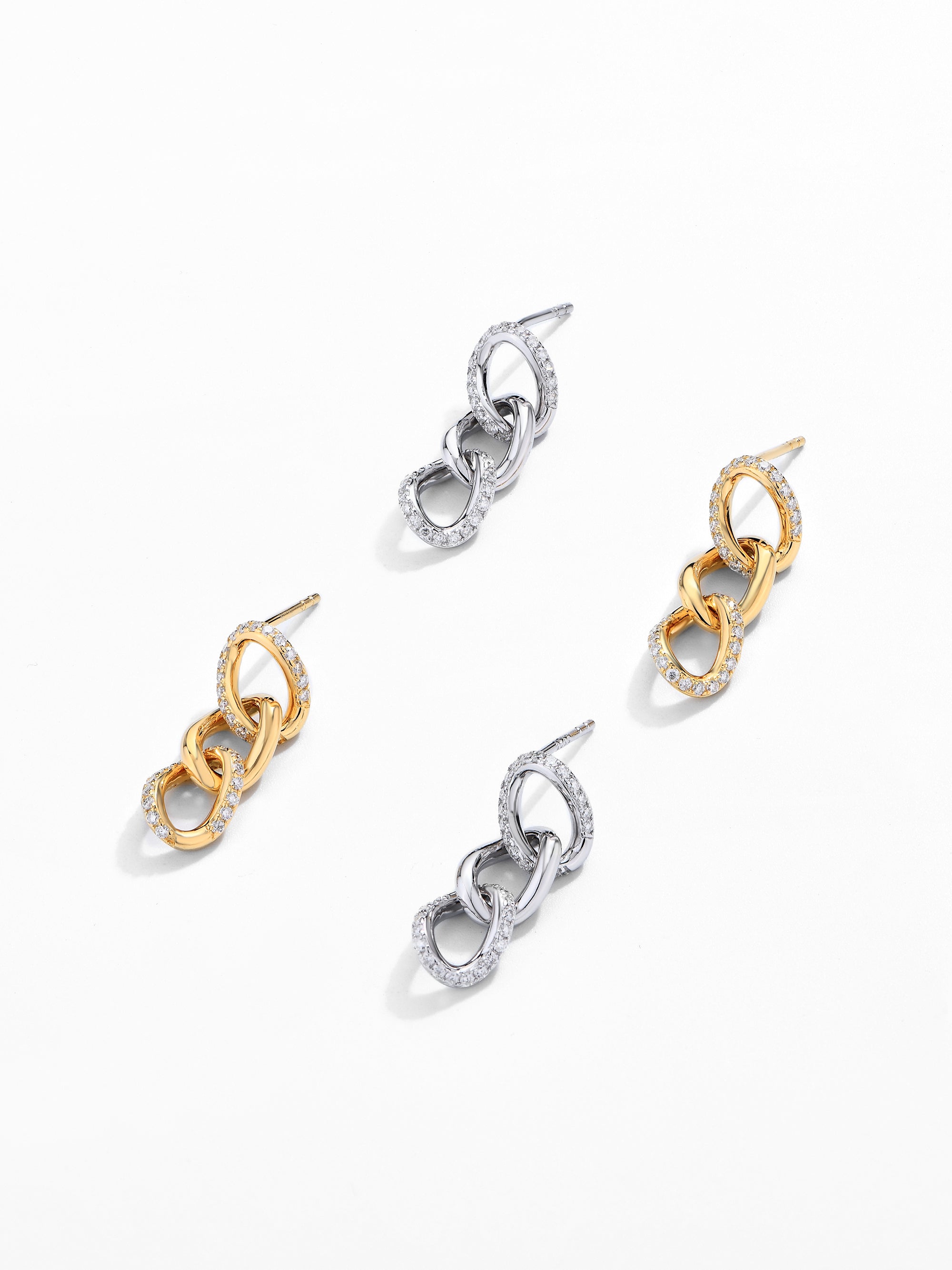 Expertly crafted with precision and elegance, AttaGems brilliant cut pave link drop earrings are statement of sophistication.  The precise cut of the pave links adds a touch of sparkle to any outfit, while their drop design elongates the neck for a flattering look. #E035