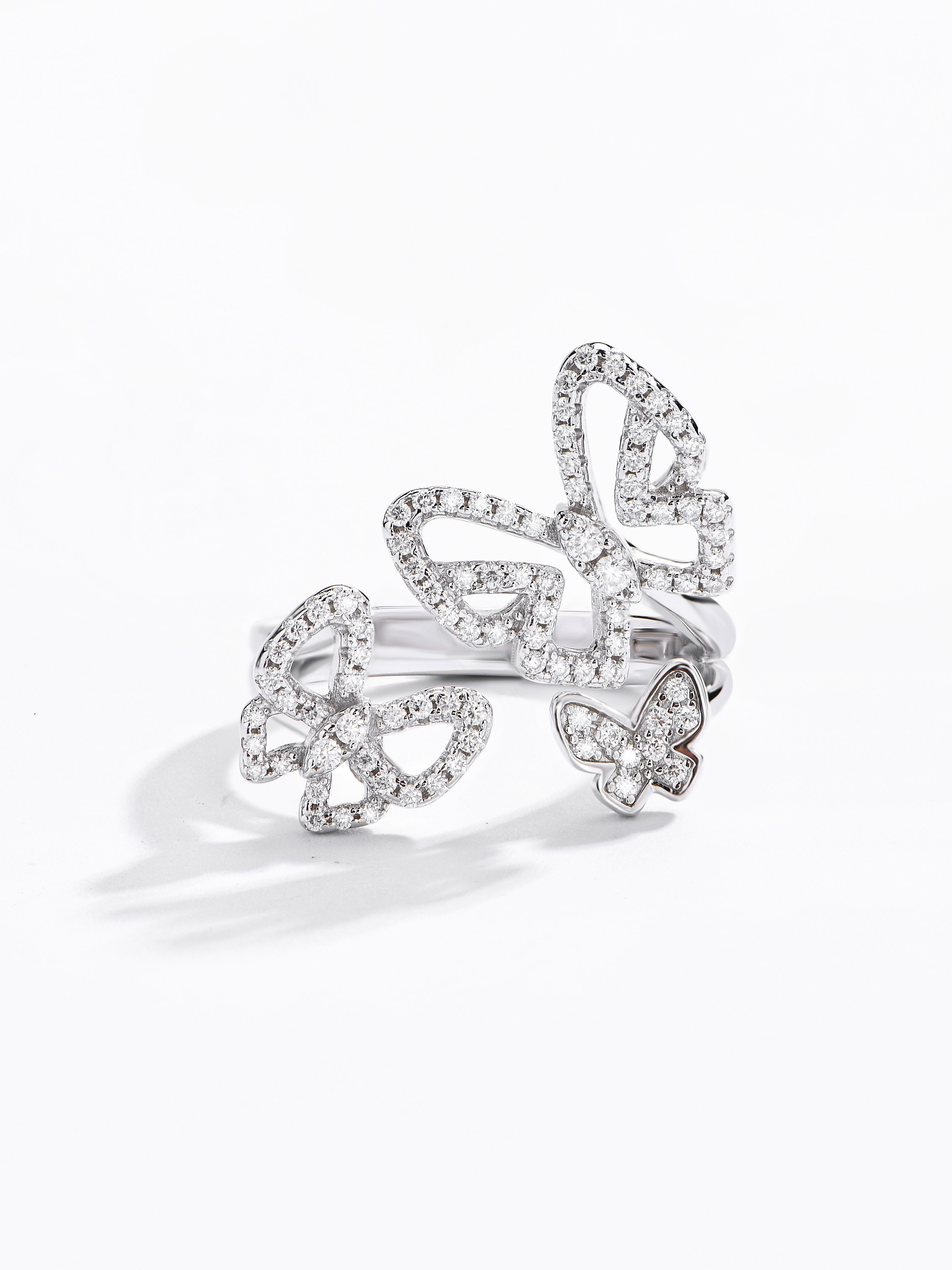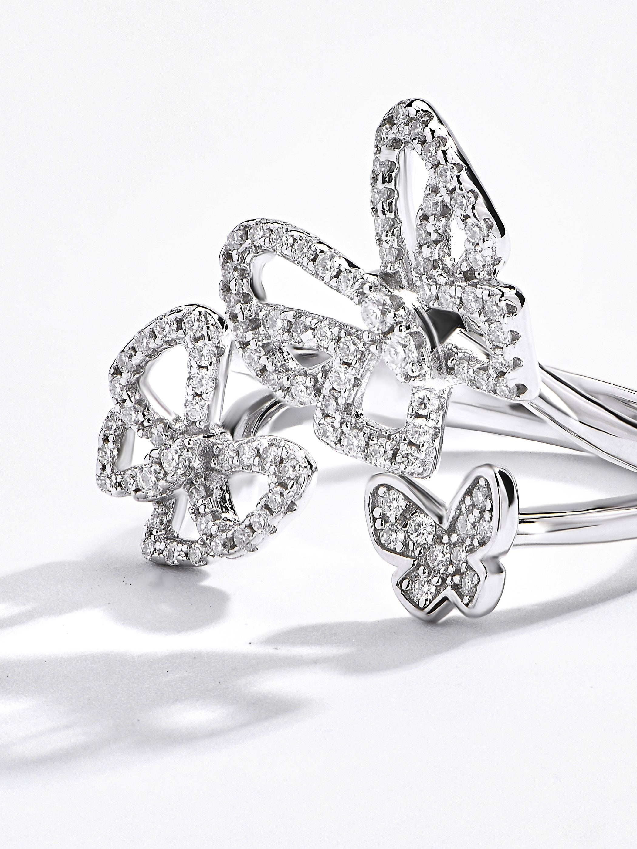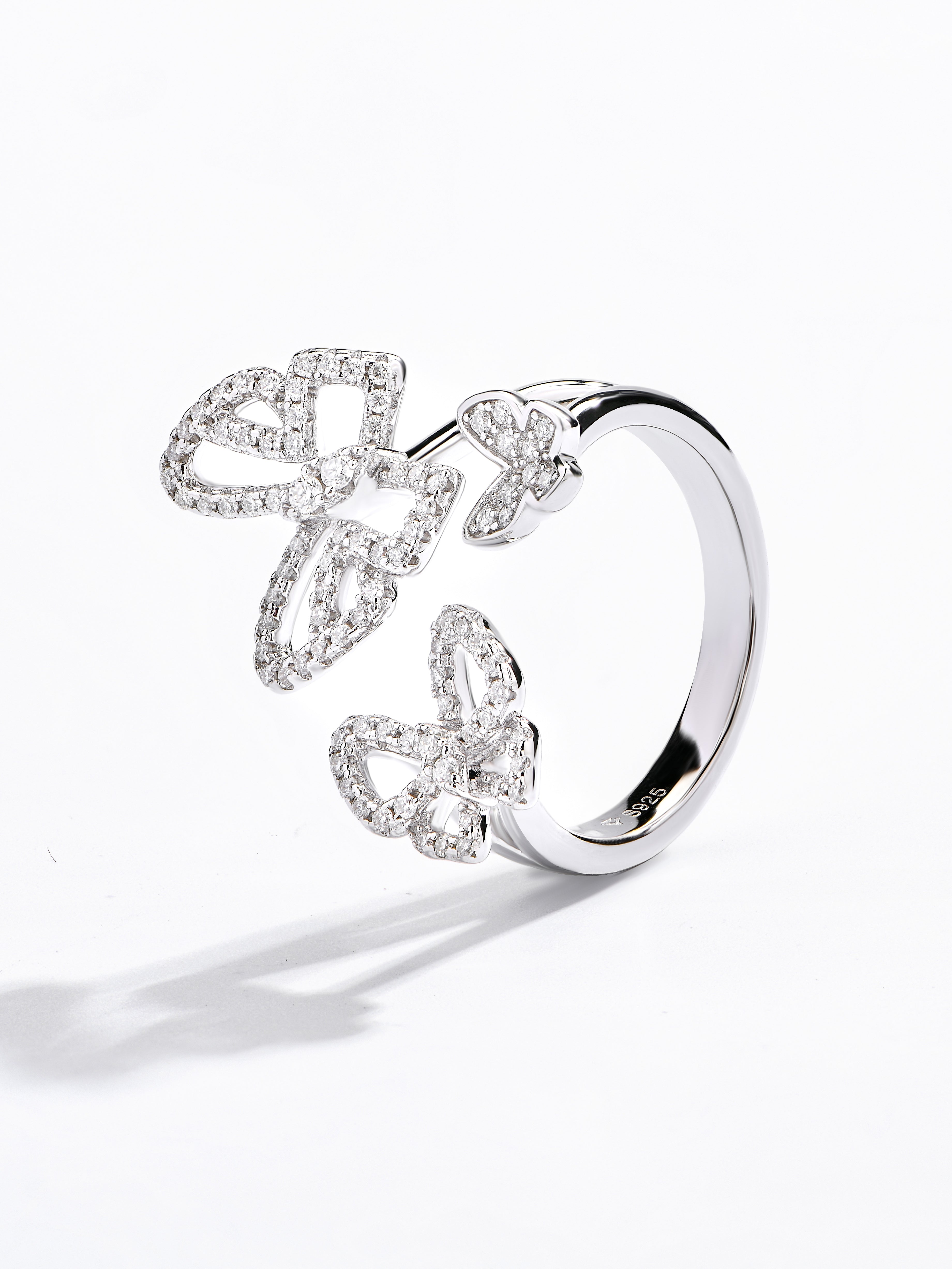 Featuring an exclusive, eye-catching butterfly design and a flexible band for the perfect fit, this exquisite ring is more than just a piece of jewelry – it's a beacon of good fortune and spring's revival. Crafted from premium full moissanite diamonds, it radiates a dazzling brilliance that endures through time, making it a treasured heirloom.
