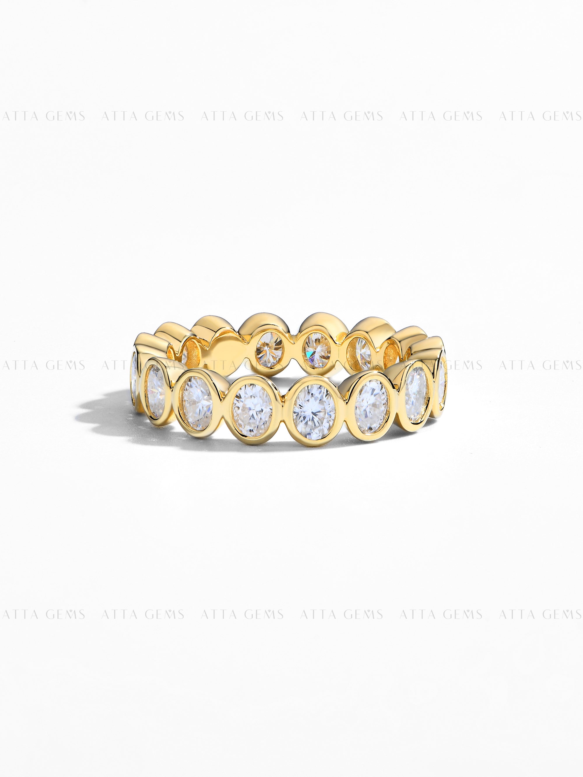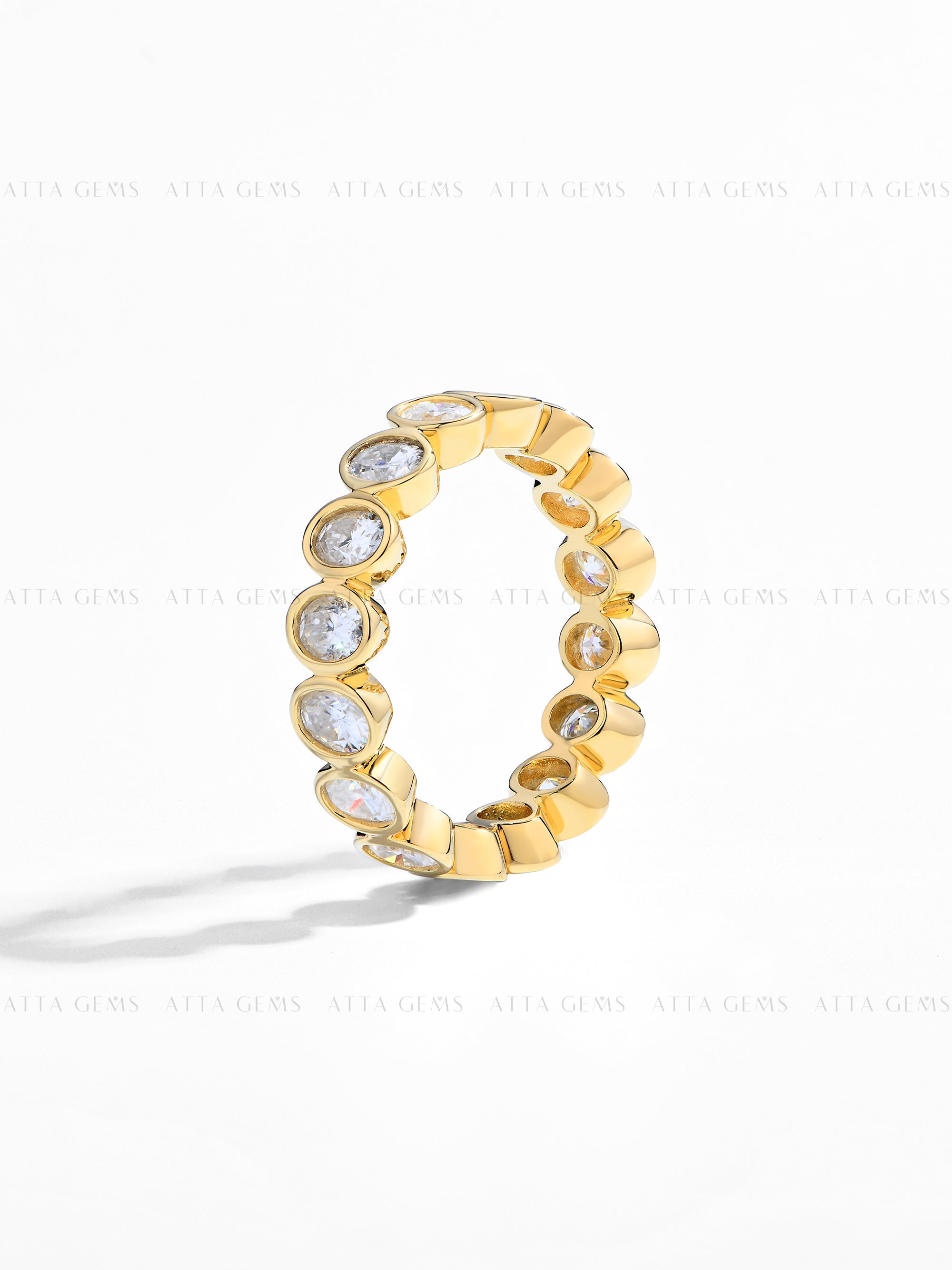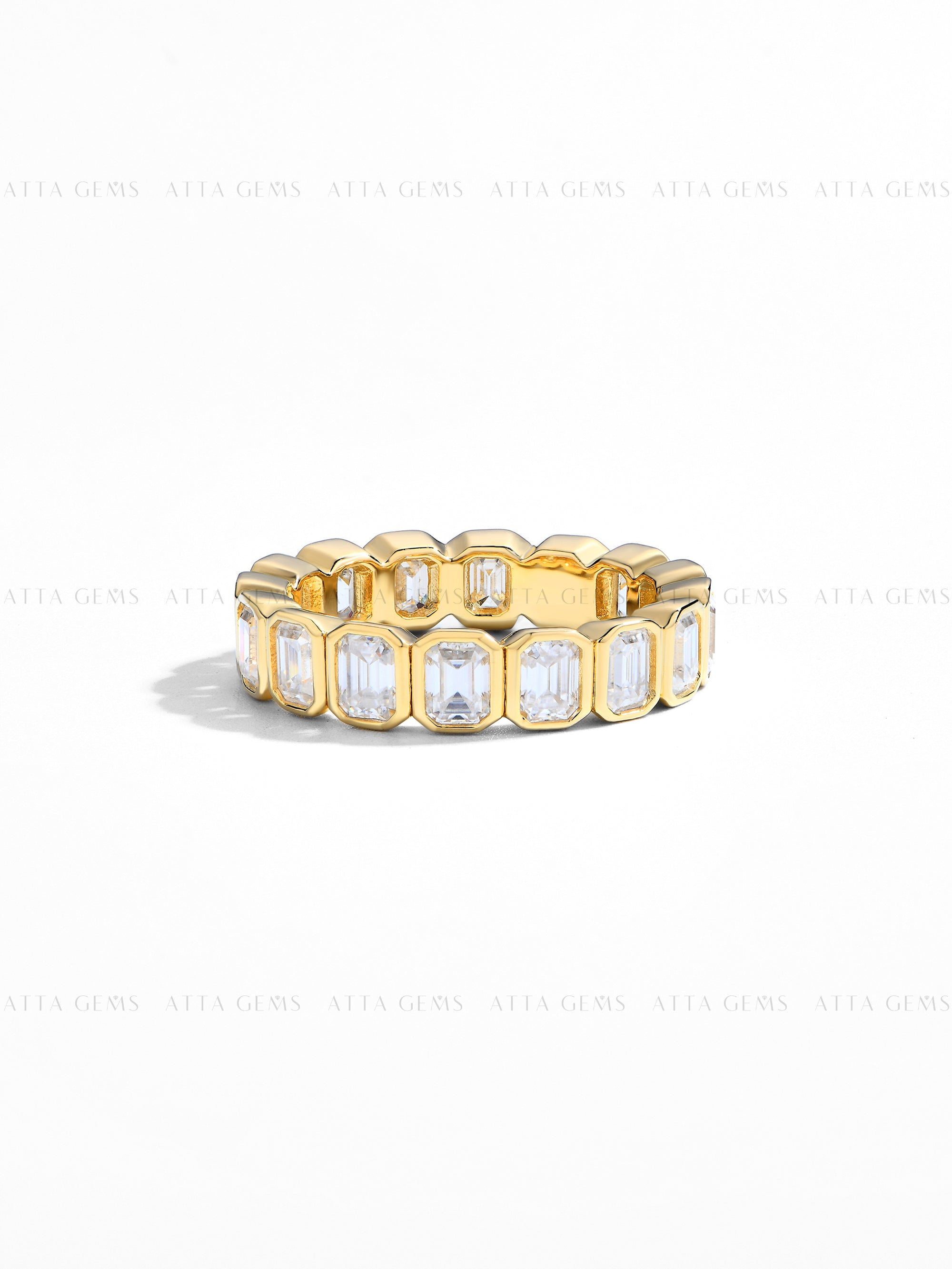 These eternity band rings feature a beautiful oval and emerald design. With their timeless style and durable construction, these moissanite diamonds engagemnet rings are sure to be a long-lasting addition to your jewelry collection. Add a touch of elegance to any outfit with these stunning rings.