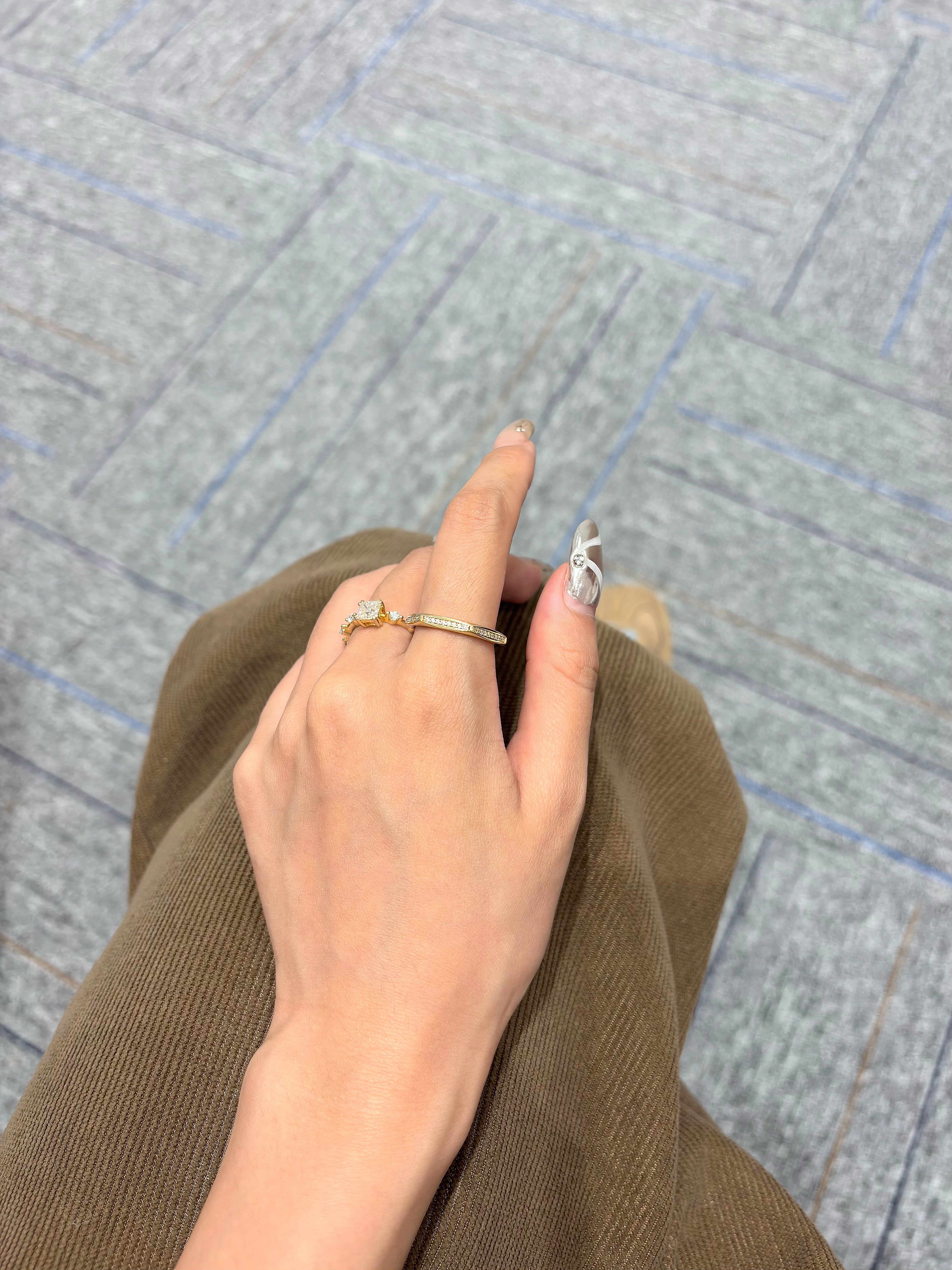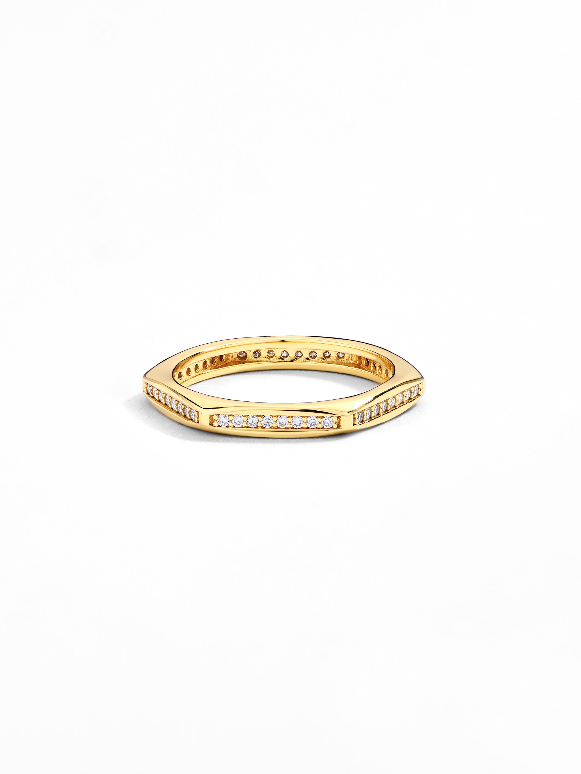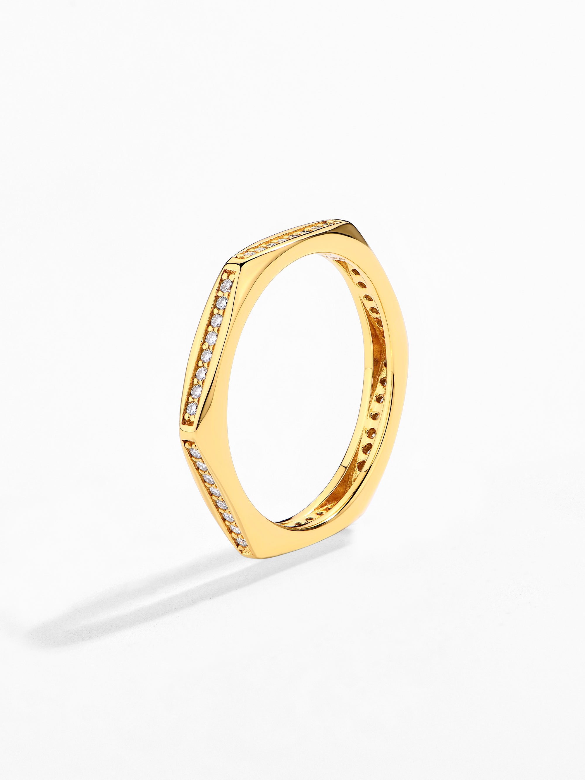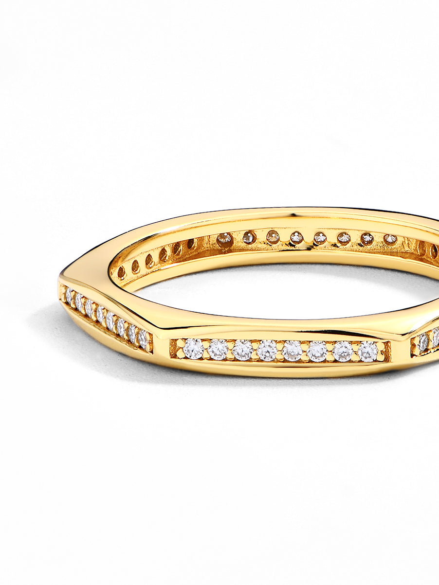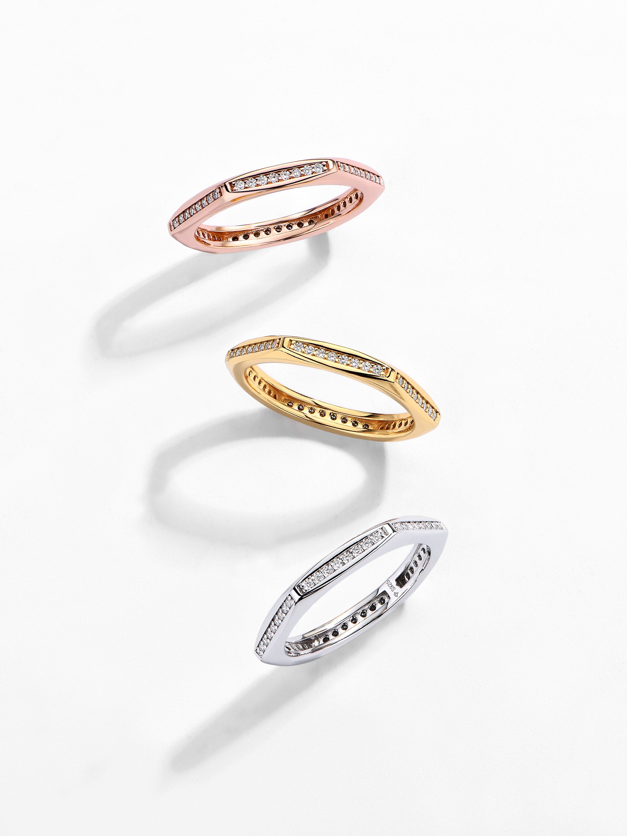 Made with round full eternity hexagonal moissanite diamonds, this engagement ring will add a touch of elegance and glamour to any outfit. Its stunning design and sparkle make it the perfect gift for any special occasion.#R085