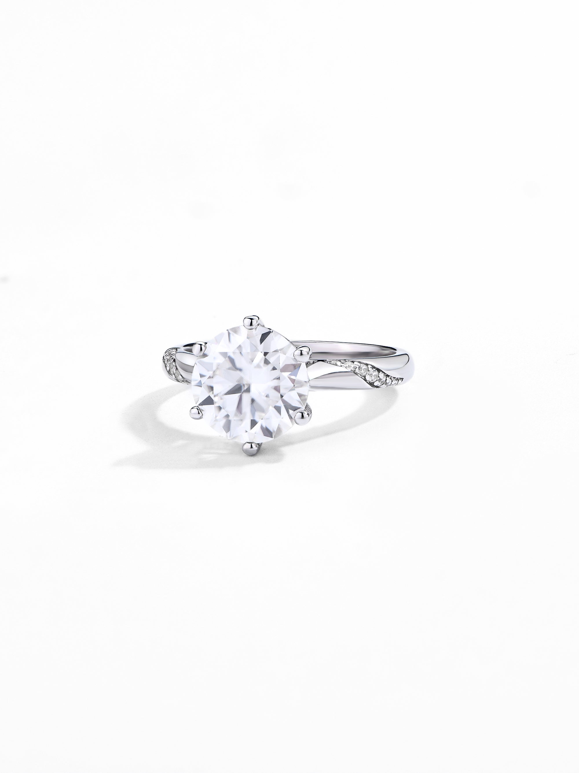 Craftsmanship & Design: Main stone round 8mm 2ct. Each moissanite stone hand-selected and micro-pavé set by master artisans.